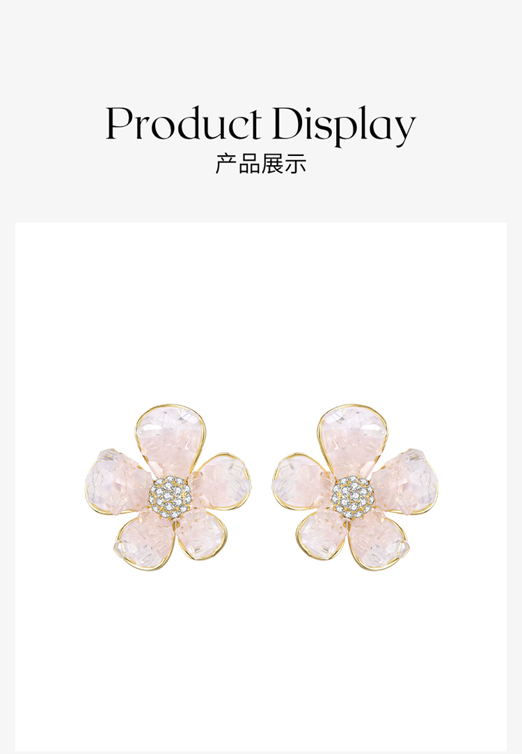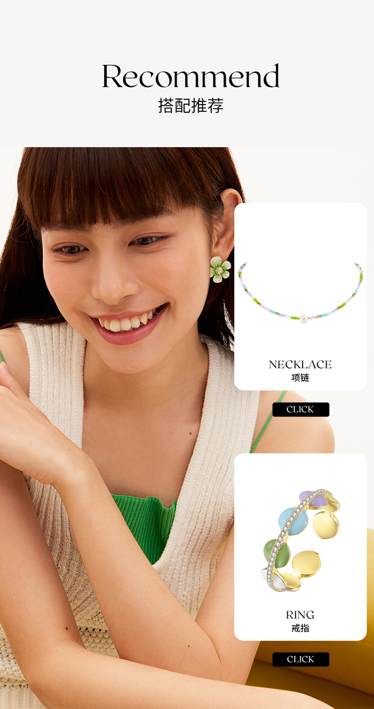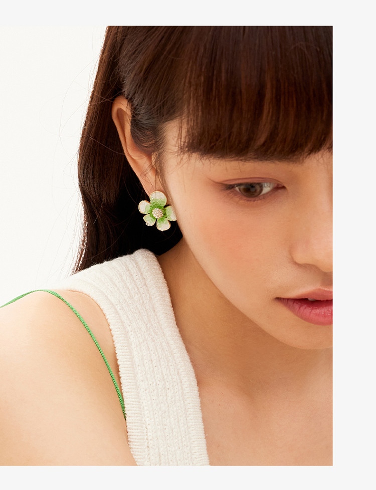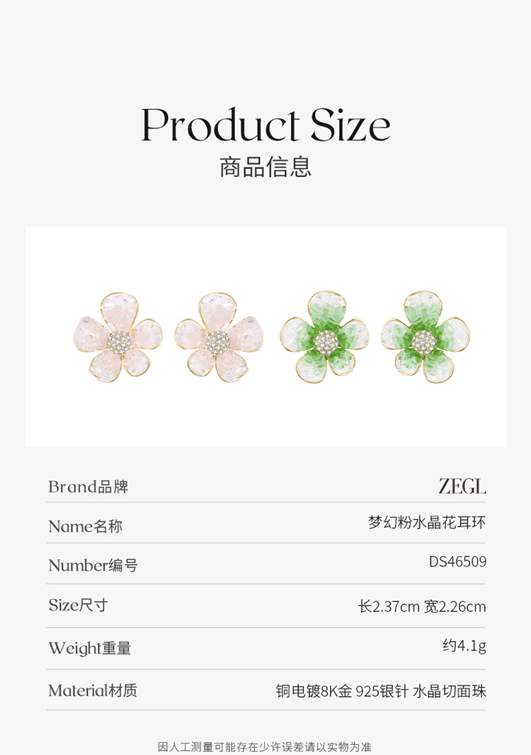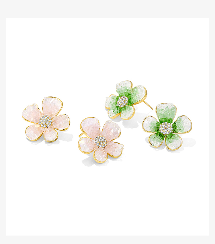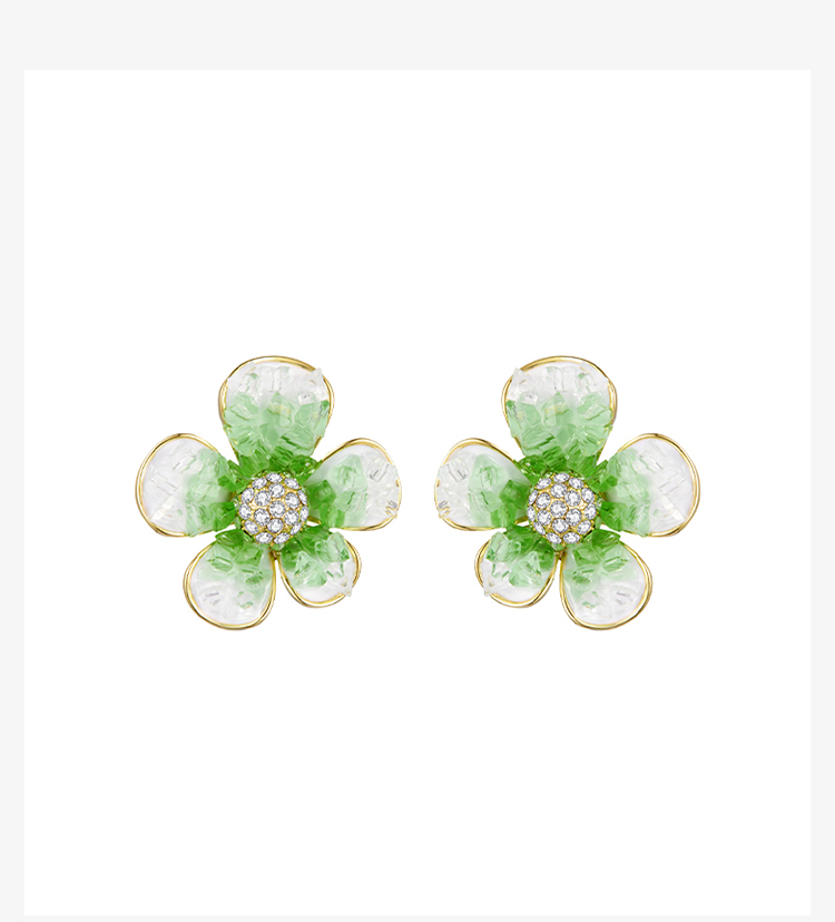 ZEGL水晶花朵耳环女轻奢小众设计感高级森系耳钉925银针绿色耳饰