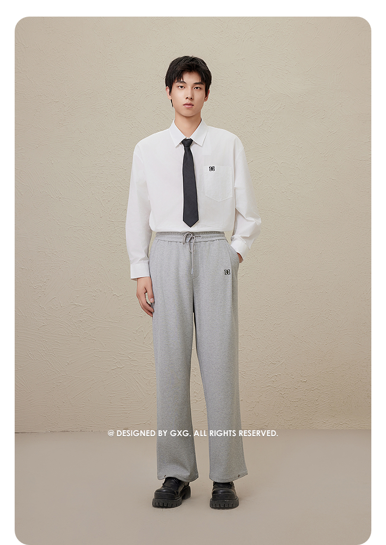 GXG男装 双色抽绳针织纹理直筒卫裤 秋季热卖#G24D023159