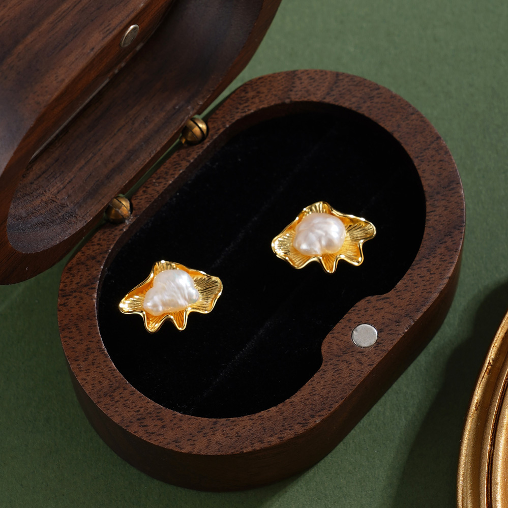 子佩集【荷光沁露】银S925珍珠惜王妃耳钉【SGE0390001】镀金巴洛克蚌壳2602