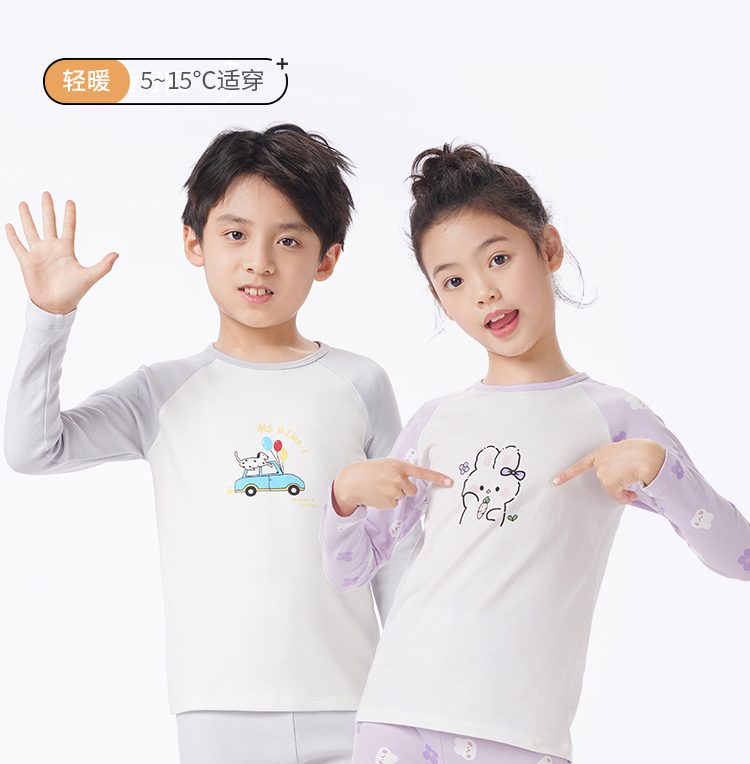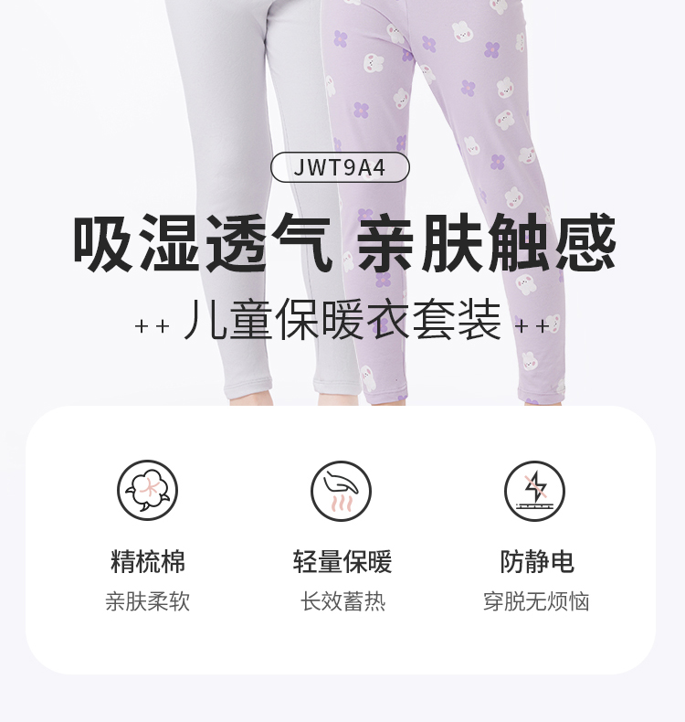 都市丽人眯雅佳保暖衣轻暖套装棉拉架薄童装儿童保暖衣棉质套装JWT9A4
