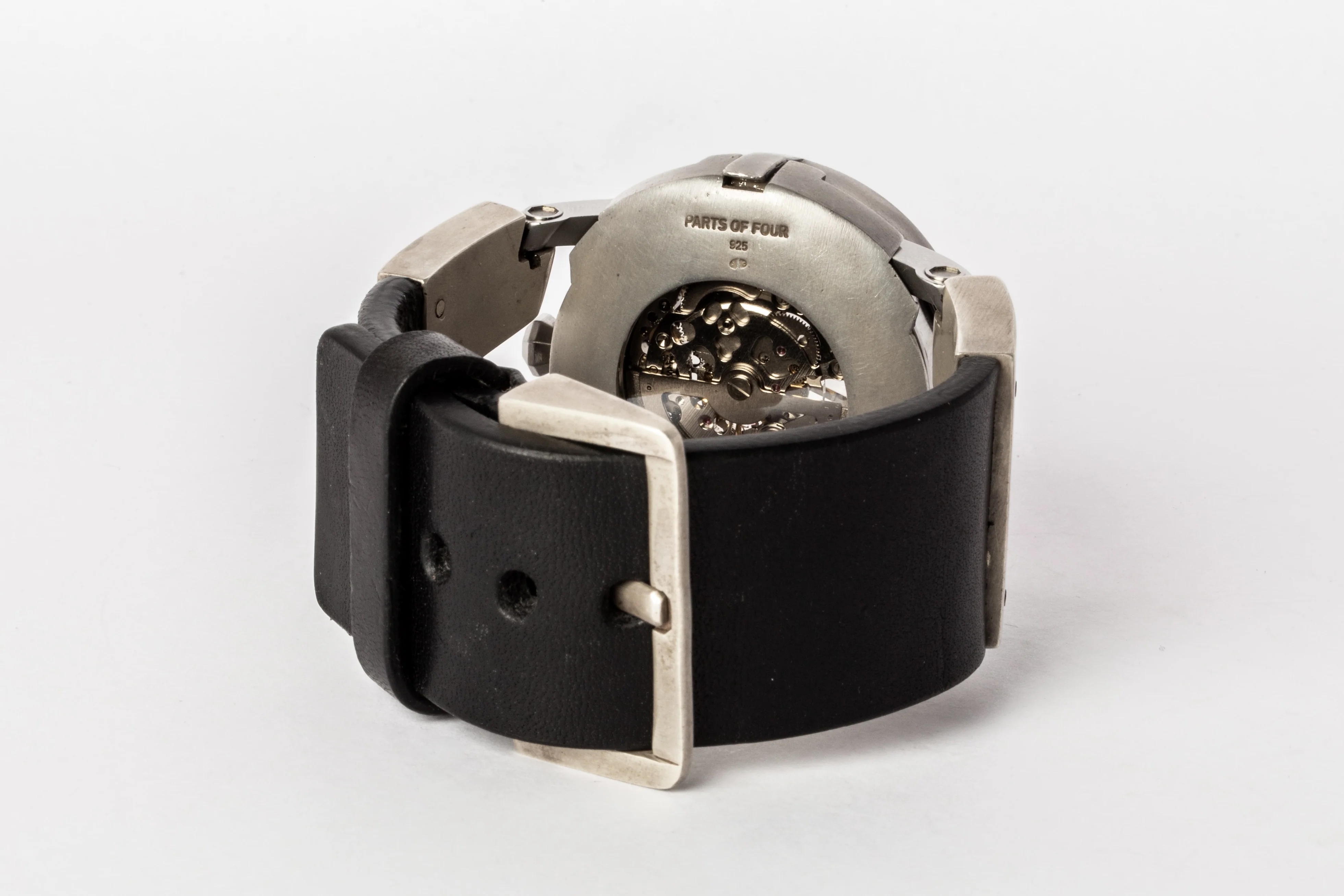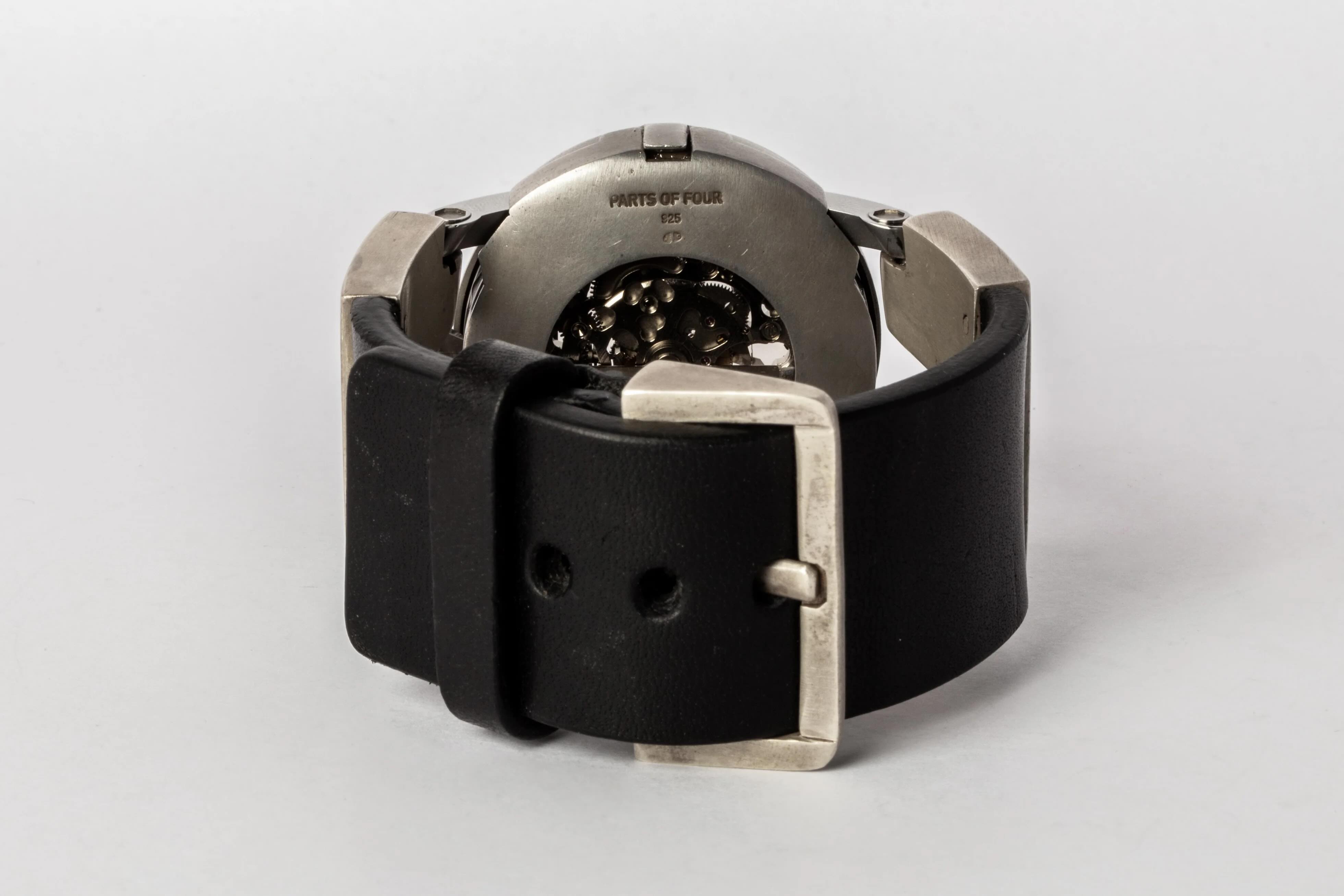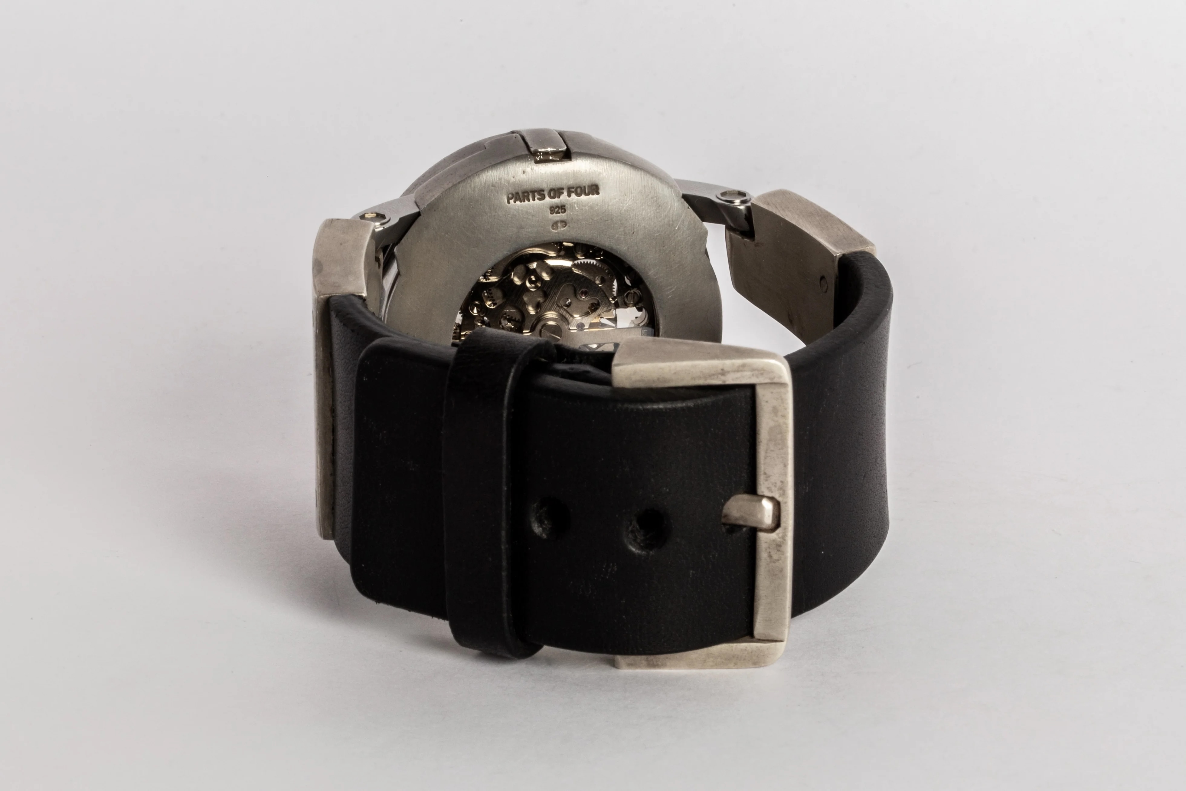 标志性的 R413 表款以野兽派设计重新演绎,并采用非凡材质:根据款式不同,可选用纯银、钻石原石、白金或黄金。每款腕表均带有 PARTS OF FOUR 的独特标志,展现其搭载的镂空自动机芯。