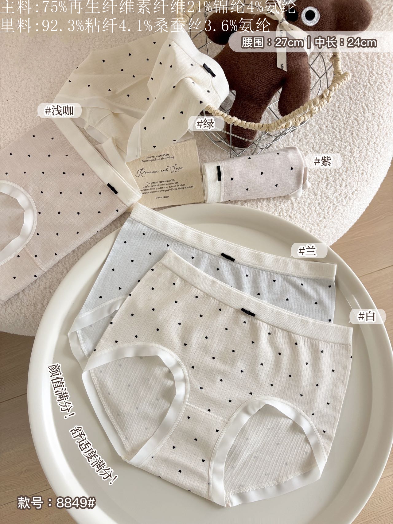 女士无缝内裤裸氨棉可爱点点少女三角内裤舒适贴肤透气内裤8849