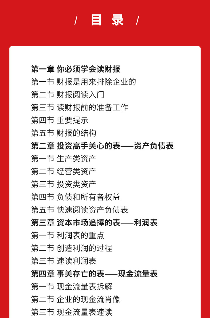 因为是写给投资者的,所以这本书的重心并不是怎么记账,怎么做好一名会计,甚至全书没有一处使用“借记××、贷记××”这样的表述。全书始终坚持以投资者的视角,重心在于如何理解财报数据反映的企业运营状态,以及数据本身有没有矛盾和可疑的地方。