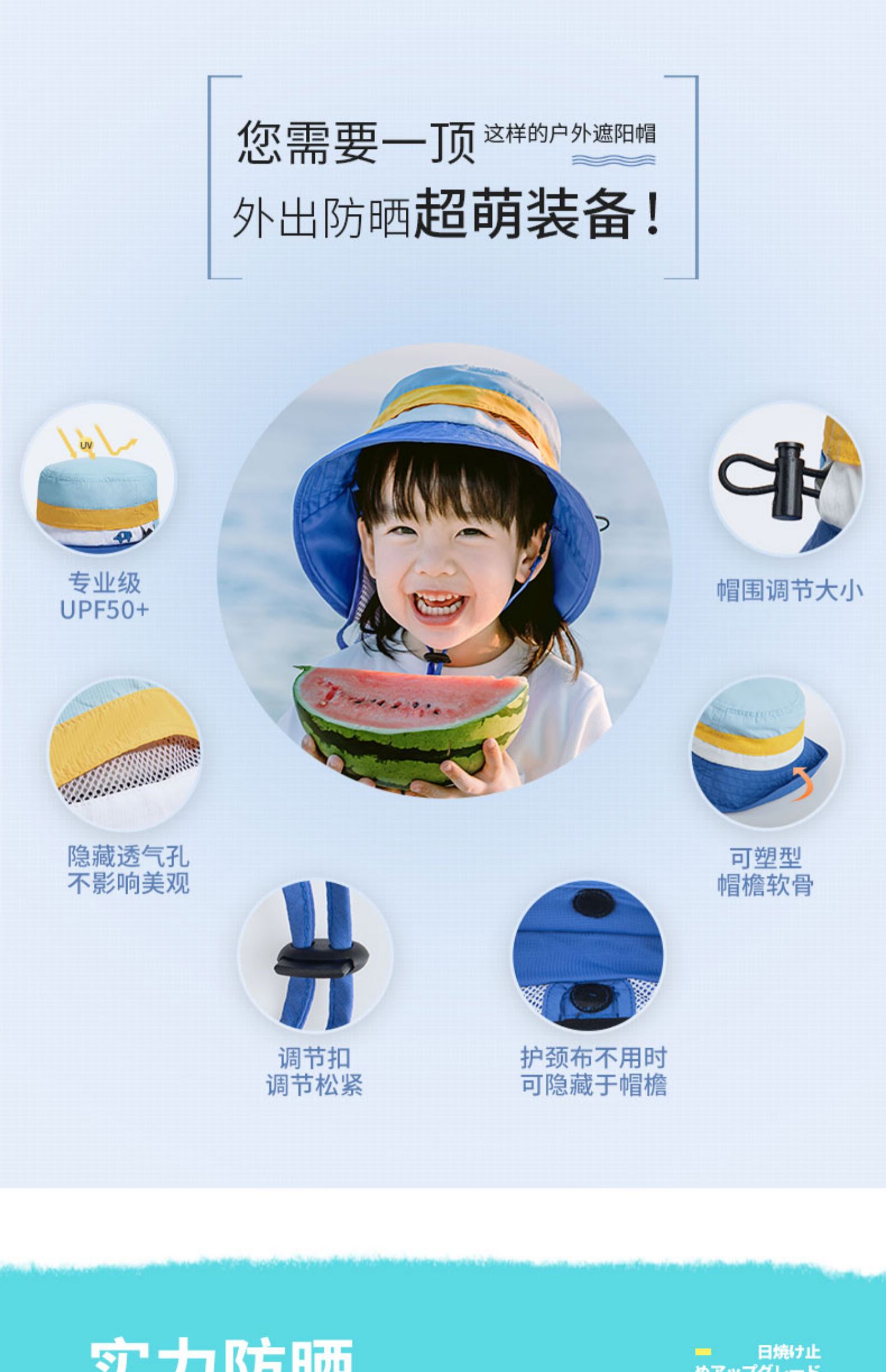 shukiku 儿童防晒渔夫帽