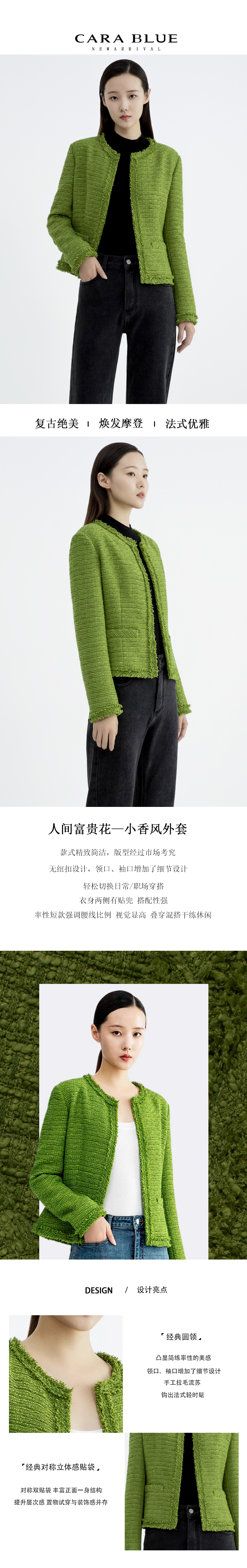 CARA BLUE气质短款香风夹克