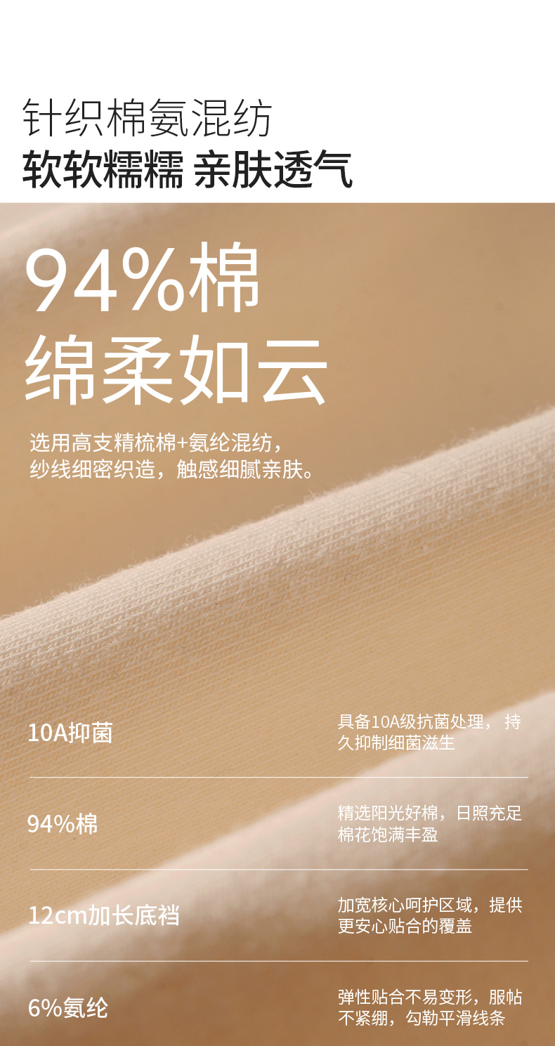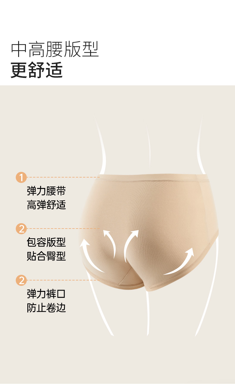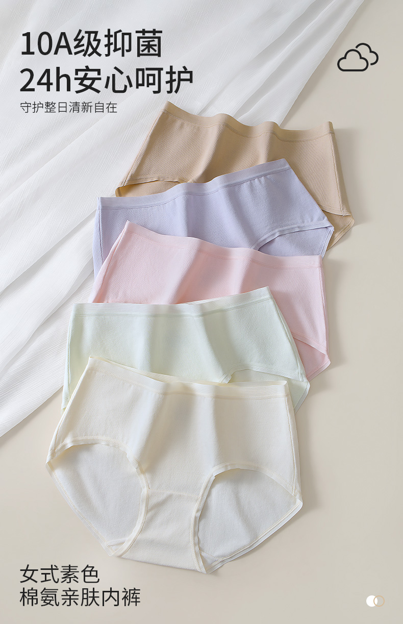 【三条装/四条装】爱帝女式素色棉氨亲肤内裤