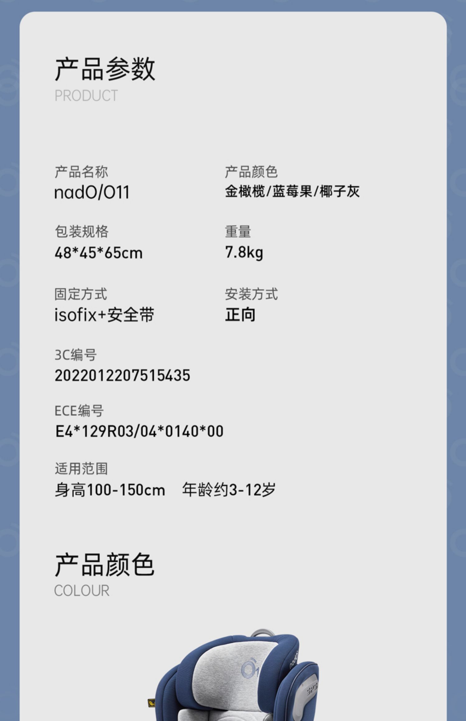 德国nadO O11 儿童安全座椅大童汽车用车载通用 i-size认证 3-12岁