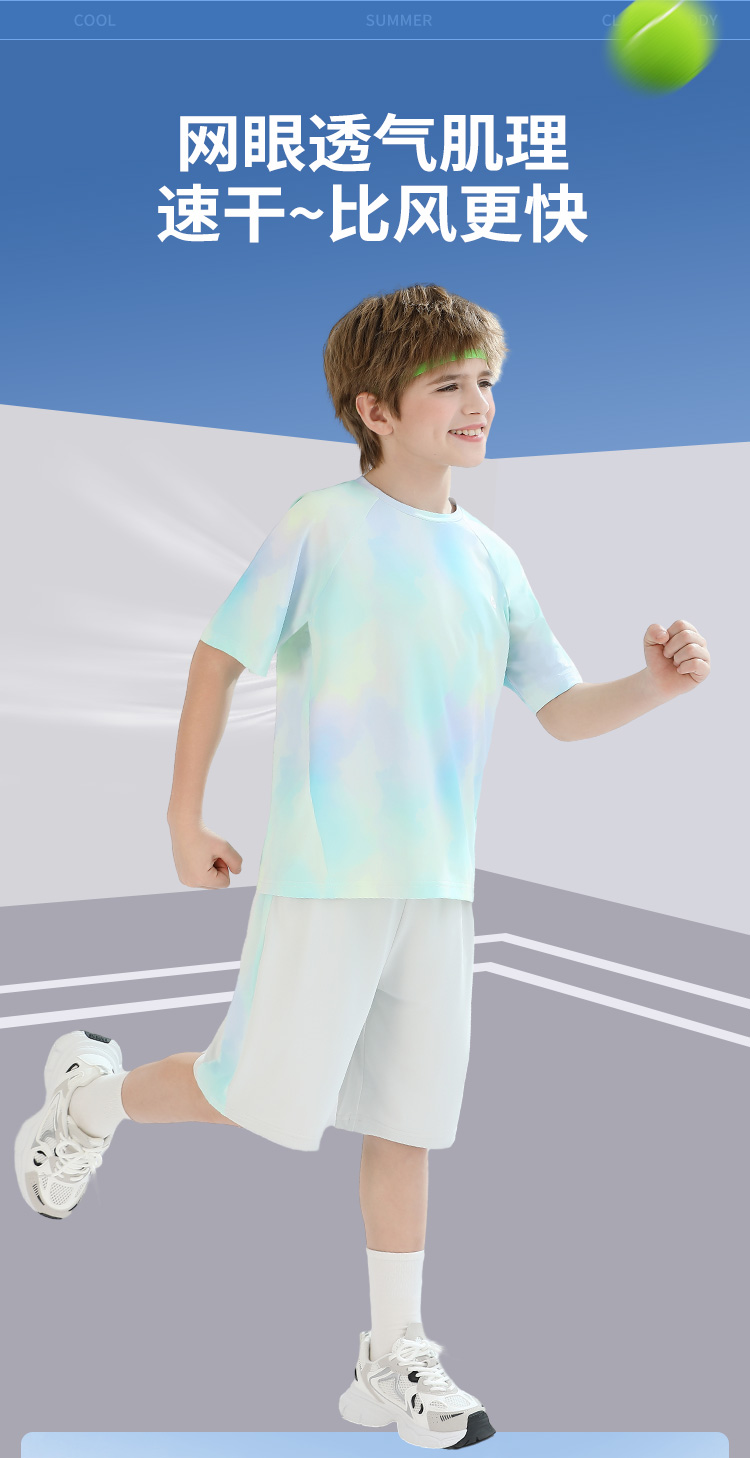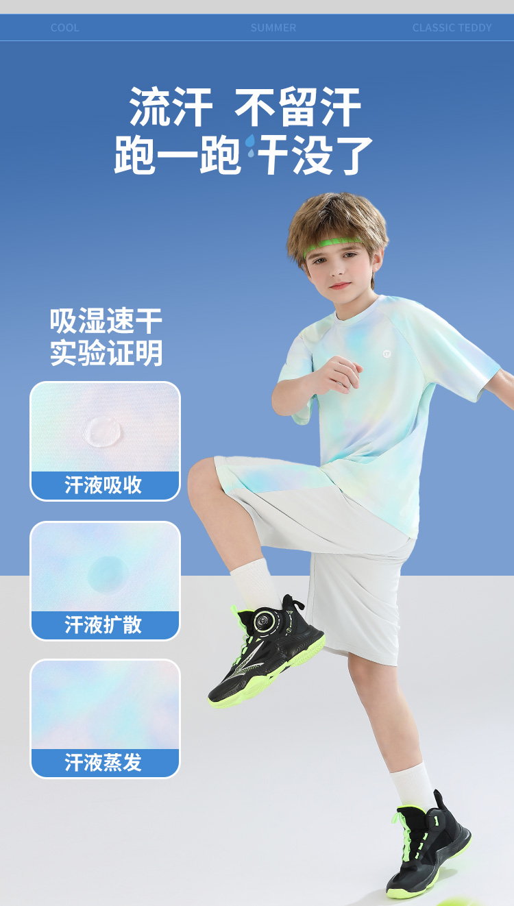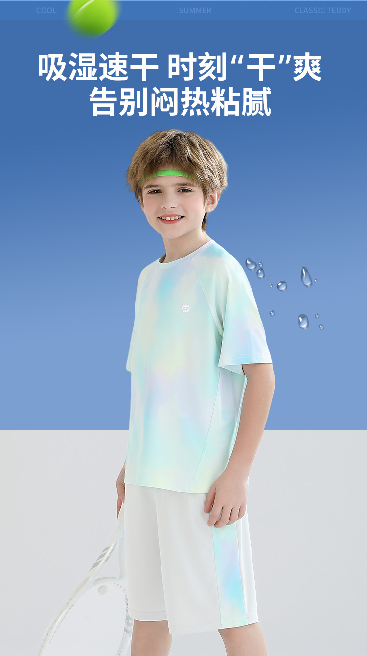 【男女同款套装】【140-165】【精典泰迪】男女童夏季晕染速干套装