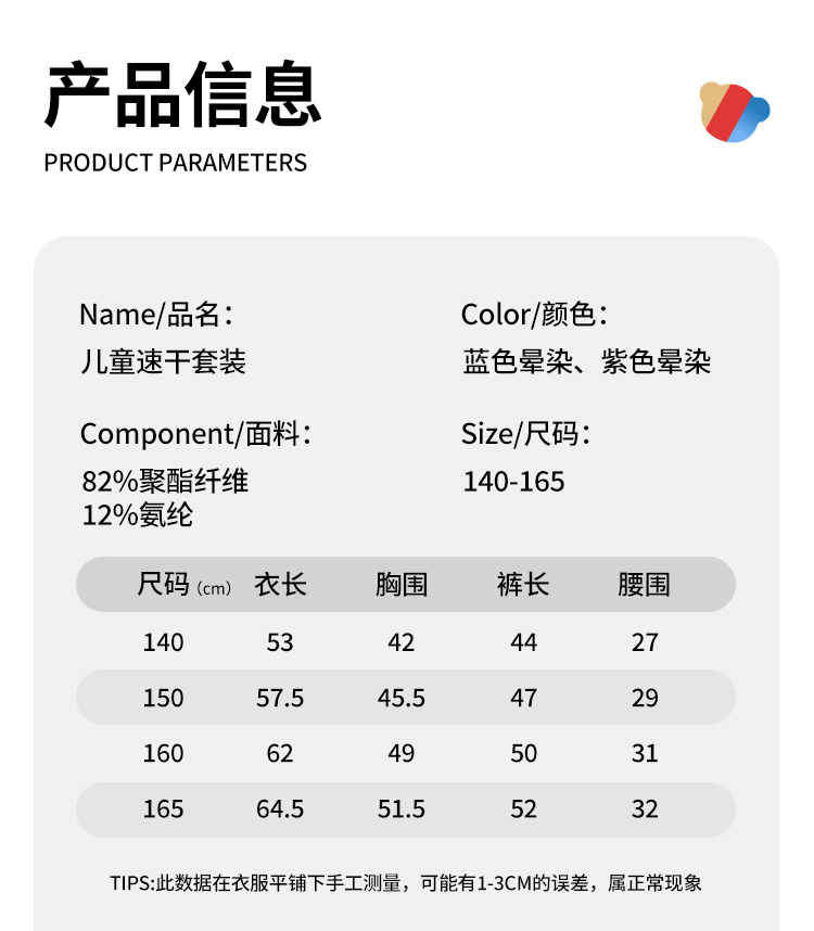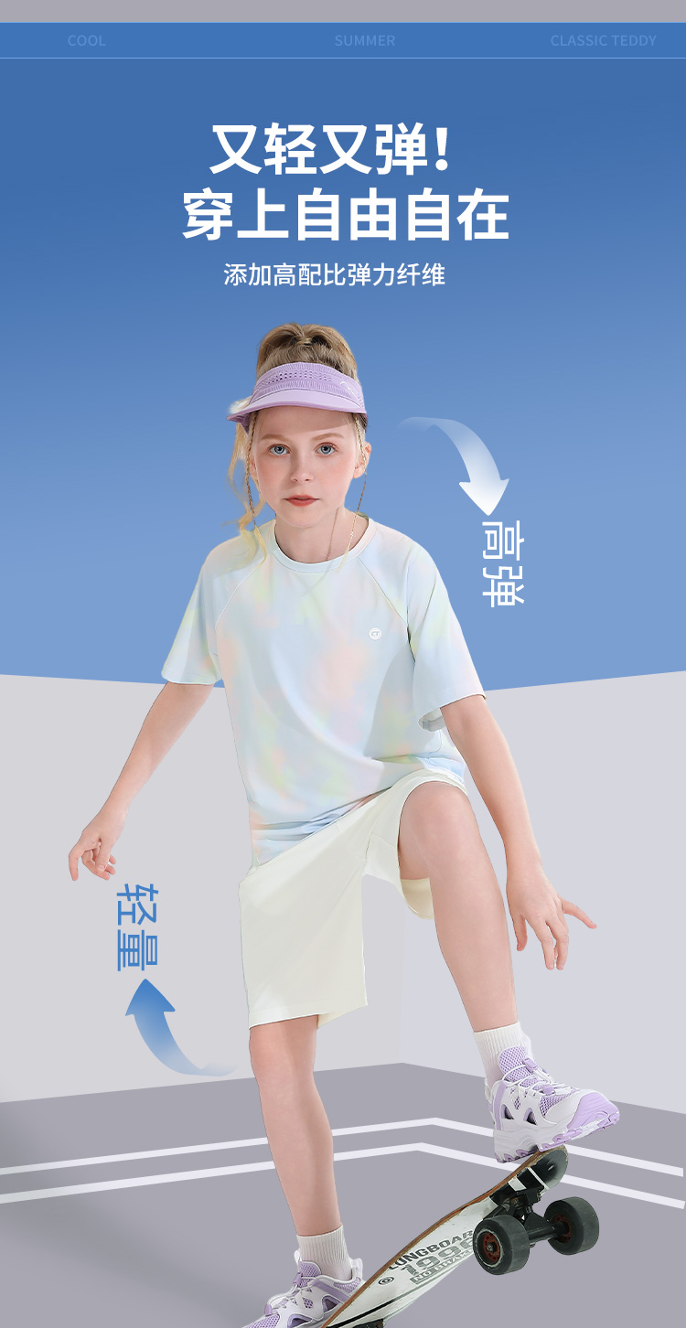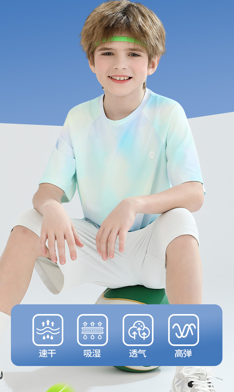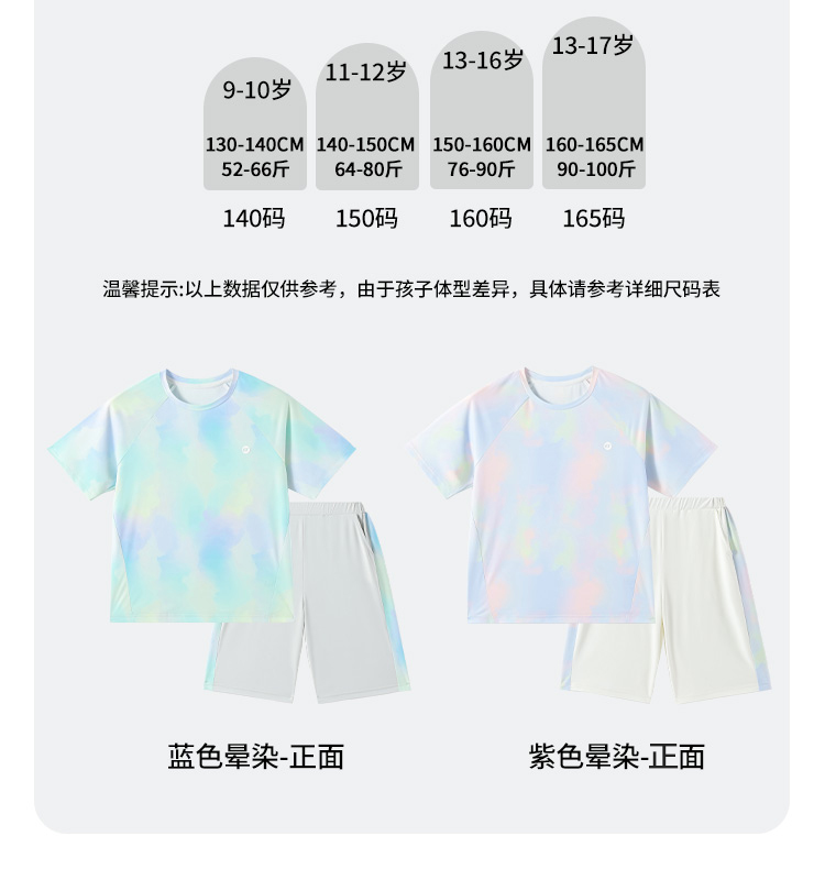 【男女同款套装】【140-165】【精典泰迪】男女童夏季晕染速干套装