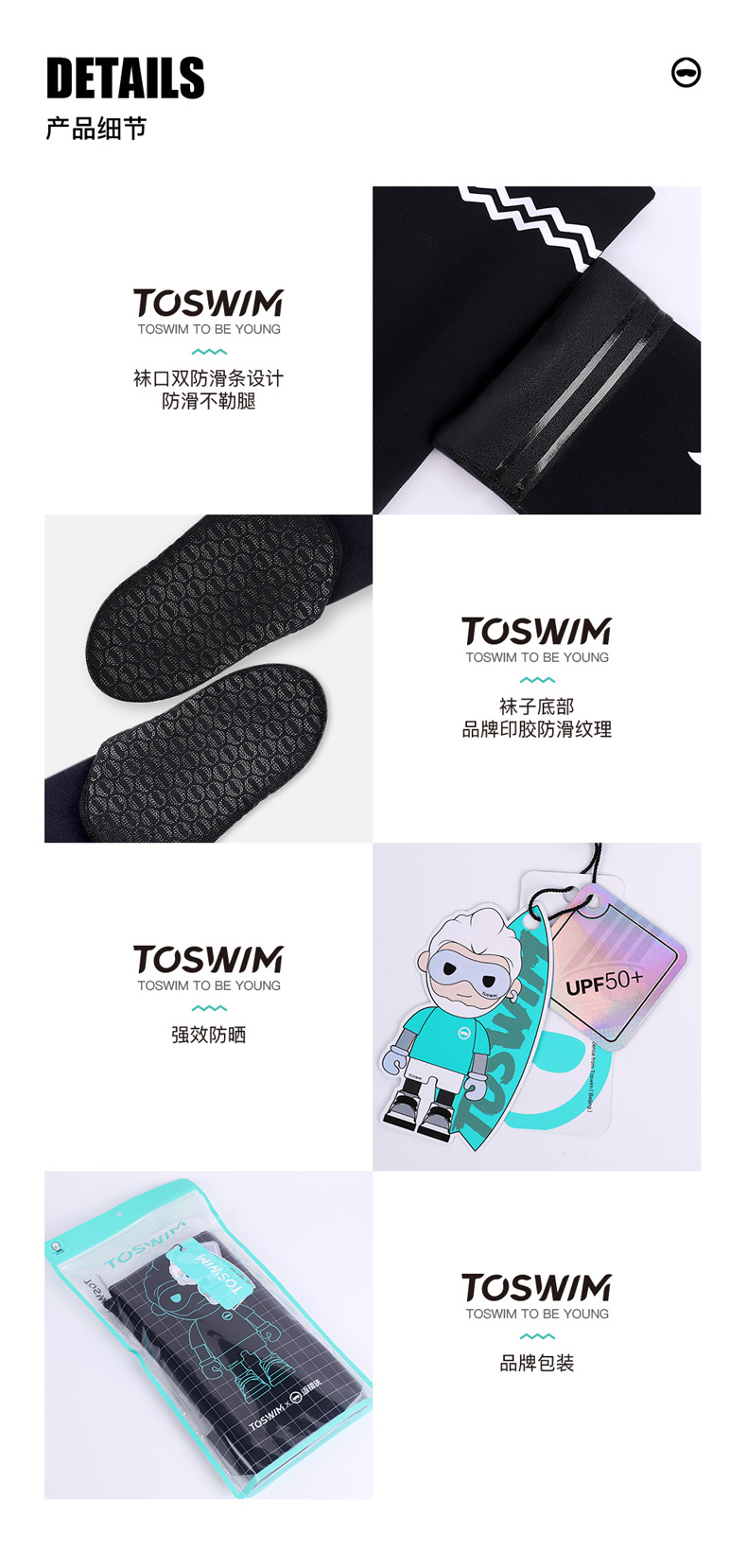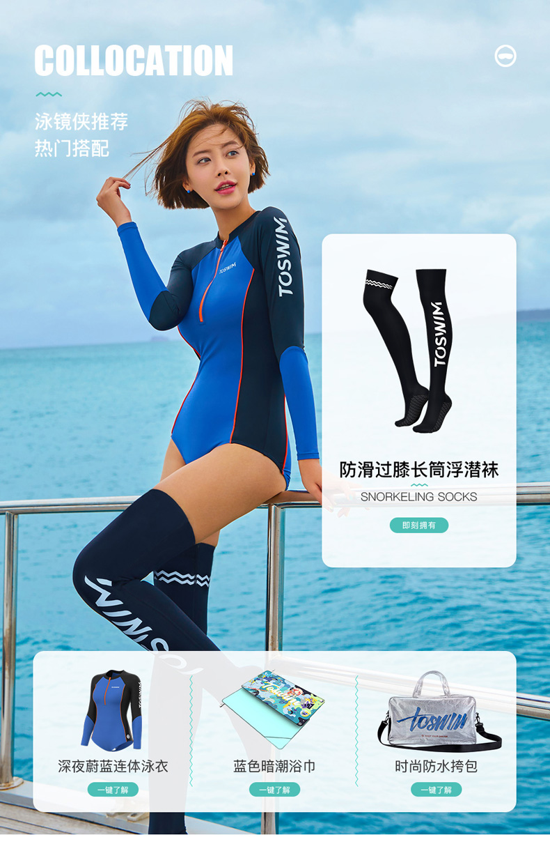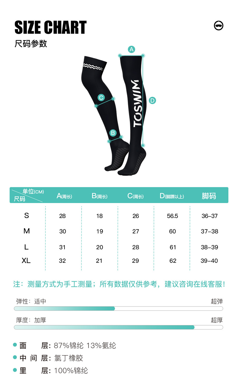 TOSWIM女士时尚速干长筒紧身大码长款印花潜水温泉沙滩冬季潜水袜