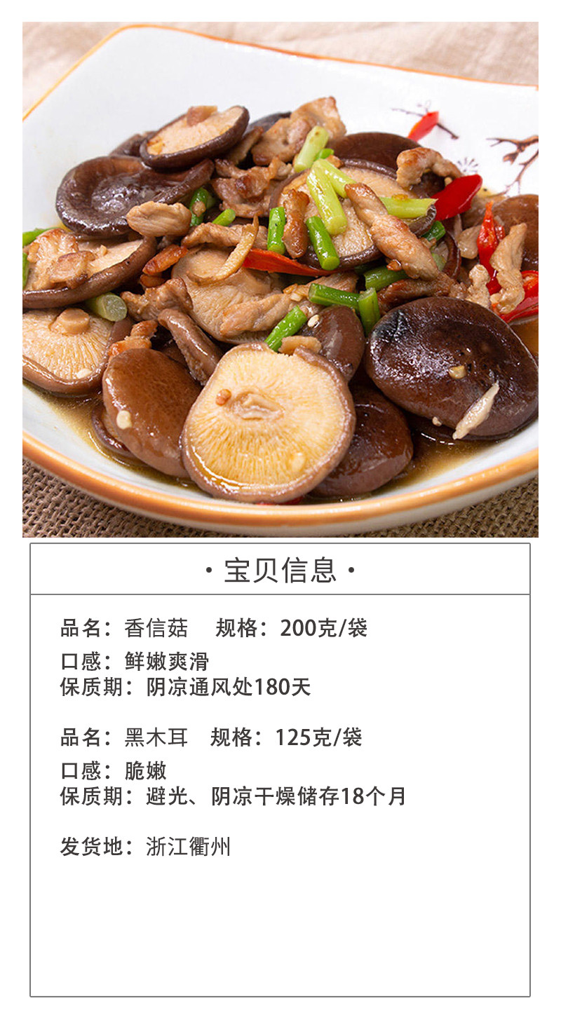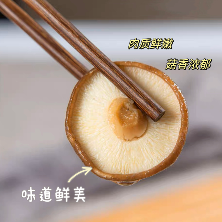 采用古法制菇,低温烘干,低温烘干技术保留香信菇风味,开袋就能闻到香信菇质朴的清香哦。