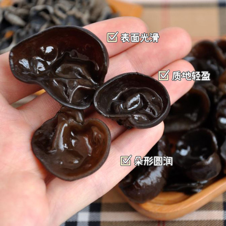 品质也是上乘的,口感,无根无沙,表面光滑,质地轻盈,色泽呈黑褐色,并且朵型圆润。