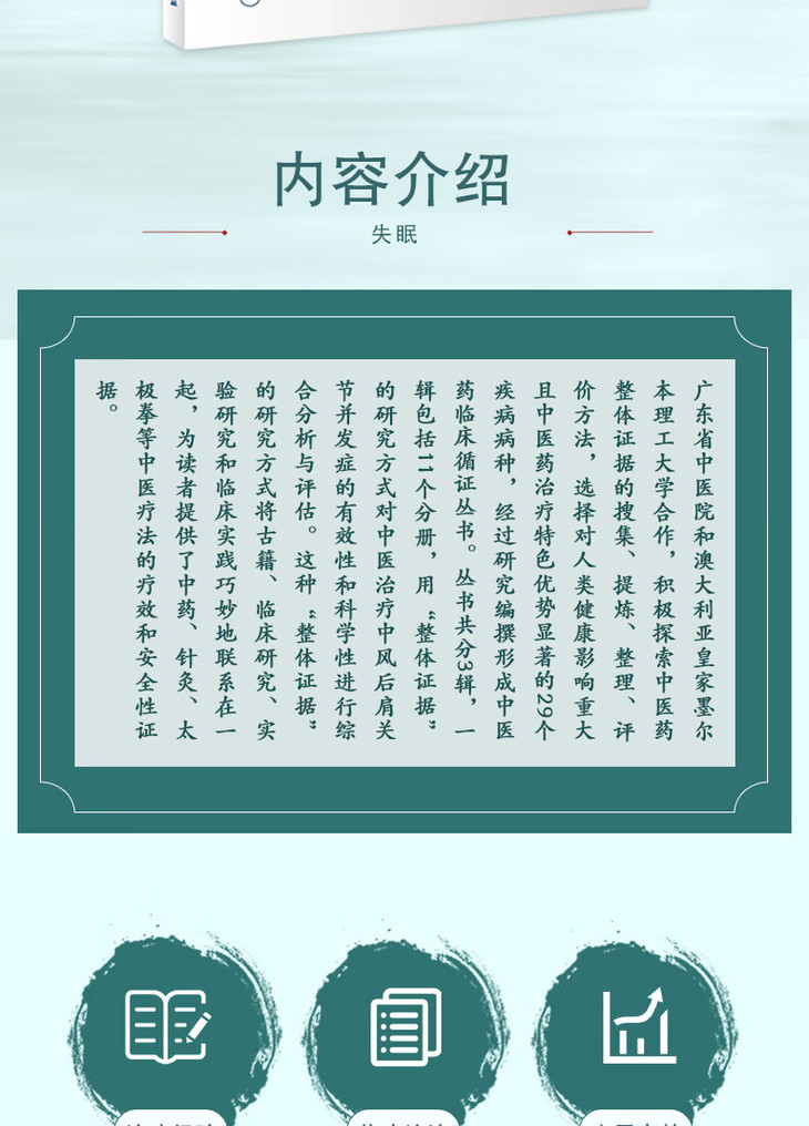 广东省中医院和澳大利亚皇家墨尔本理工大学合作,积极探索中医药整体证据的搜集、提炼、整理、评价方法,选择对人类健康影响重大且中医药治疗特色优势显著的29个疾病病种,经过研究编撰形成中医药临床循证丛书。丛书共分3辑,第一辑包括11个分册,用“整体证据”的研究方式对中医治疗中风后肩关节并发症的有效性和科学性进行综合分析与评估。这种“整体证据”的研究方式将古籍、临床研究、实验研究和临床实践巧妙地联系在一起,为读者提供了中药、针灸、太极拳等中医疗法的疗效和安全性证据。