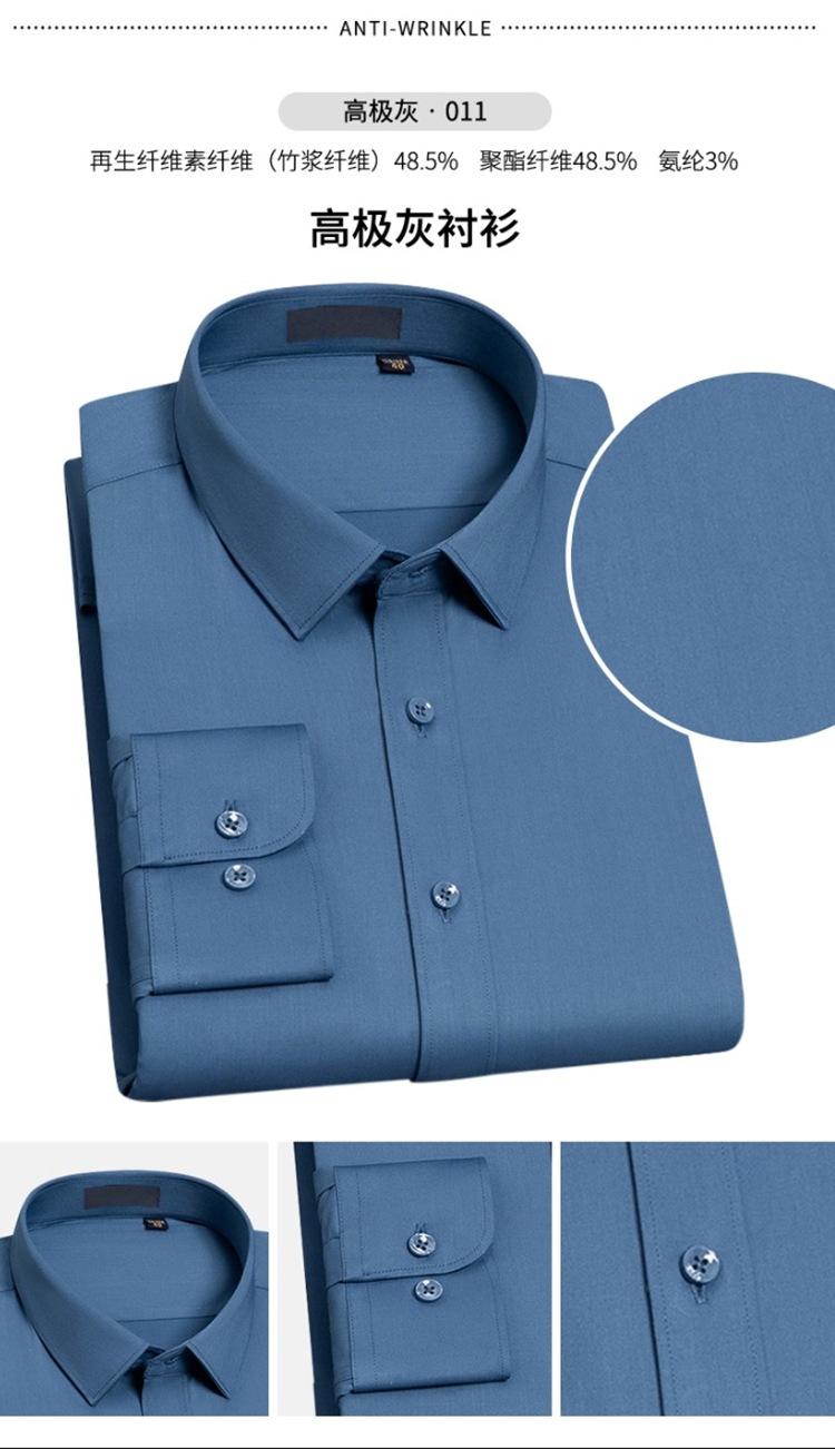 【实付满399送保温杯】【竹纤维弹力免烫长袖衬衫】长袖内搭弹力衬衫通勤修身上衣
