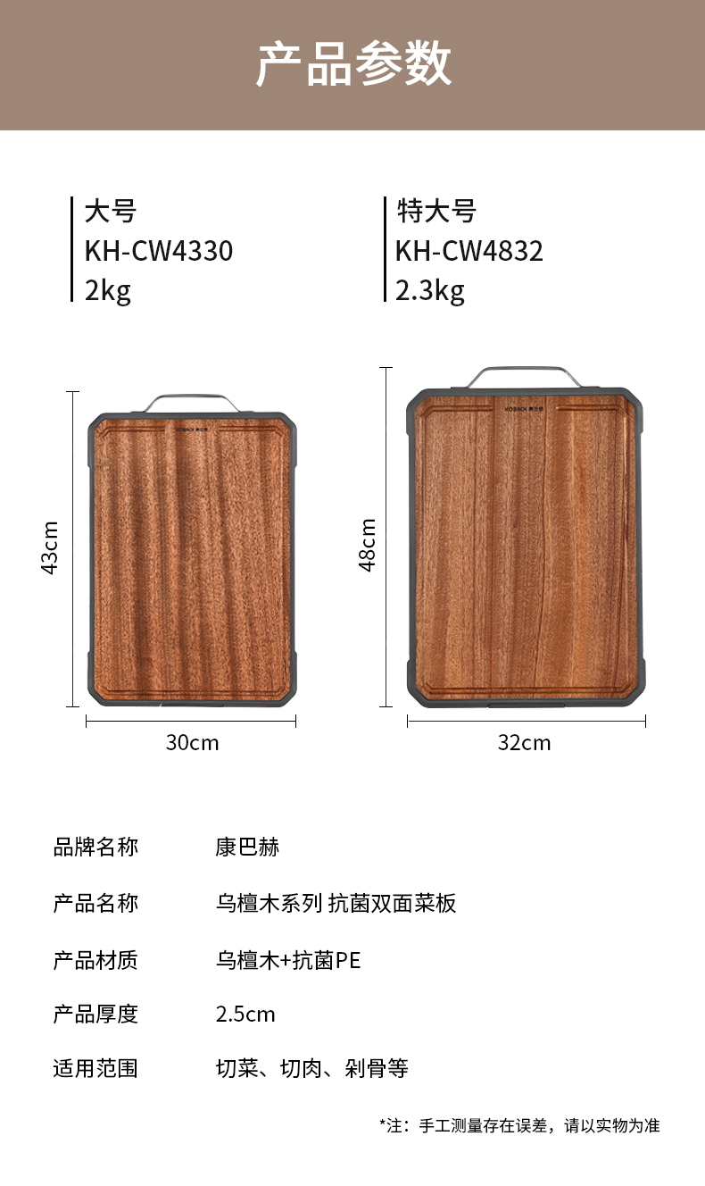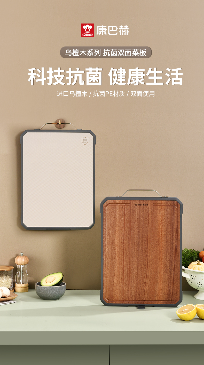 【商品名称】康巴赫乌檀木系列抗菌双面板菜板家用