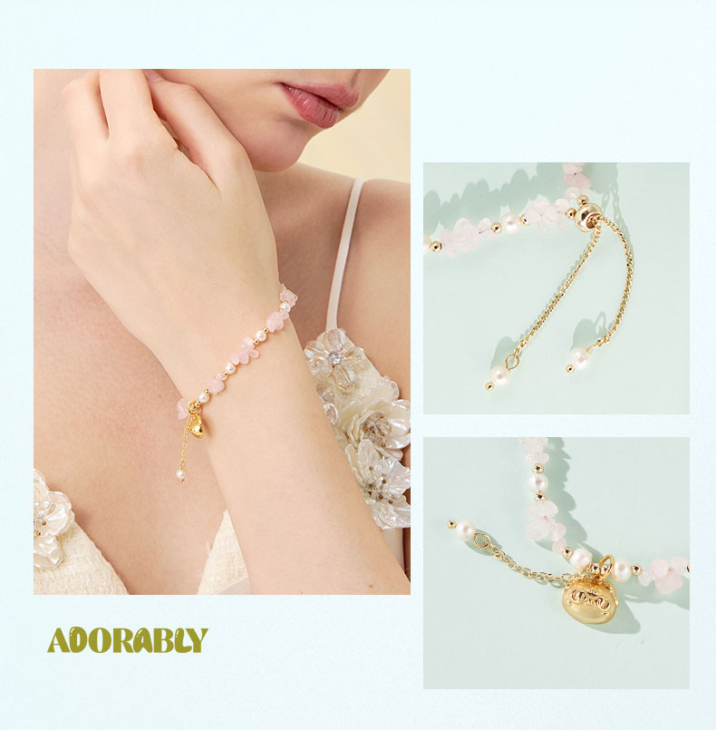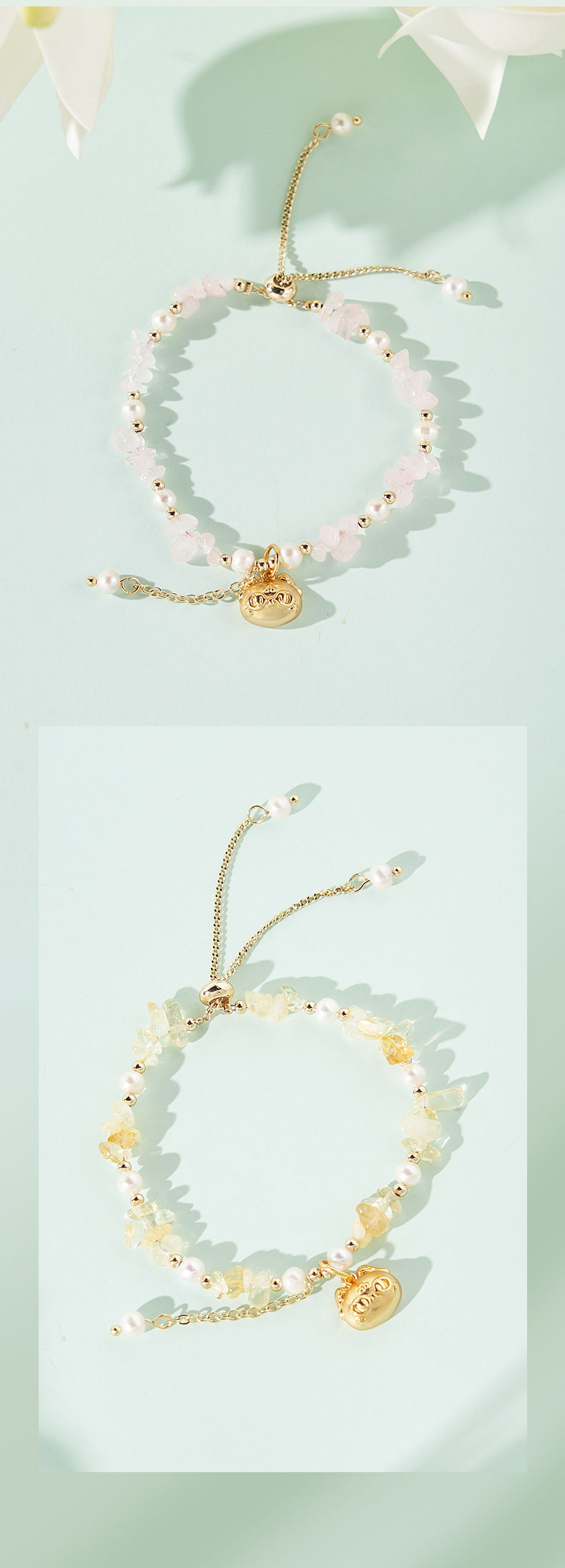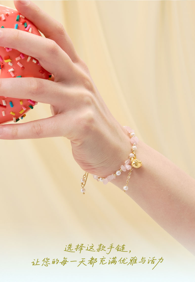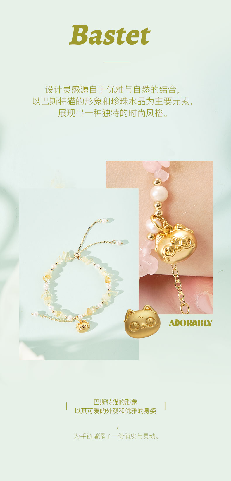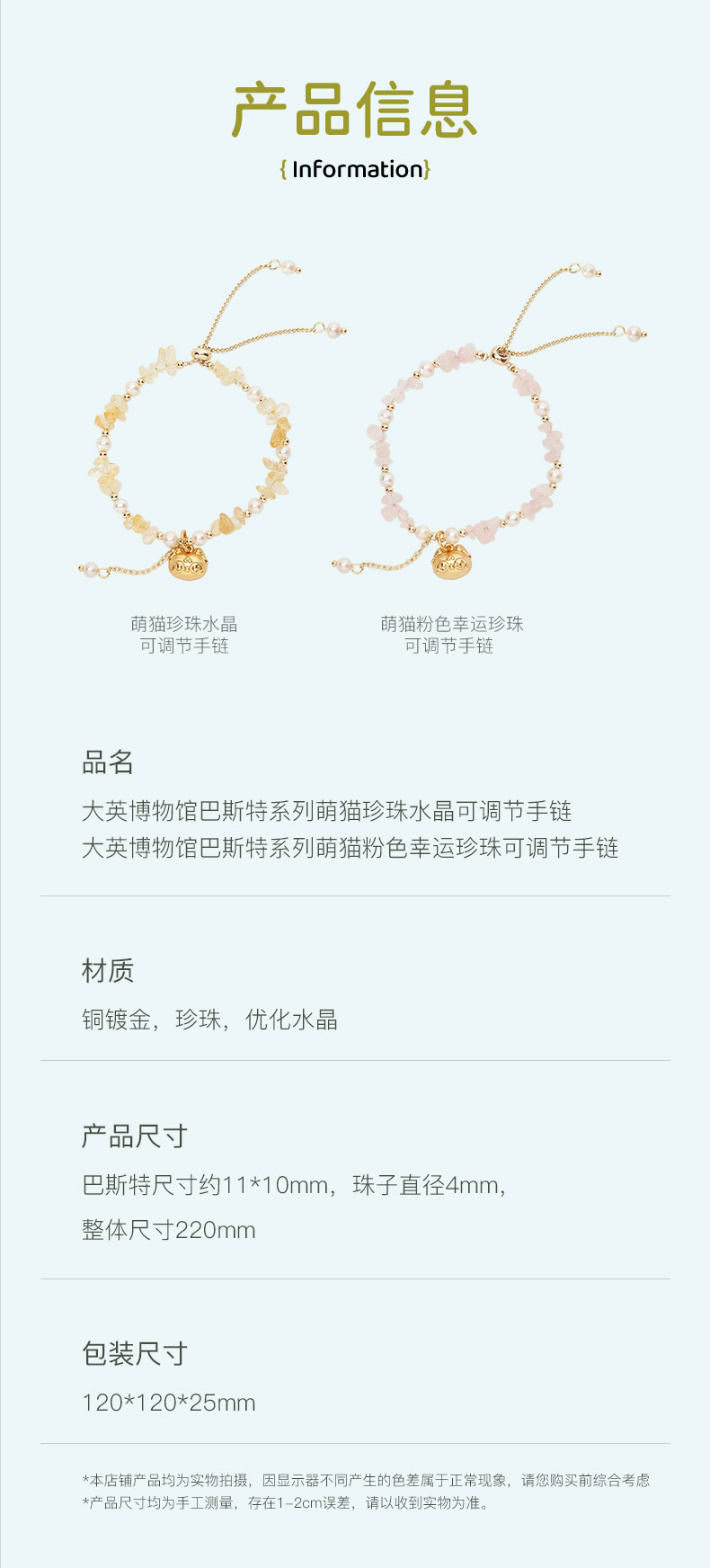 大英博物馆 盖亚·巴斯特系列 萌猫珍珠水晶可调节手链 黄色 粉色