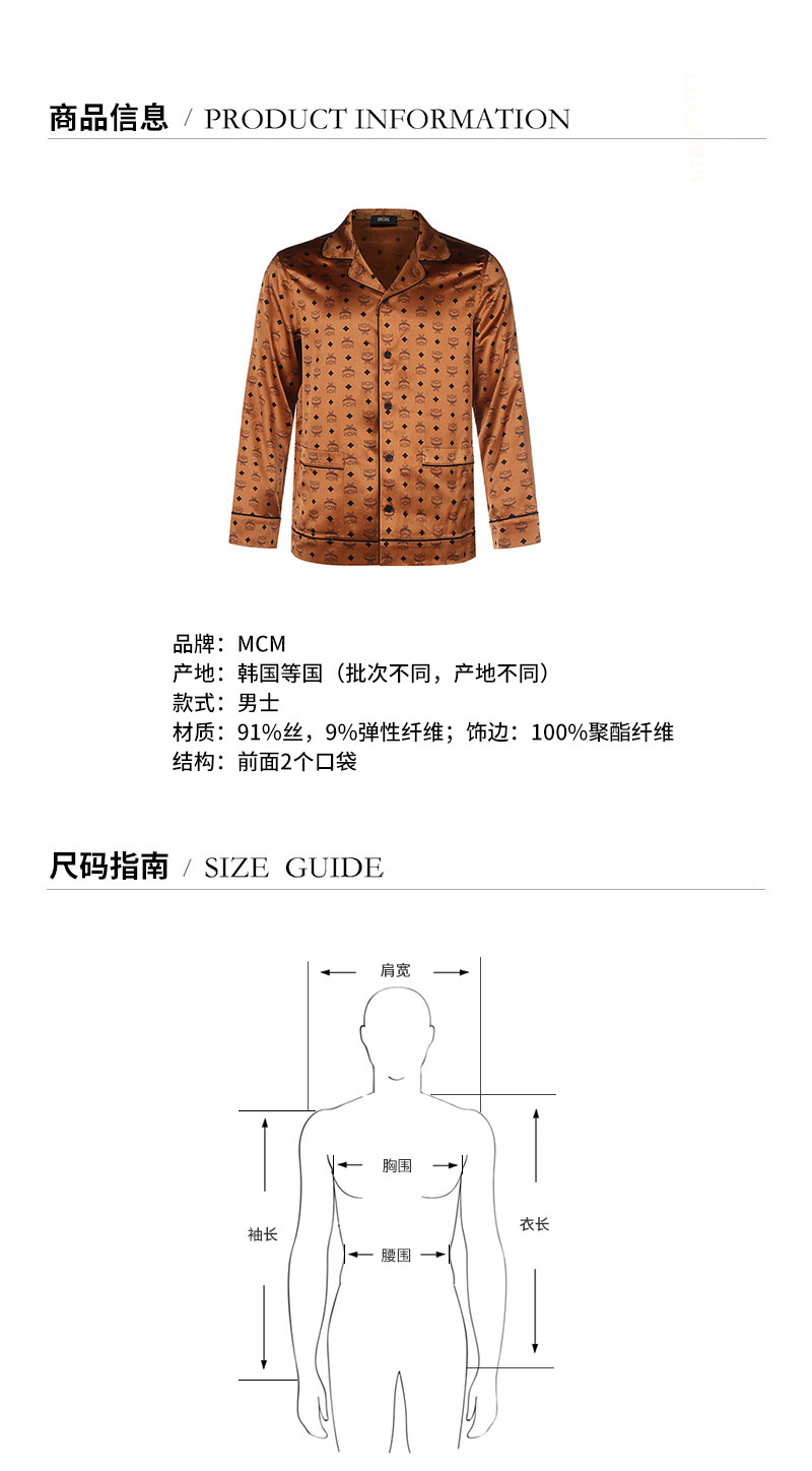 MCM/MCM 男睡衣/家居服 男士丝质睡衣衬衫上衣 MHXBSMM08
