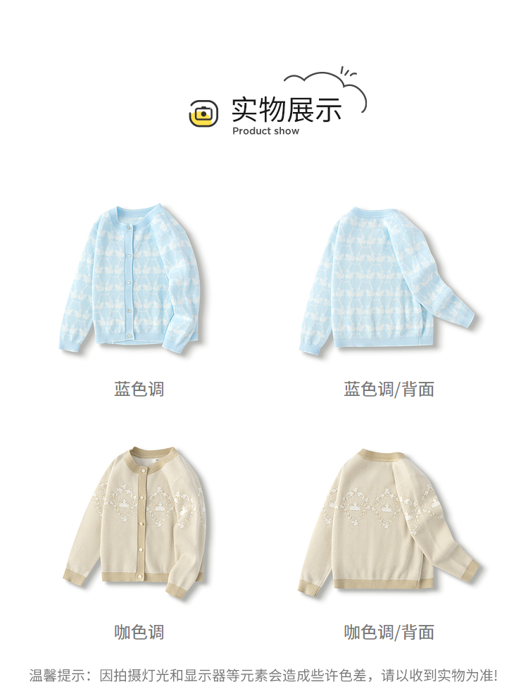 巴拉巴拉童装儿童毛衣女小童提花针织衫秋季开衫外套甜美百搭上衣