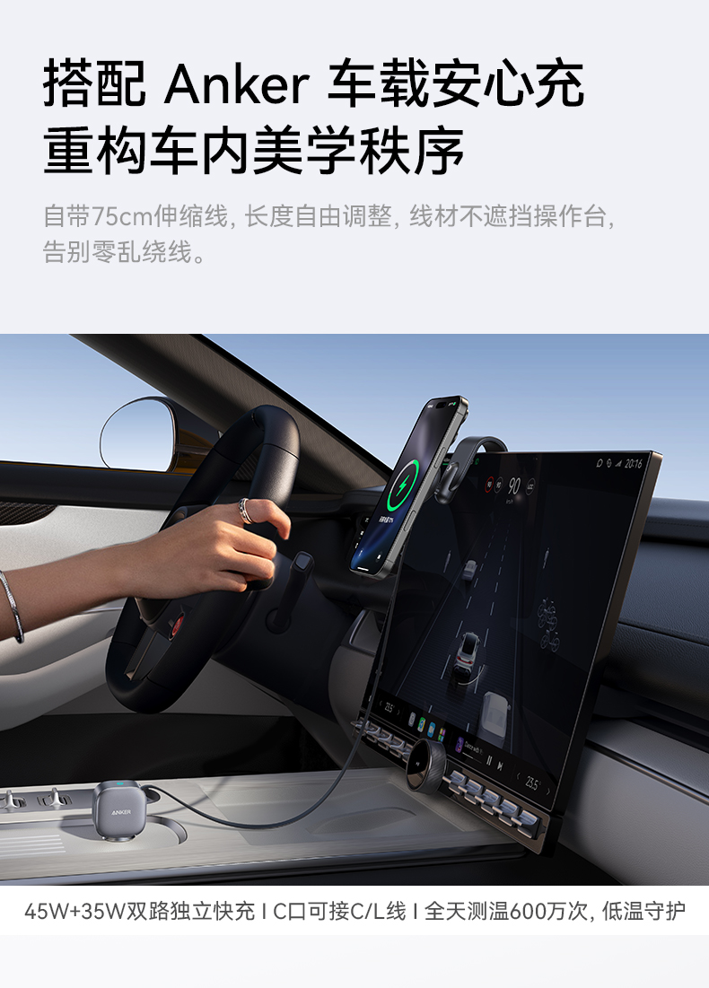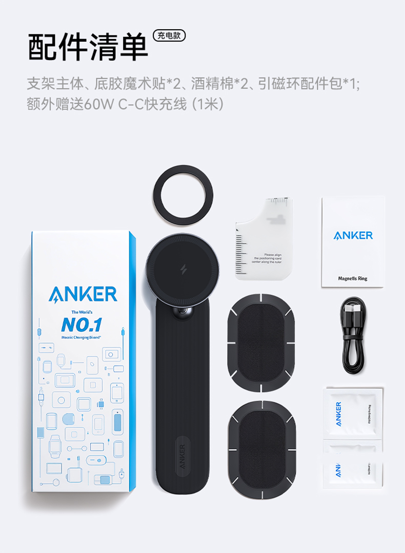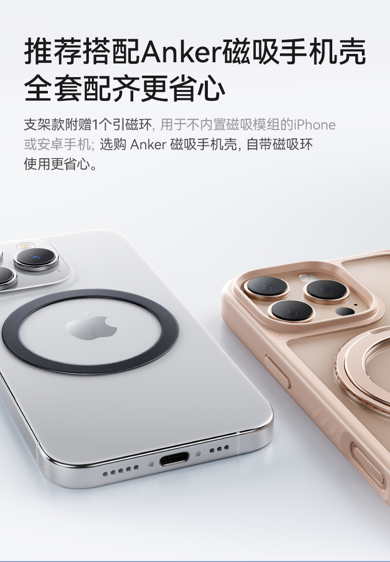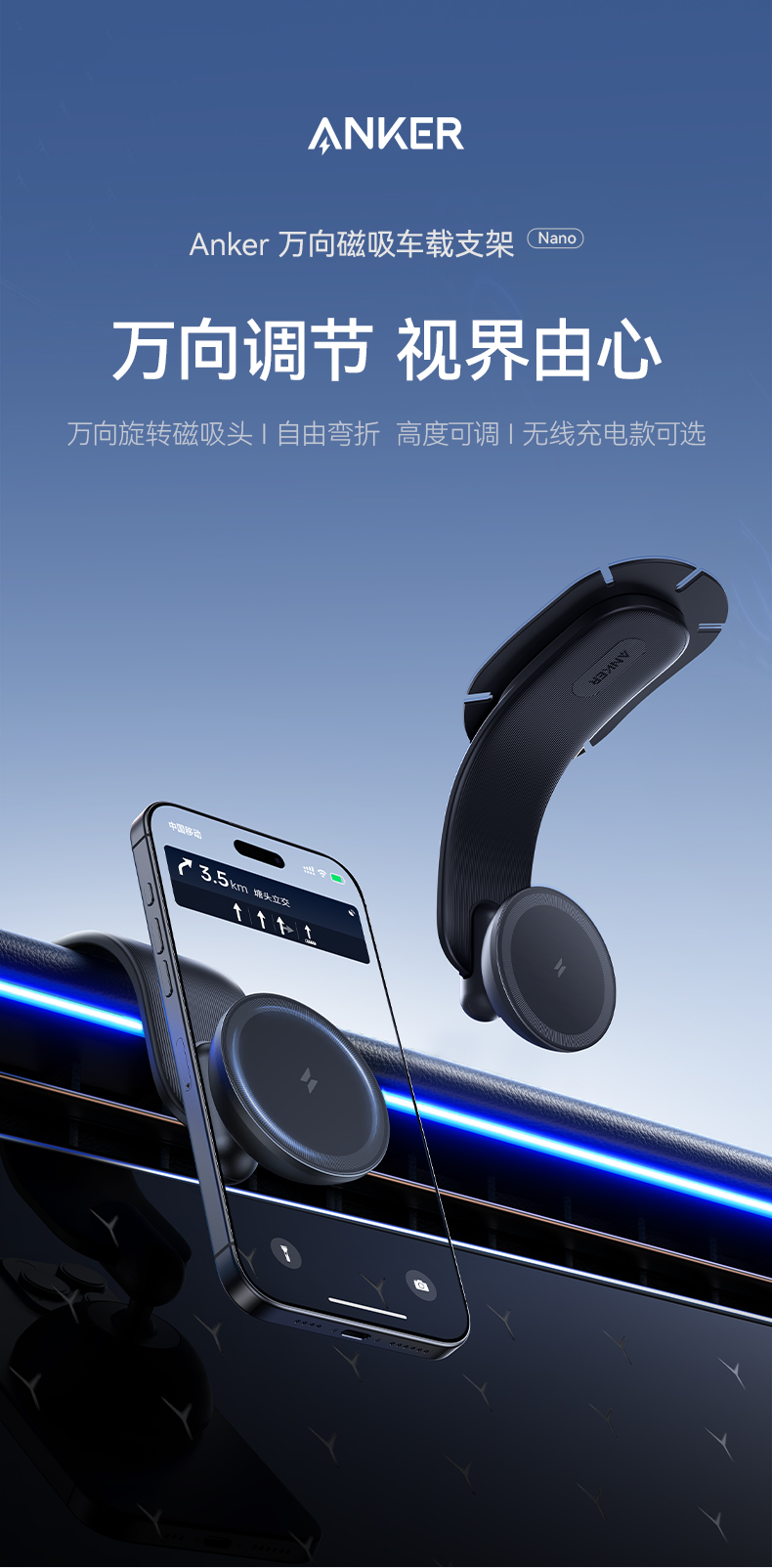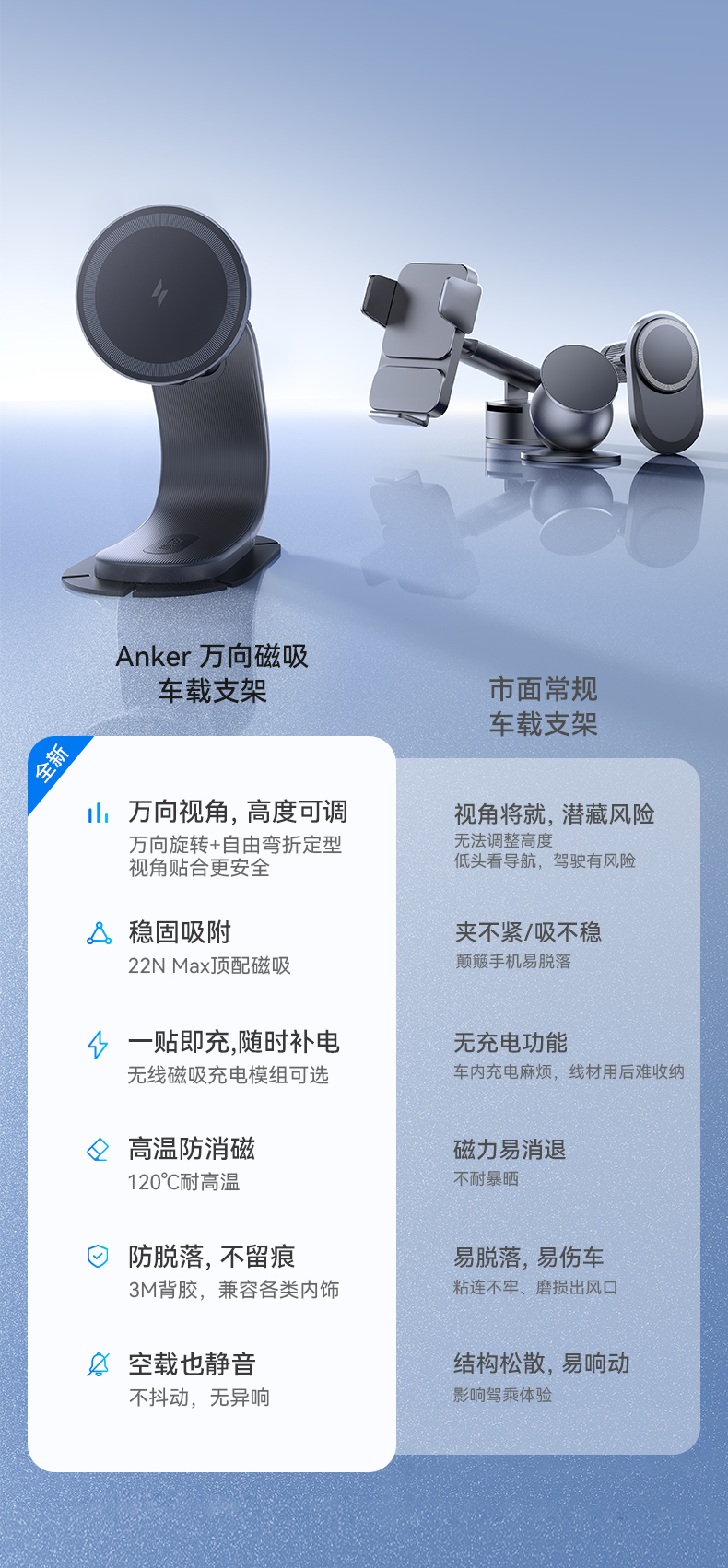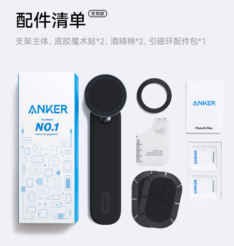 【新品】Anker安克 万向磁吸车载支架 Magsafe高度可调节广角旋转大吸力适配多车型 A9110/A2216