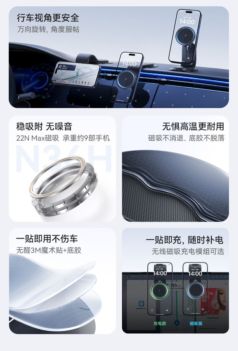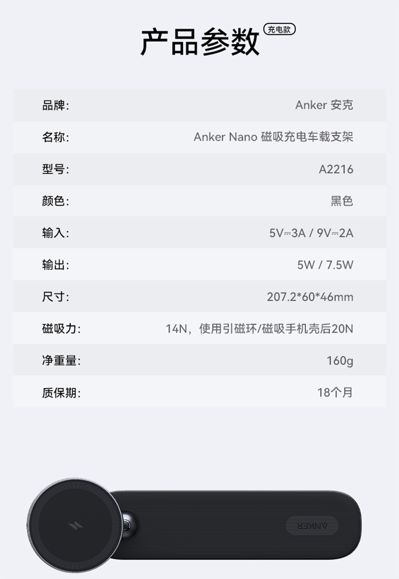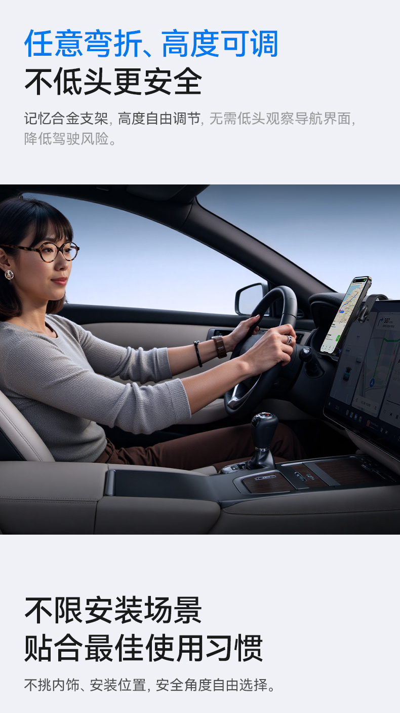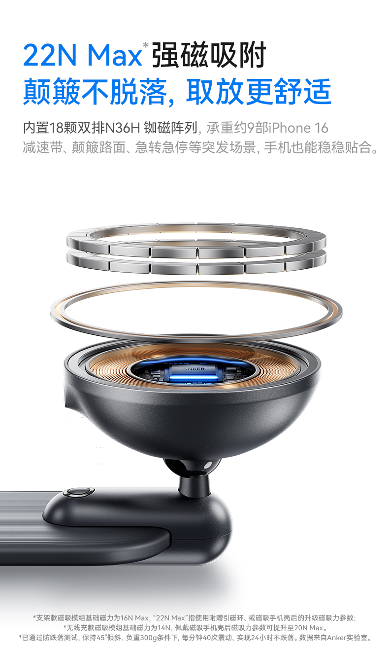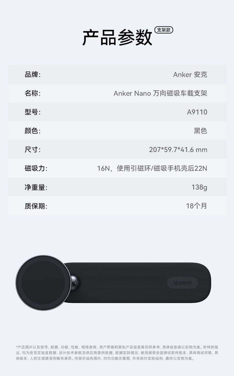 【新品】Anker安克 万向磁吸车载支架 Magsafe高度可调节广角旋转大吸力适配多车型 A9110/A2216