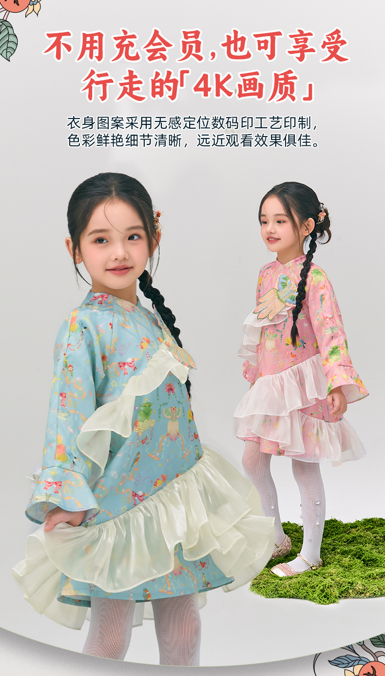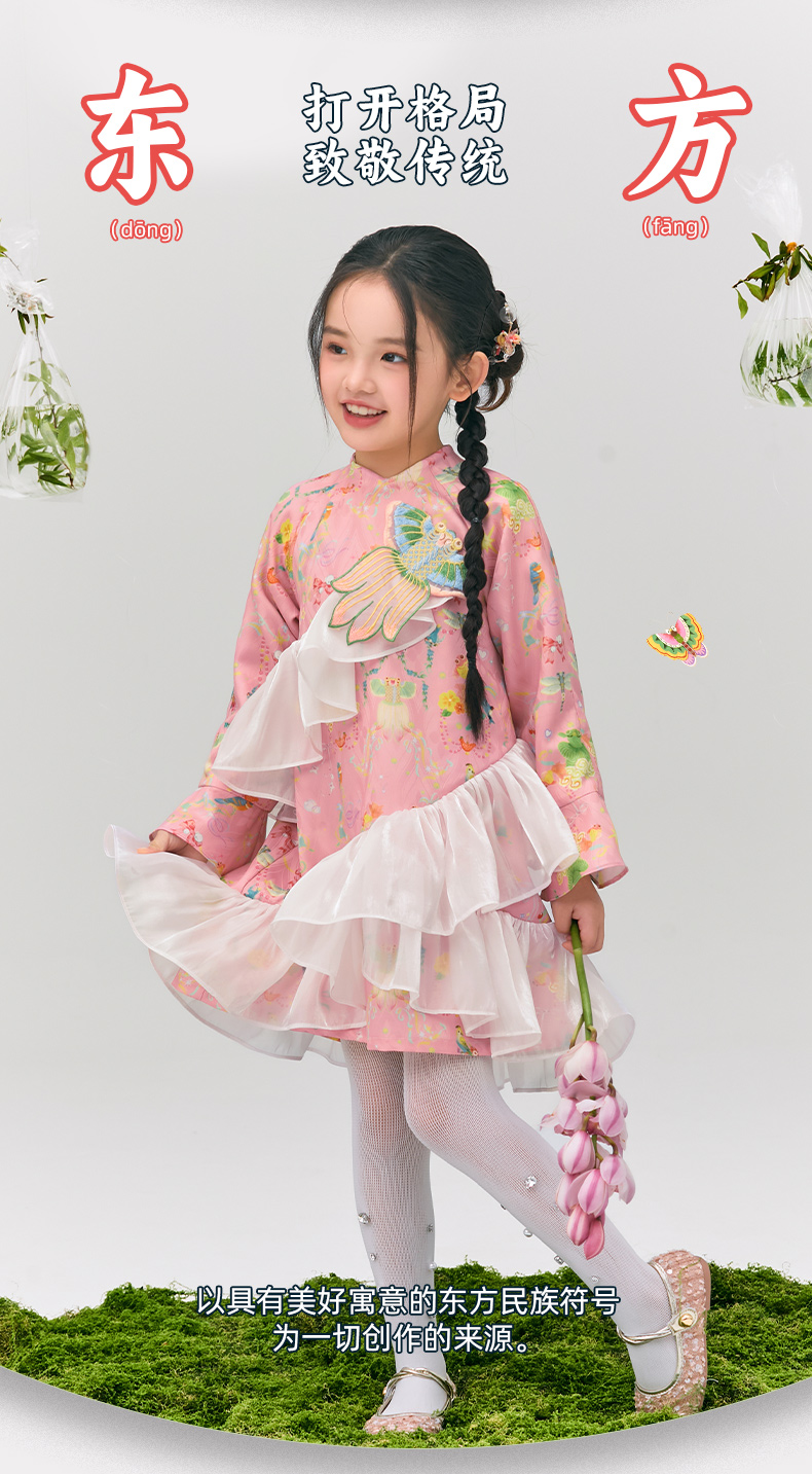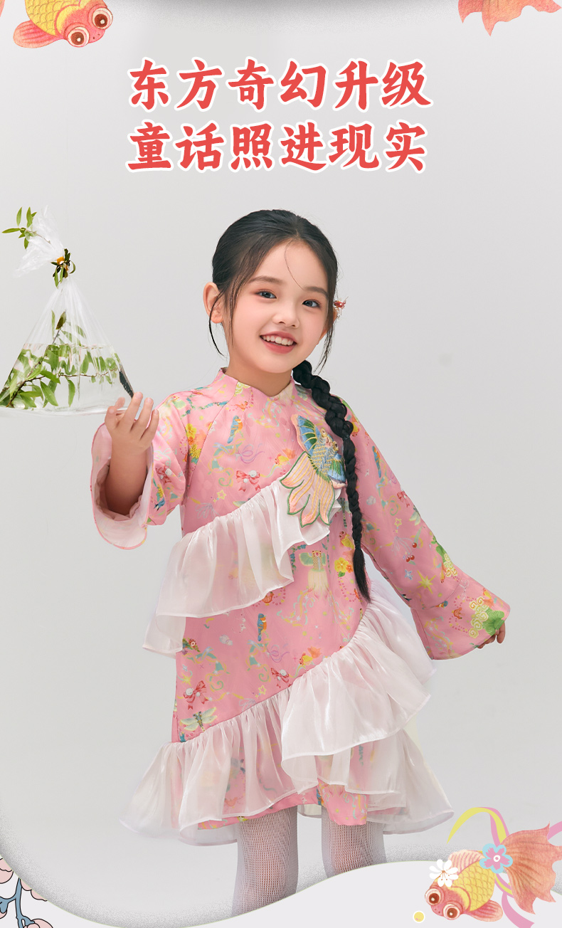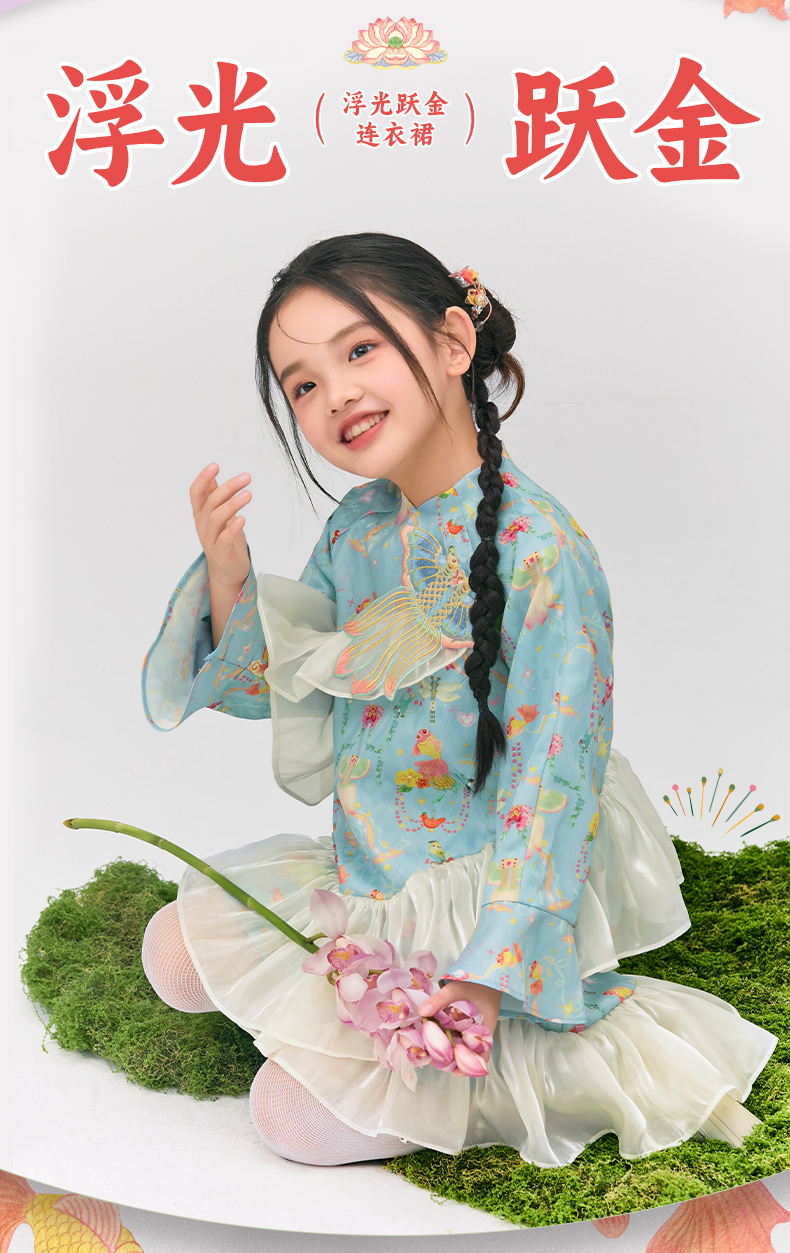 年衣童装旗袍连衣裙女童2025春新款中式公主裙子女大童浮光跃金连衣裙