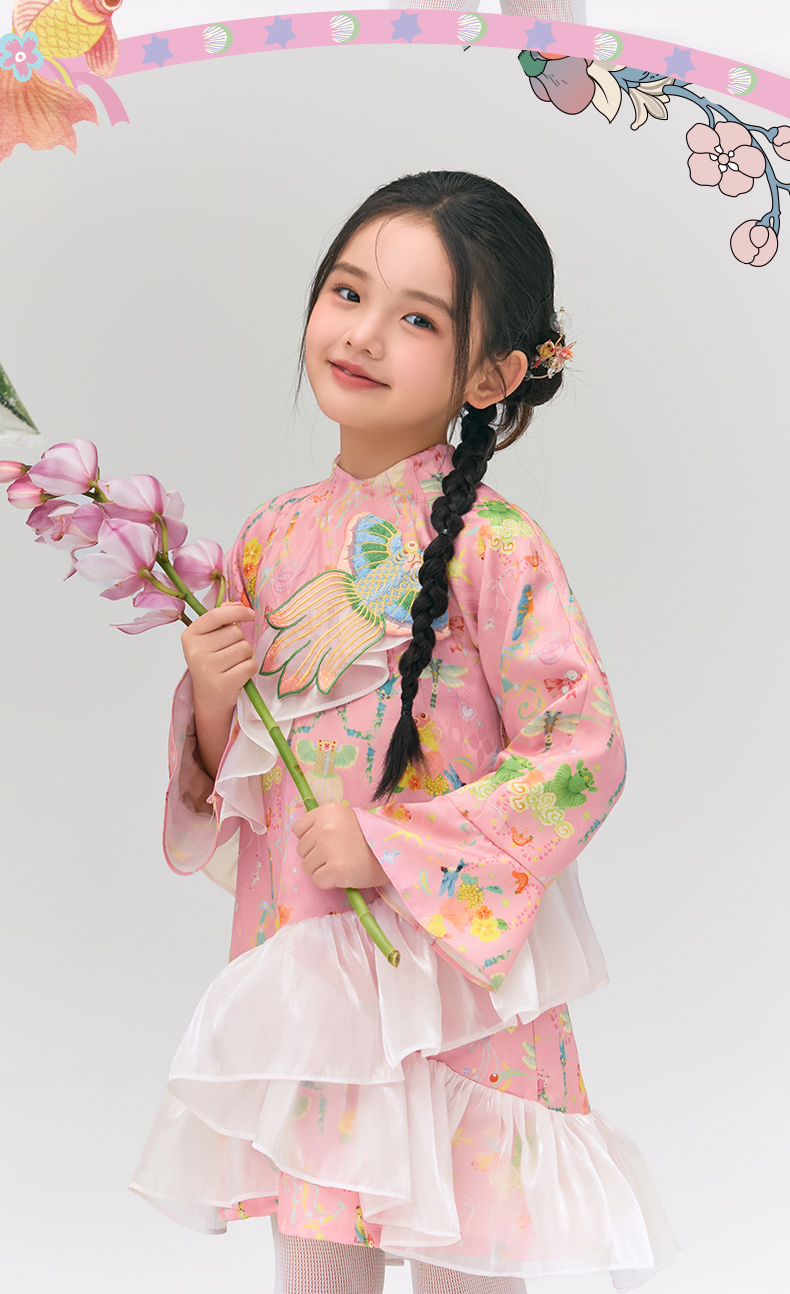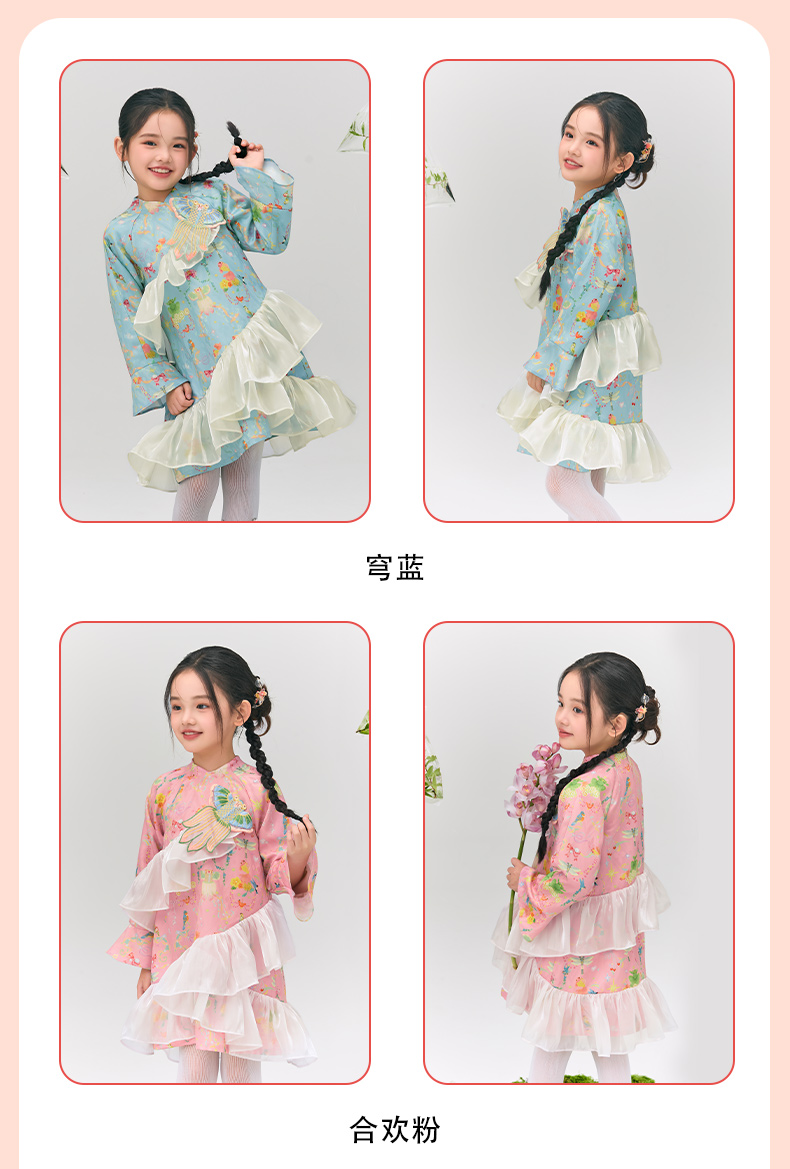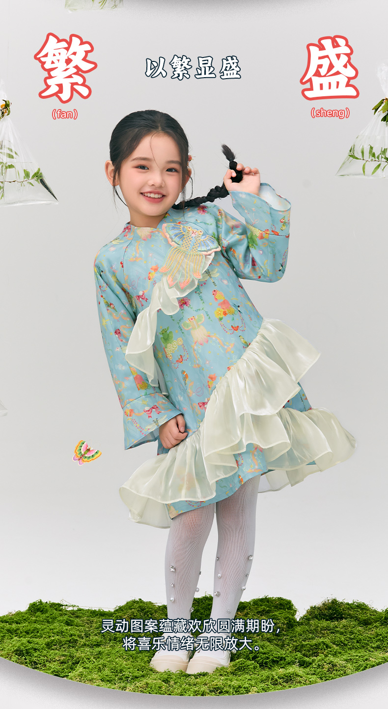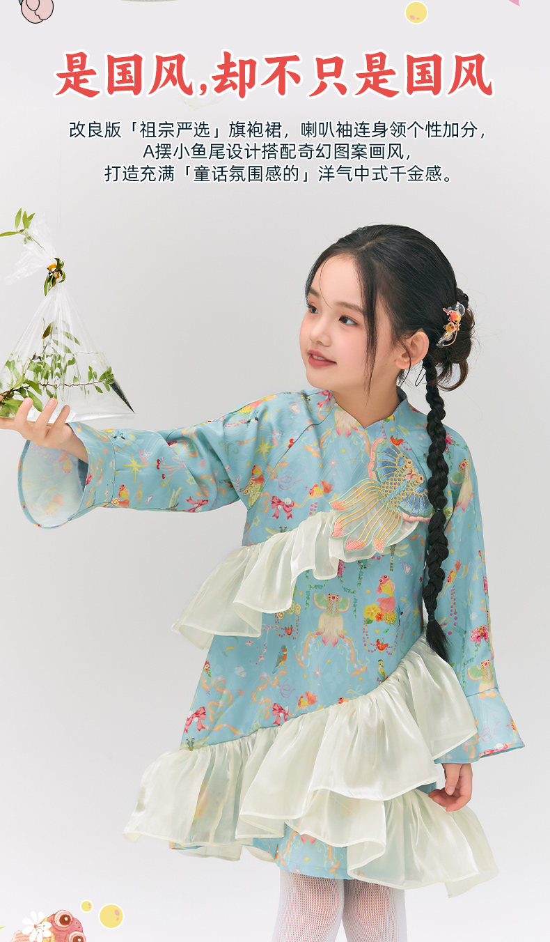 年衣童装旗袍连衣裙女童2025春新款中式公主裙子女大童浮光跃金连衣裙