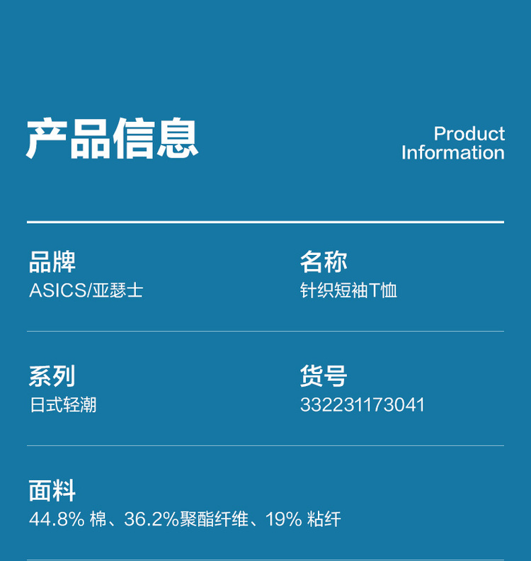 ASICS/亚瑟士童装夏季男女儿童防晒透气短袖T恤