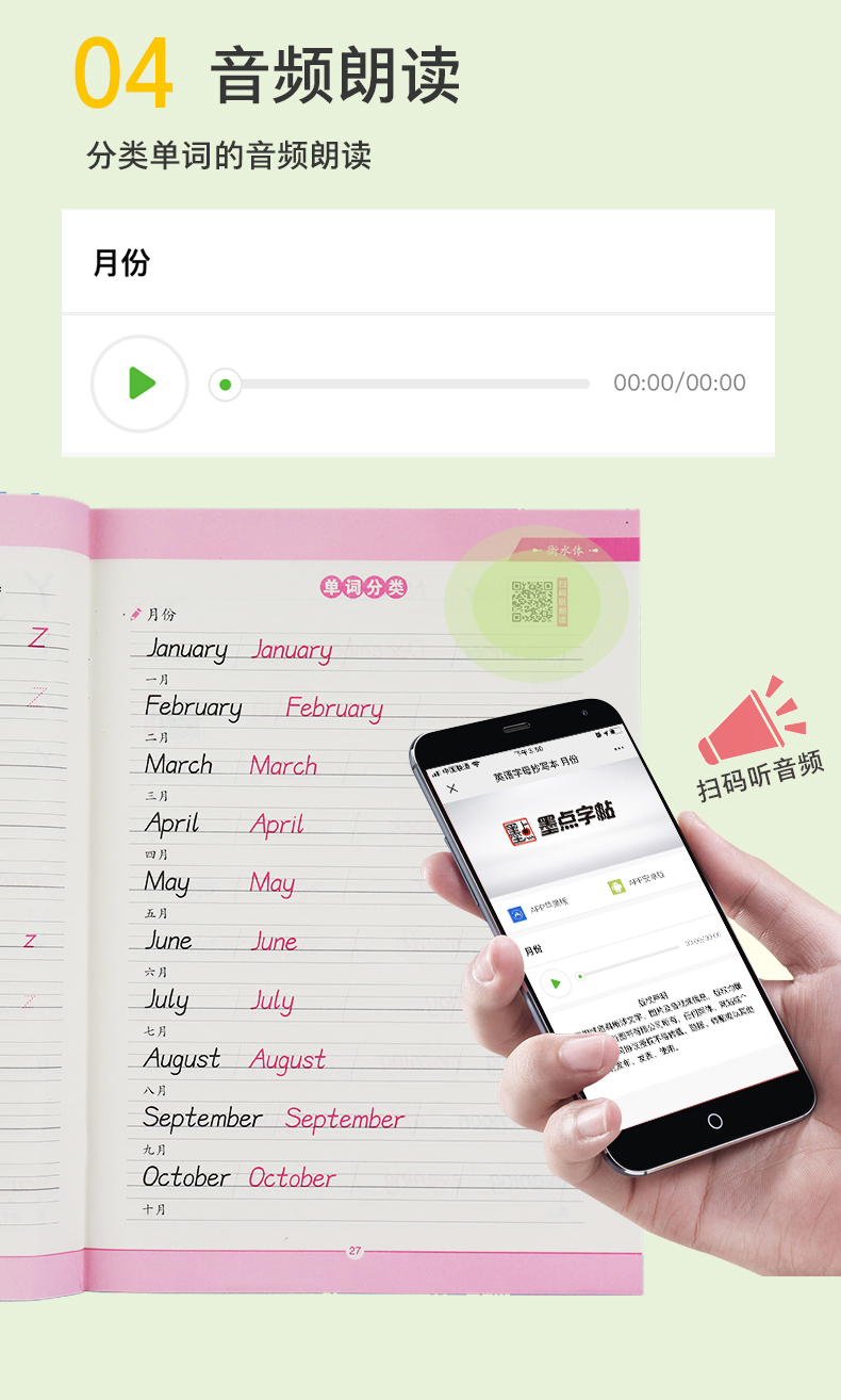 墨点衡水体英文字帖小学生练字帖英语字母抄写本每日一练书法练习练字本小学儿童练字书写衡水字体英语字帖