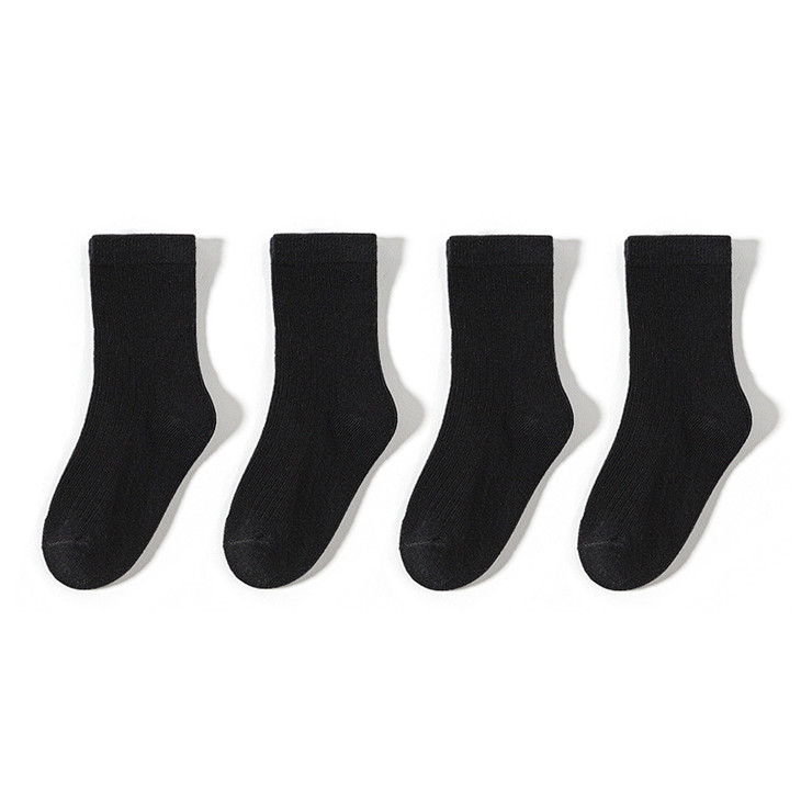 叽叽呀呀男女童双针纯色中筒袜