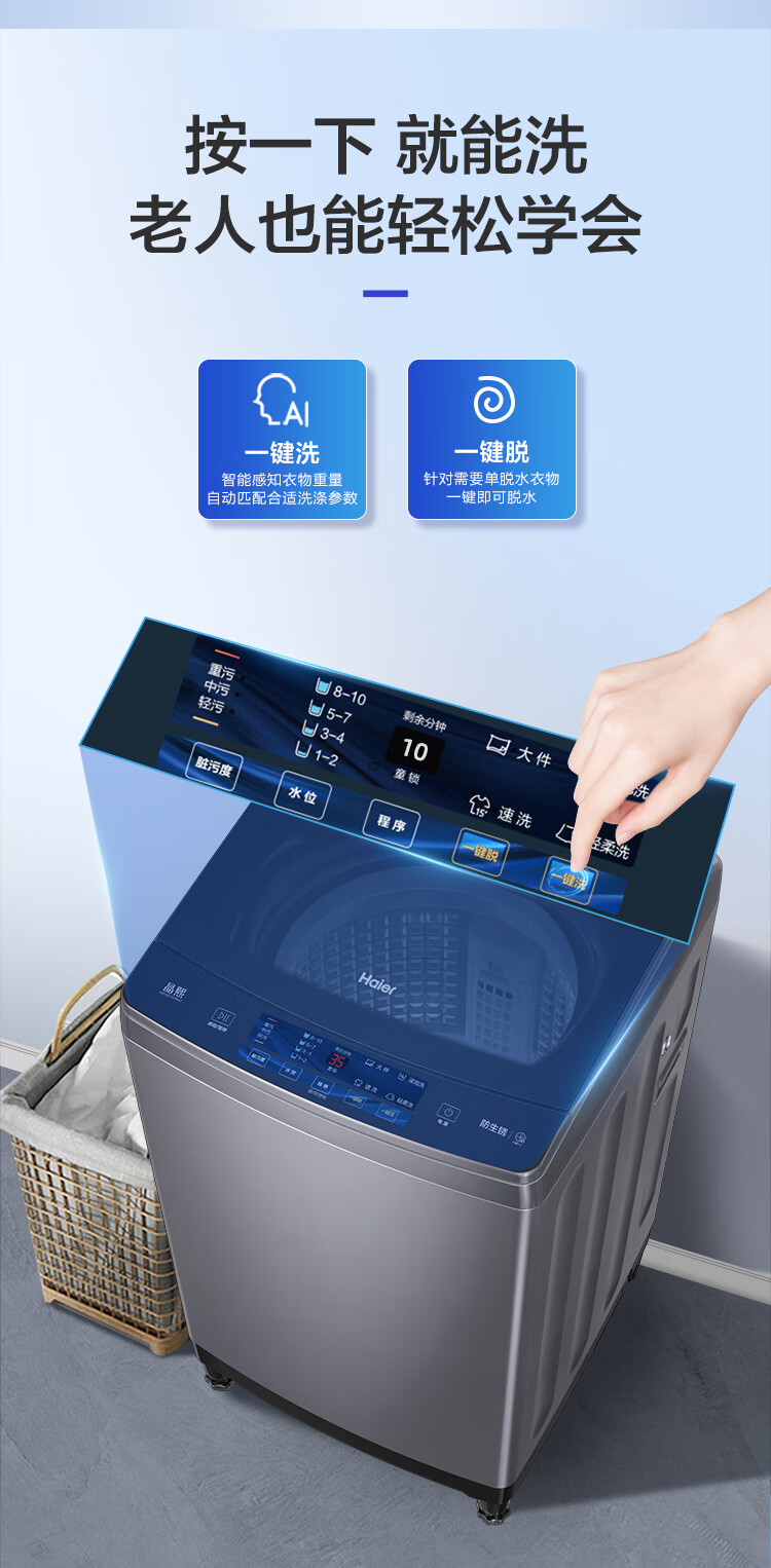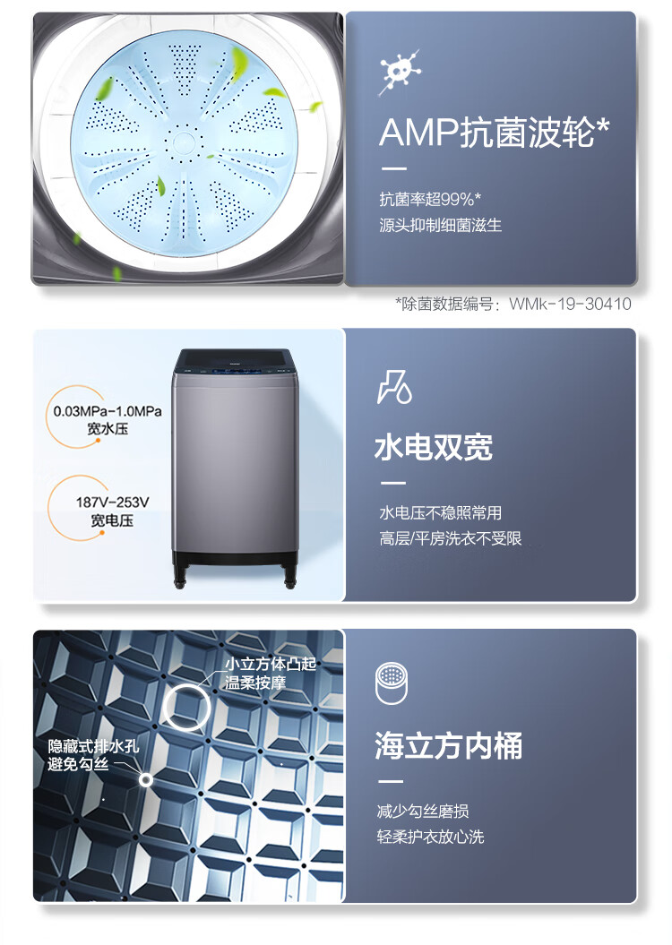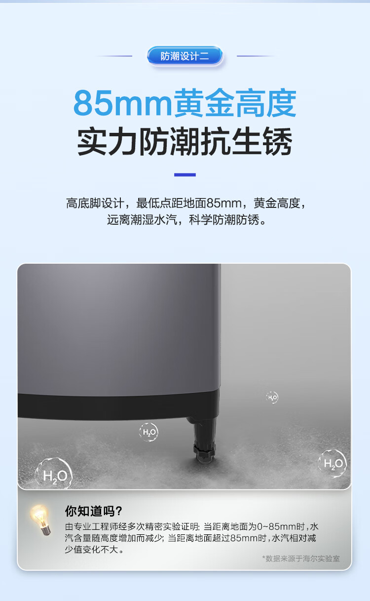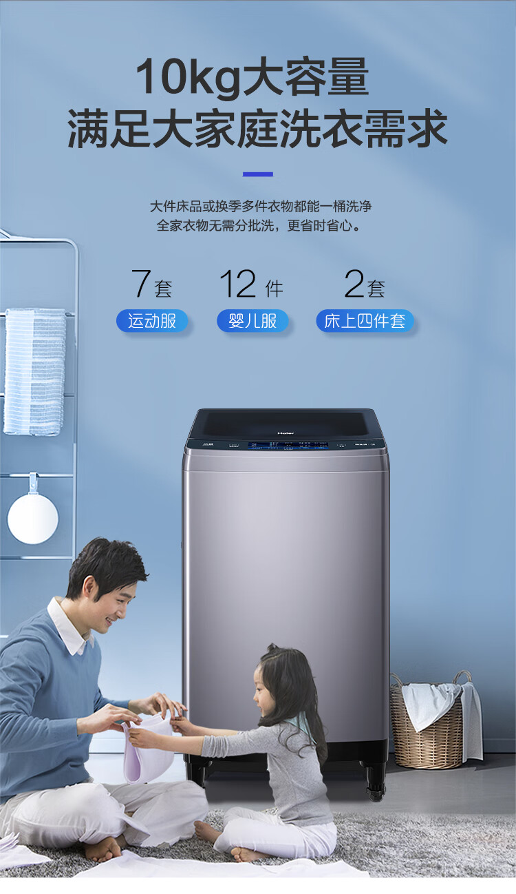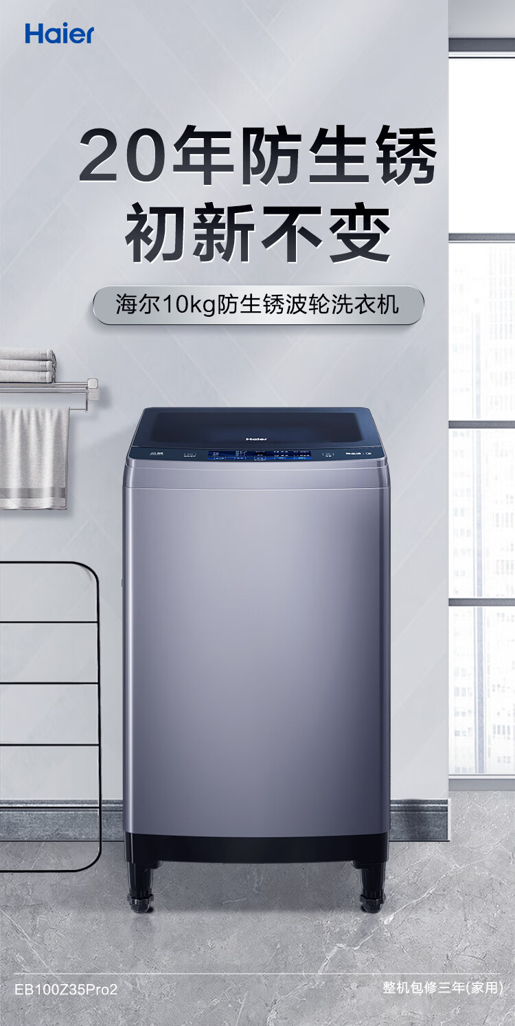 海尔(Haier)防生锈系列10KG波轮洗衣机全自动 玻璃上盖 V-钢机身85mm底脚除螨洗EB100Z35Pro2
