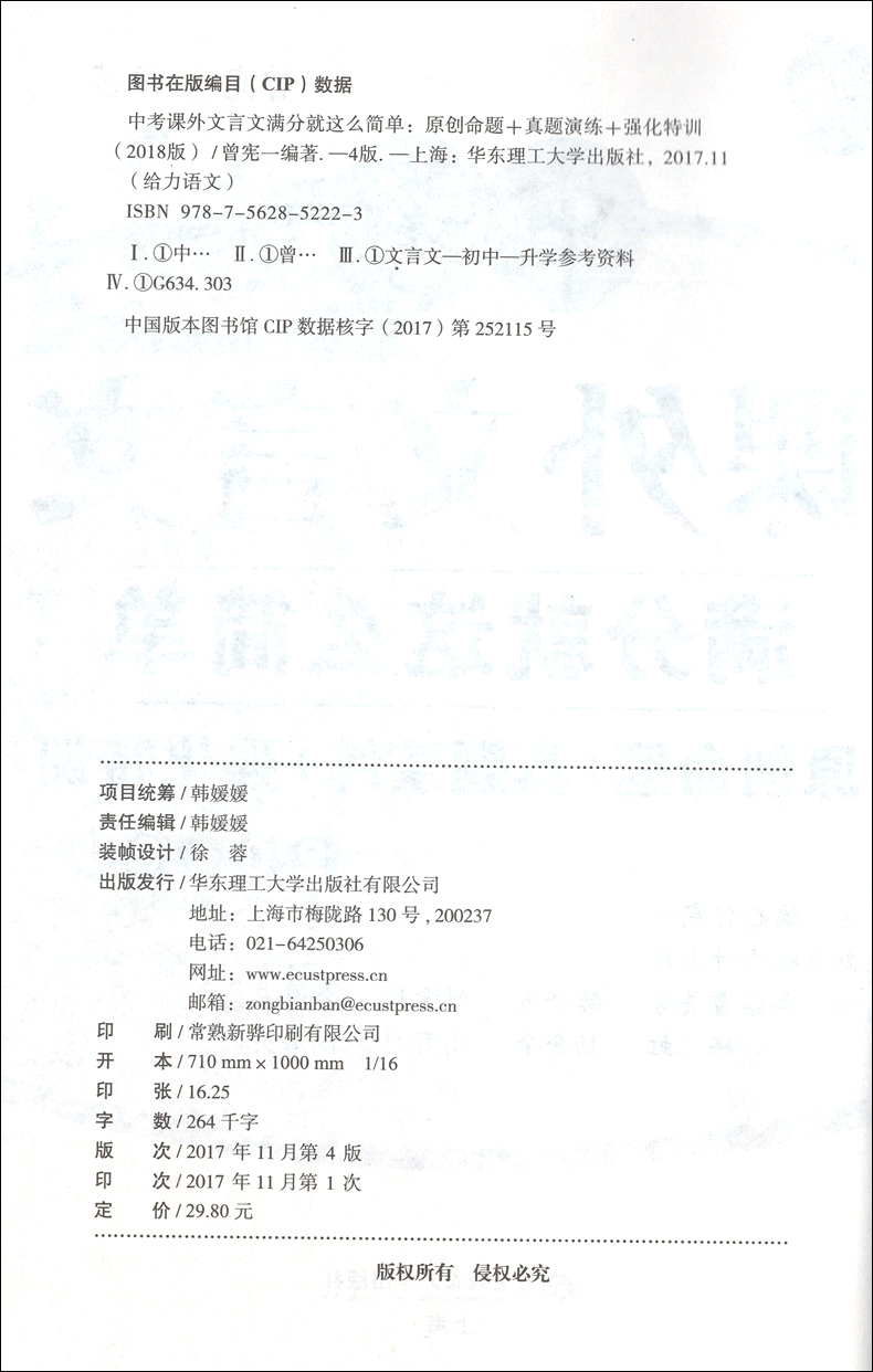 2018版 给力语文 中考课外文言文满分就这么简单 原创命题+真题演练+强化特训 曾宪一/编著(华东理工大学出版社)