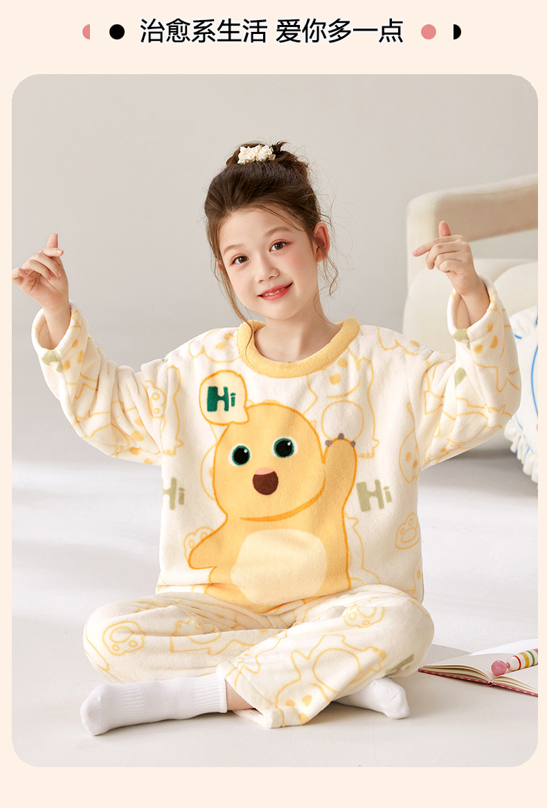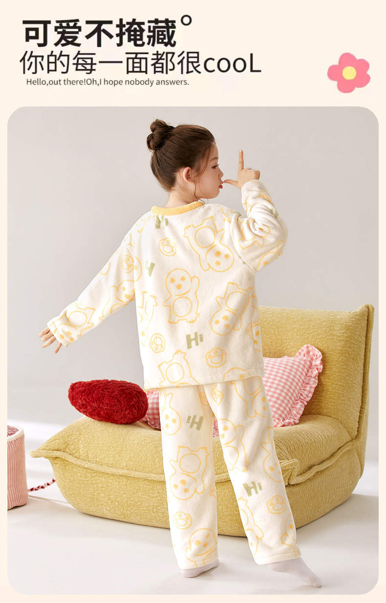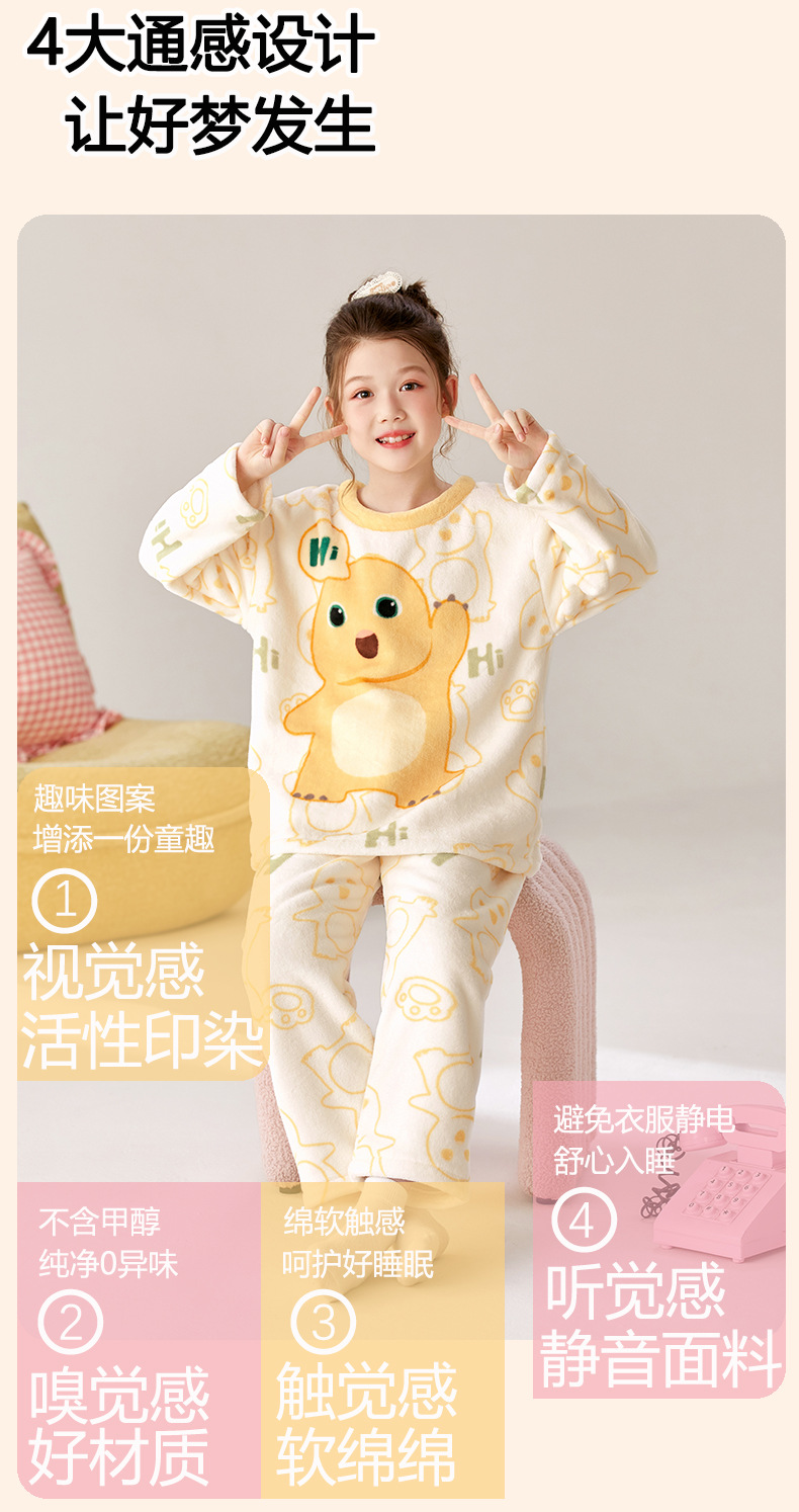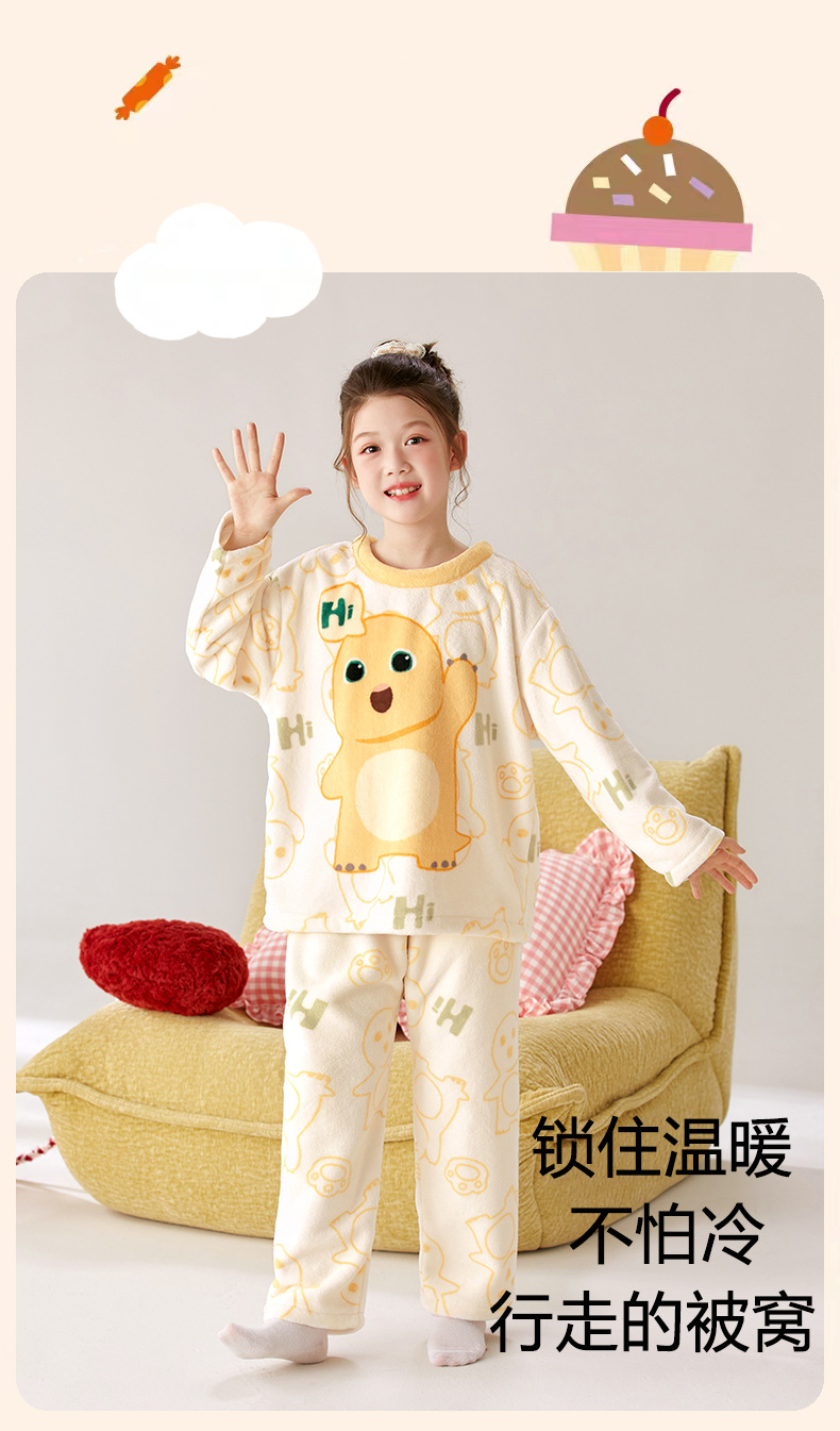 【甄选优质面料❗️绵绵软软敲舒适】儿童睡衣女孩2025新款秋冬珊瑚绒薄款大童法兰绒奶龙公主女童套装。ja