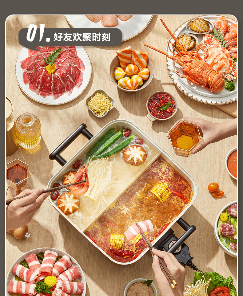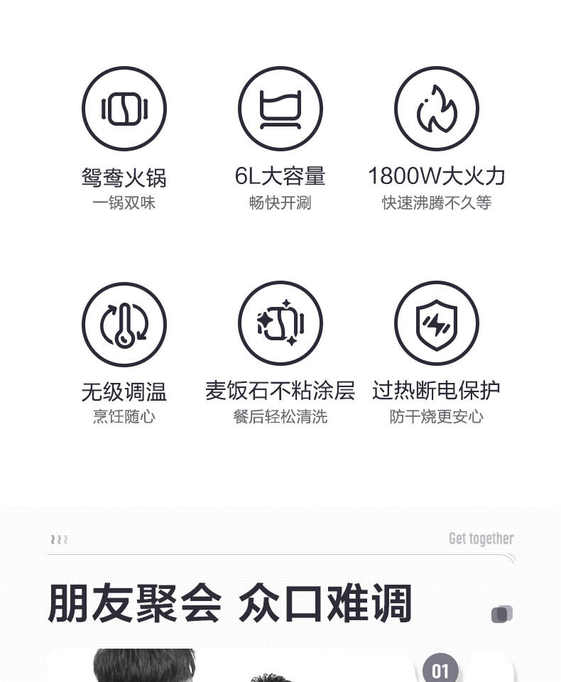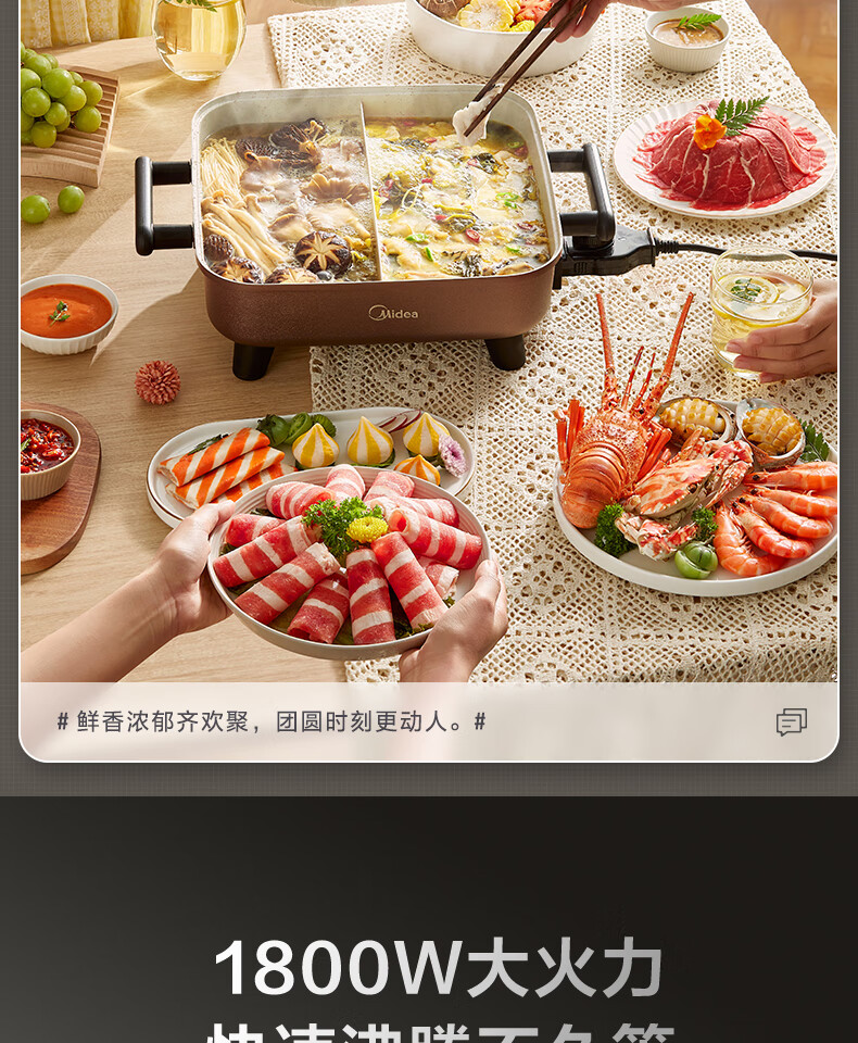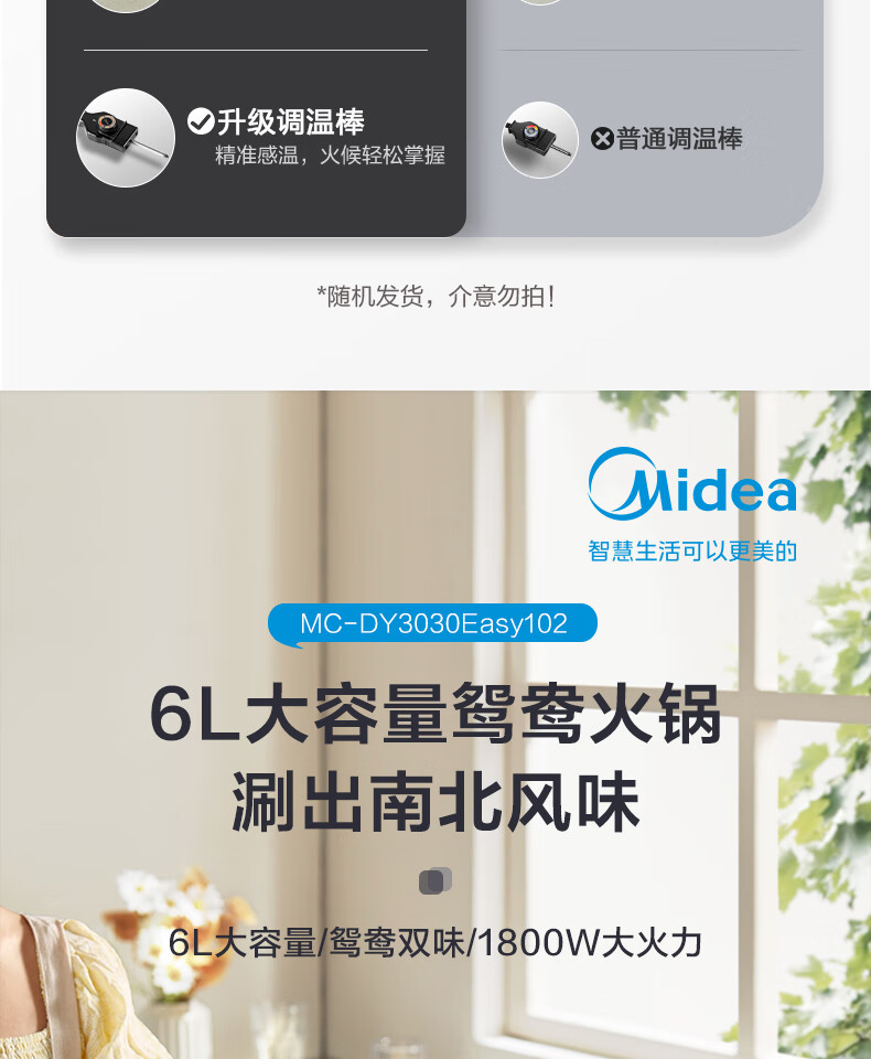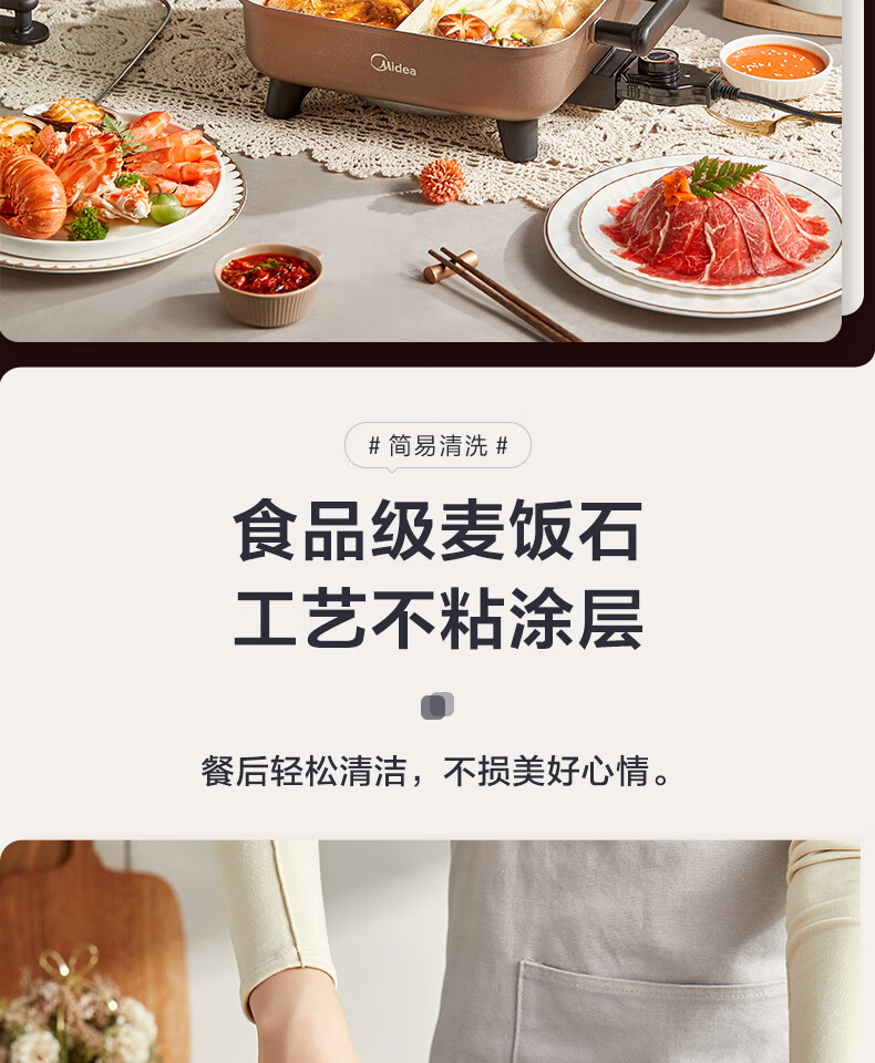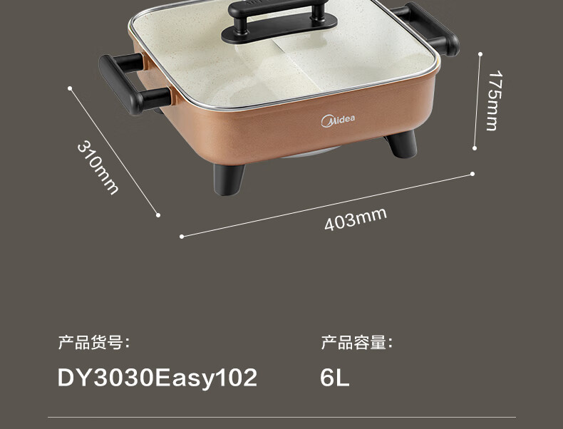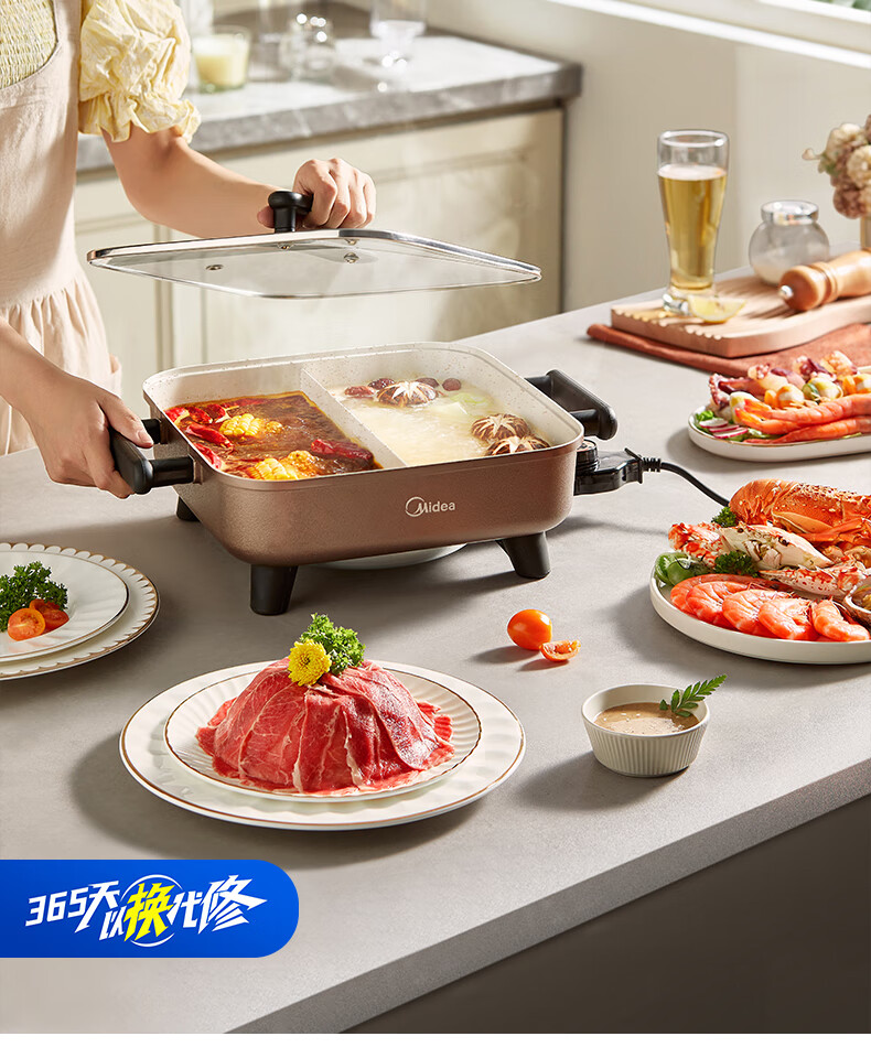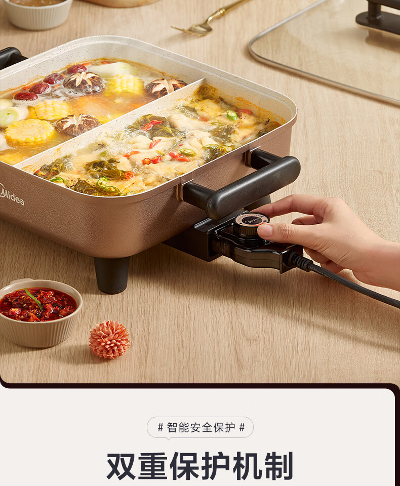 美的(Midea)电火锅6L 鸳鸯锅 1800W电煮锅 煎烤涮肉多功能锅一体锅 MC-DY3030Easy102【ZMD安心系列】