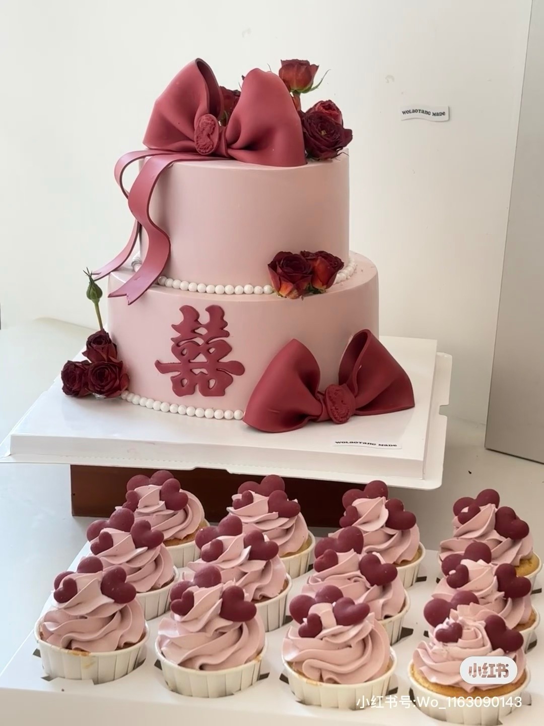 【臻品系列】--【玫紫色喜字鲜花】婚礼、订婚蛋糕