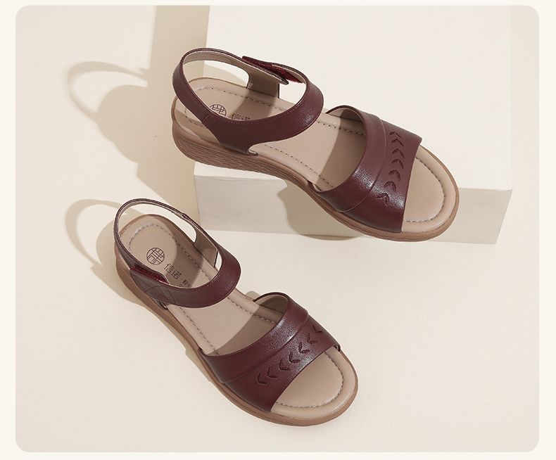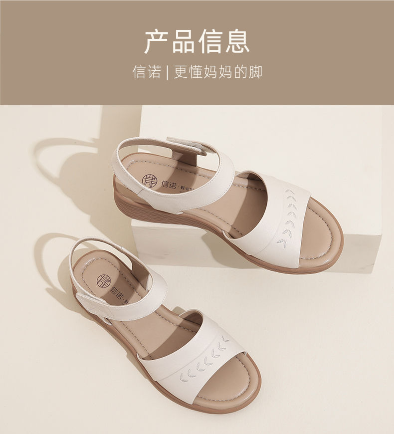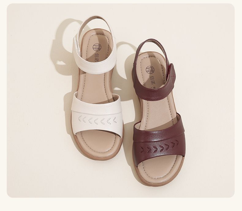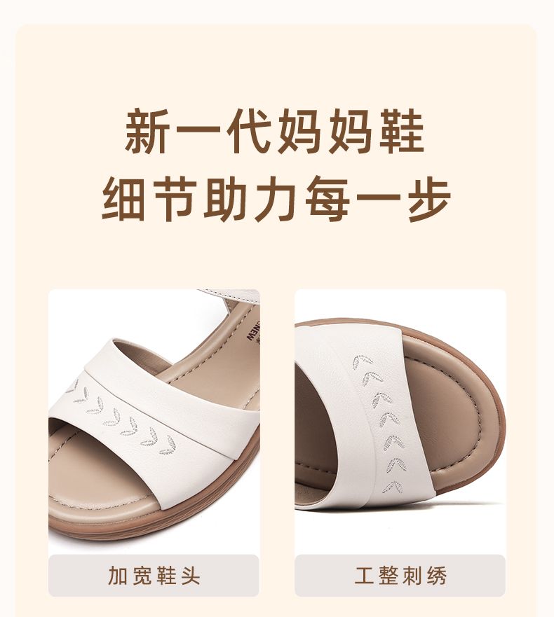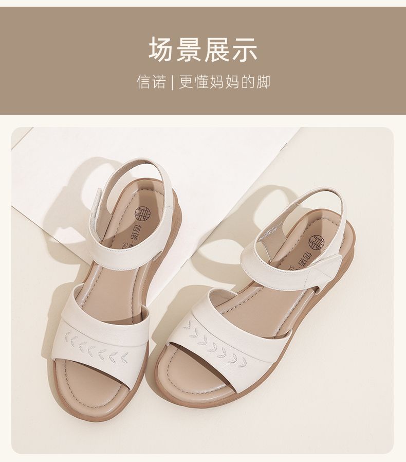 真皮舒适凉鞋妈妈鞋2024新款夏季软底中老年平底防滑中年女士皮鞋L368-13