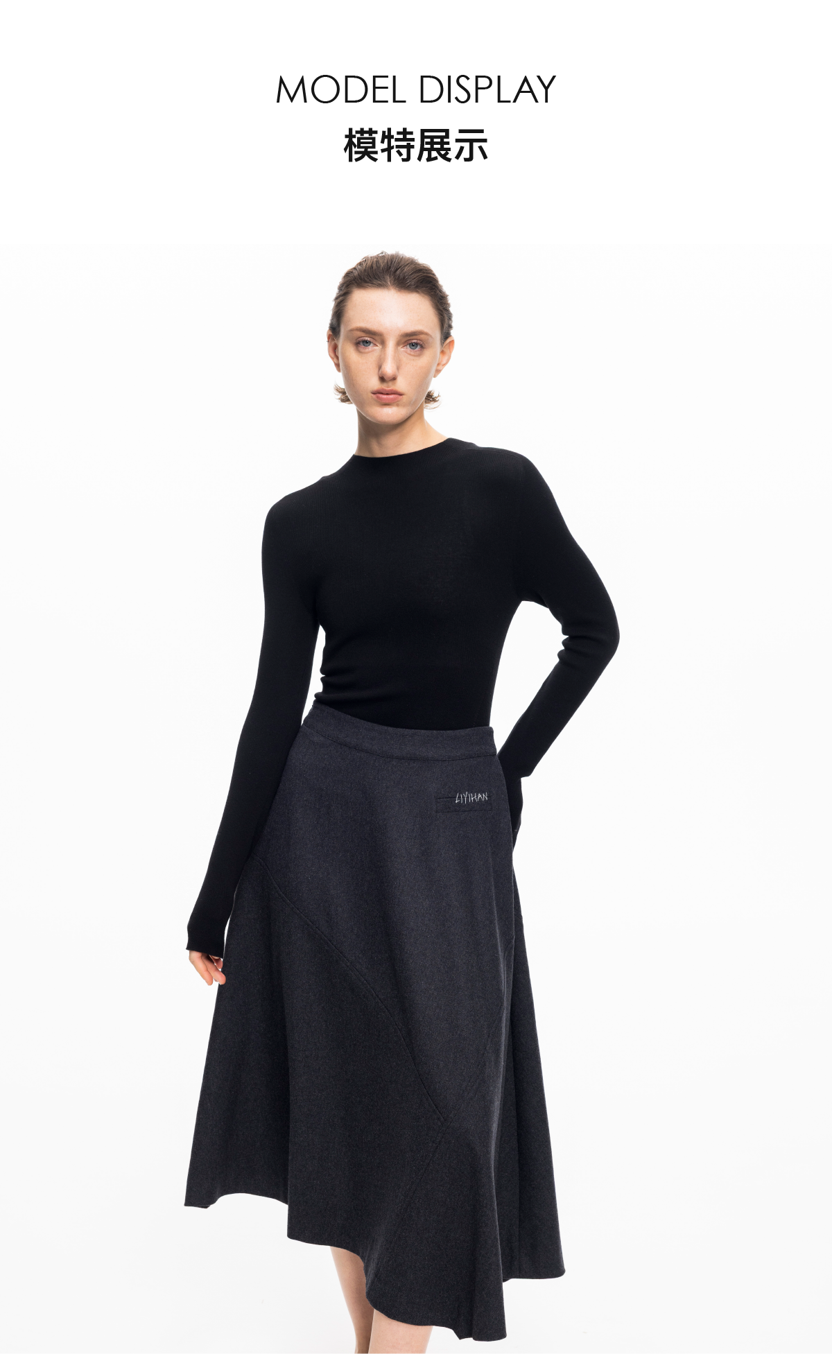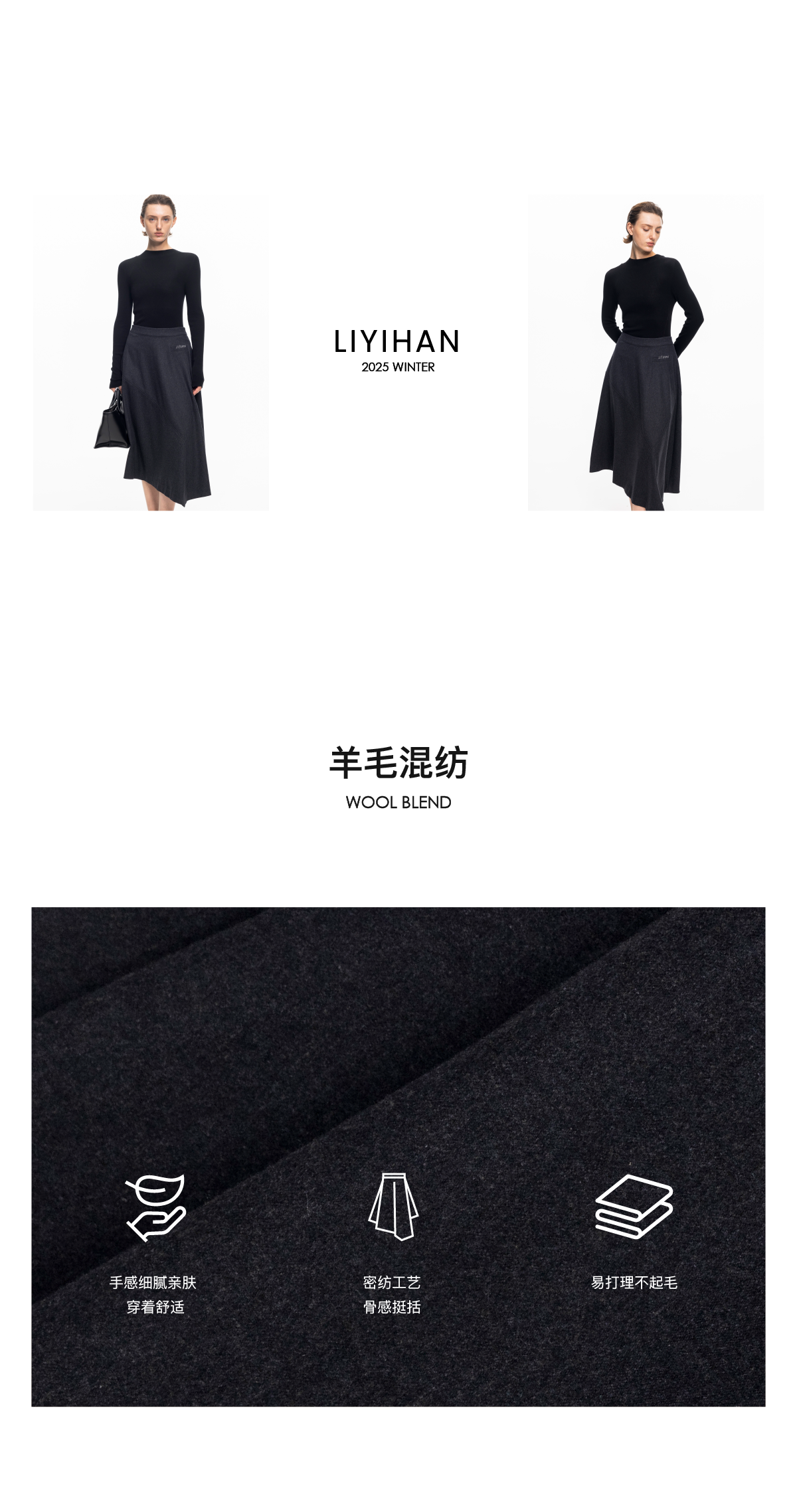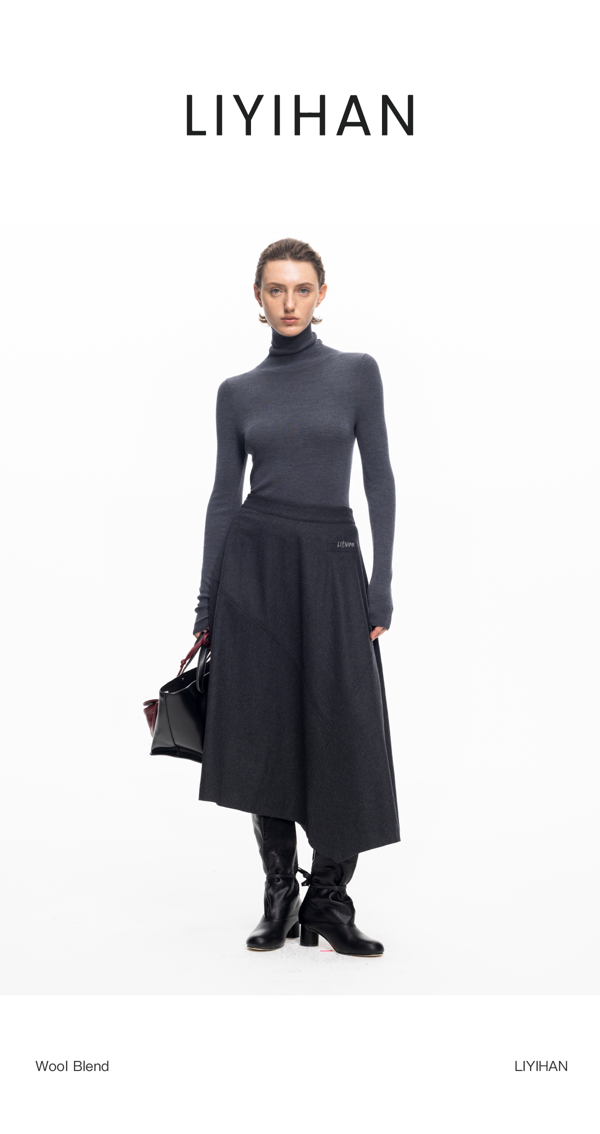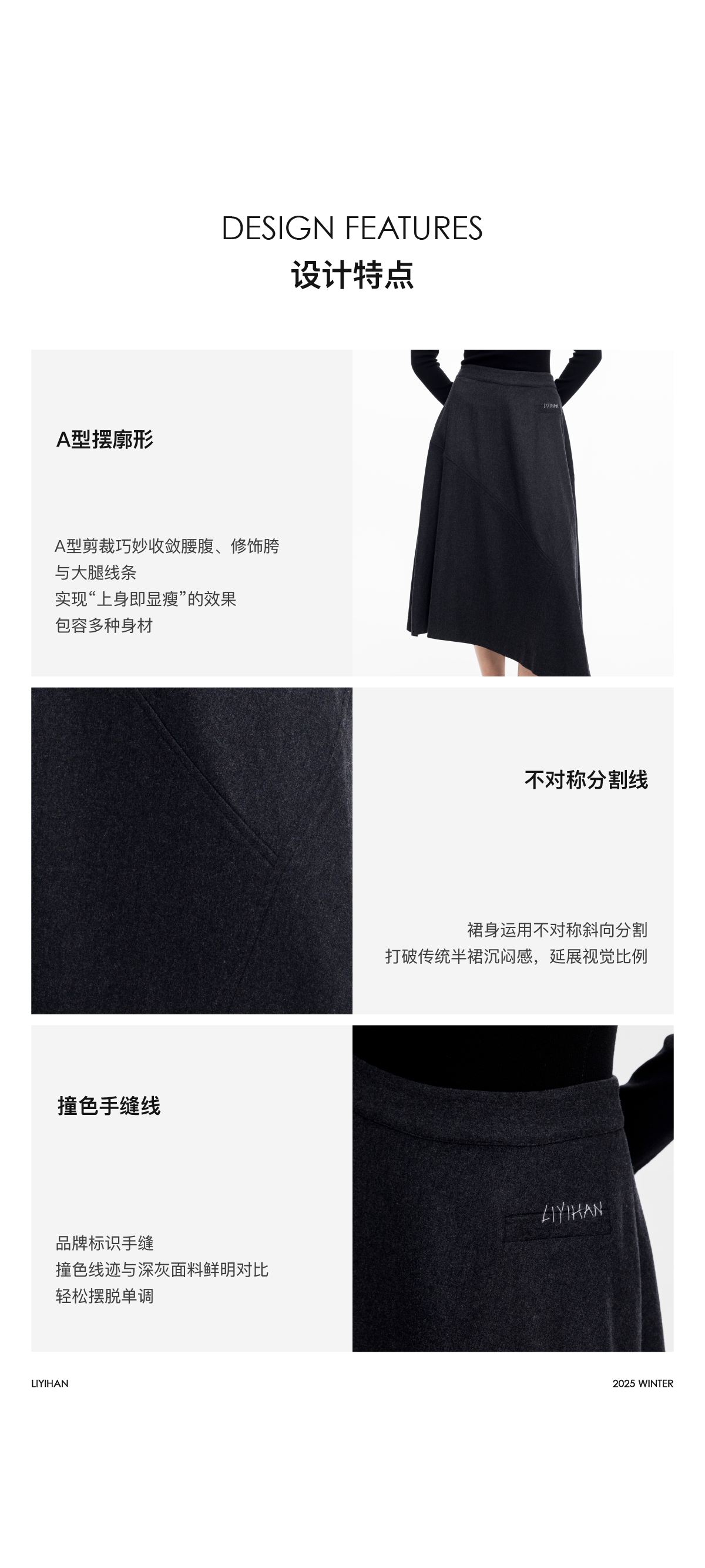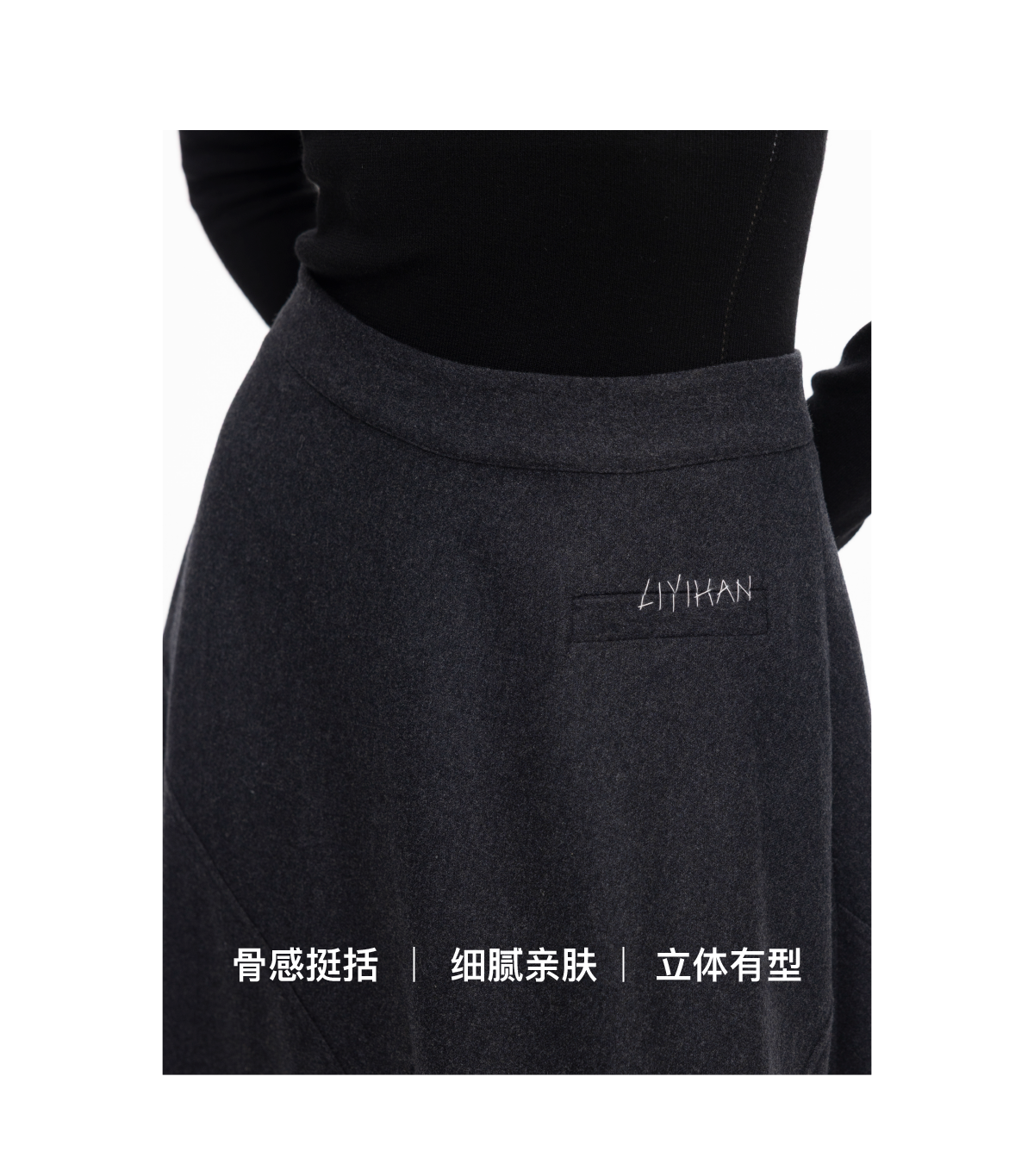LIYIHAN 2025秋冬新款职场羊毛半身裙灰色女小众设计感不规则裙子