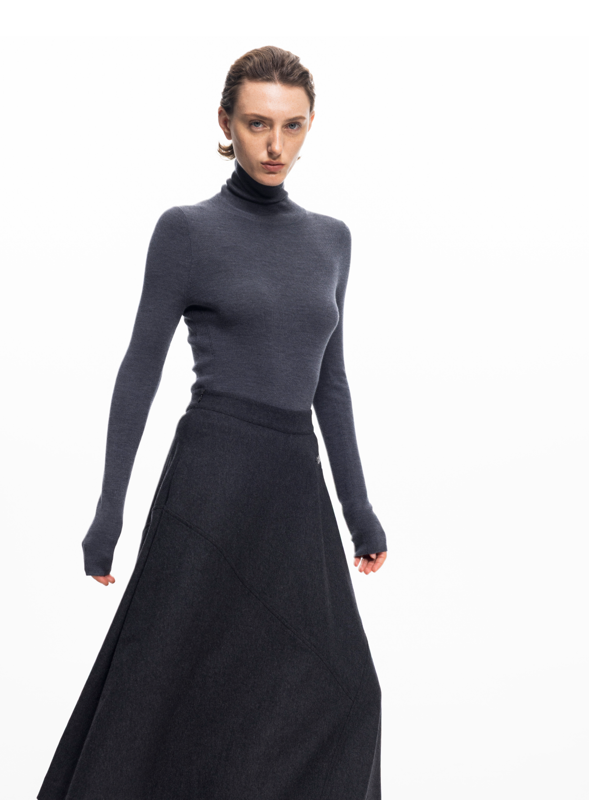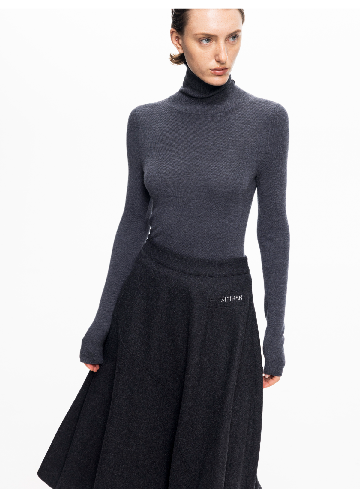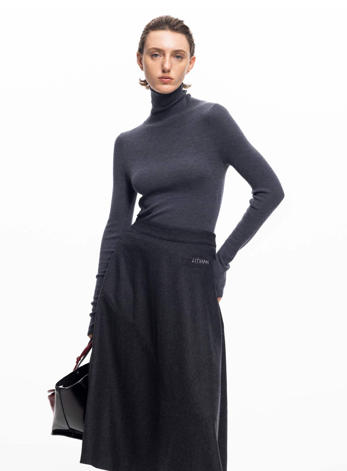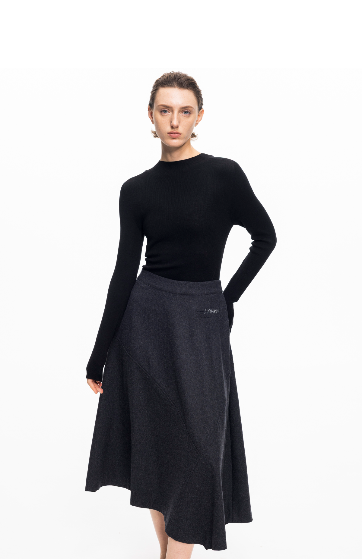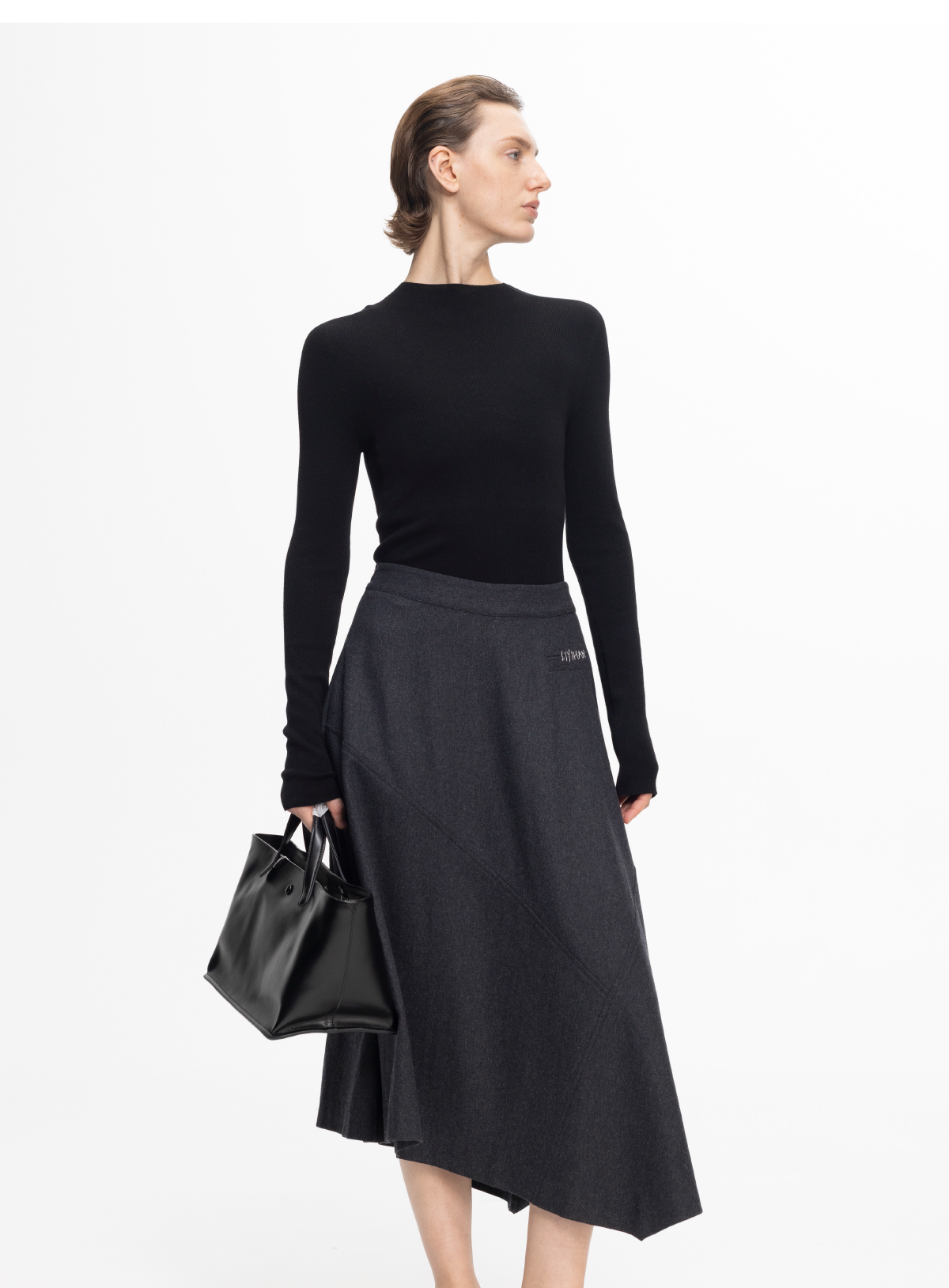 LIYIHAN 2025秋冬新款职场羊毛半身裙灰色女小众设计感不规则裙子