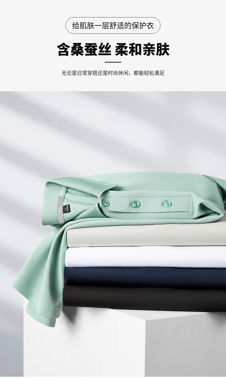 【含桑蚕丝】圣得西翻领POLO衫2025秋季新款商务风纯色长袖T恤男