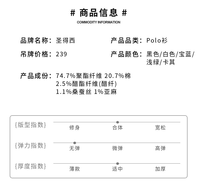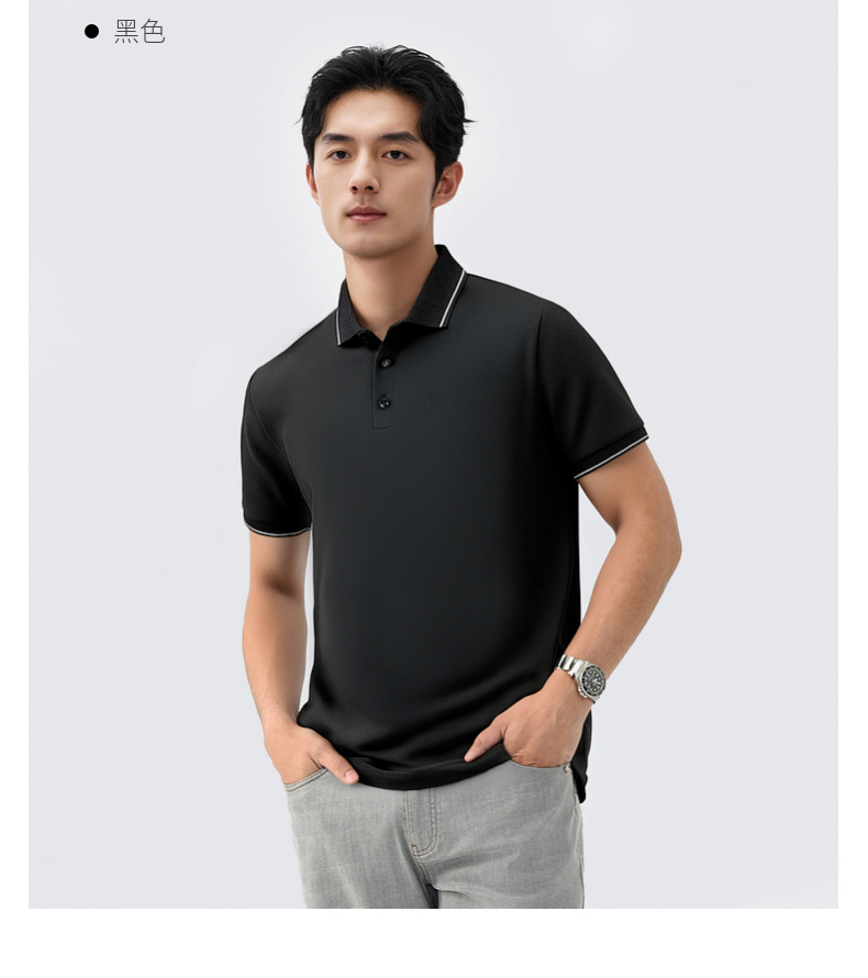 【含桑蚕丝】圣得西男50S纱线针织POLO衫2025秋季款经典翻领上衣
