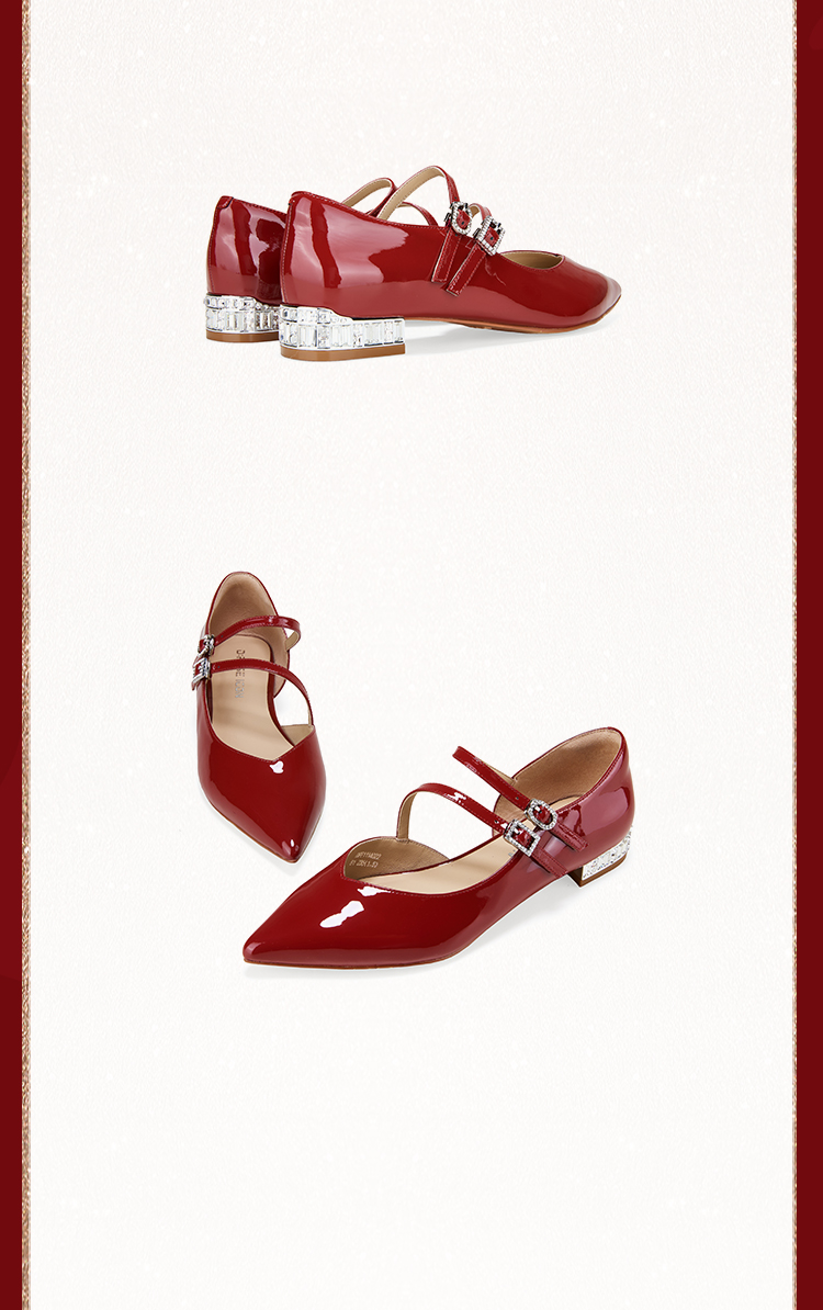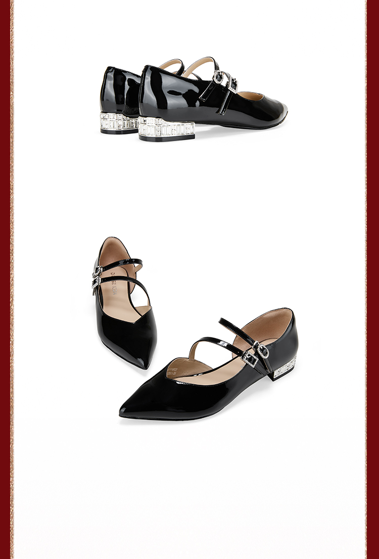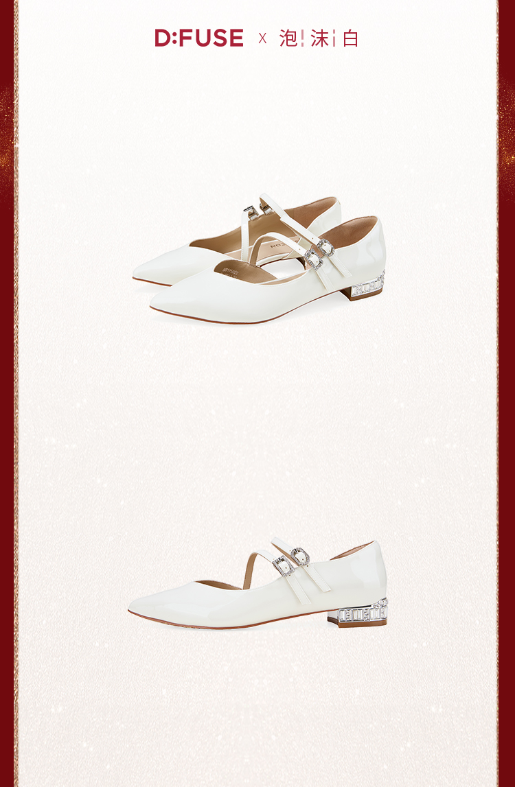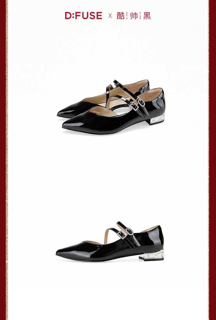 Dfuse迪芙斯2026春季新款尖头双条带钻口亮面漆皮单鞋平跟鞋DFE1114022