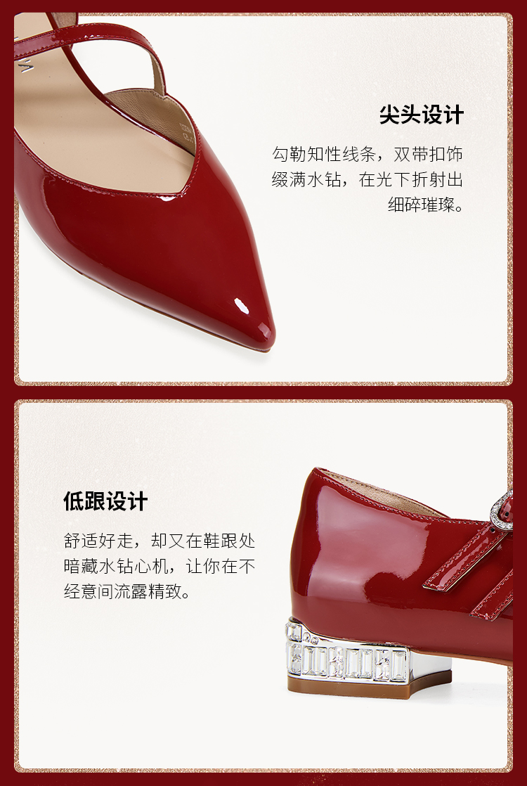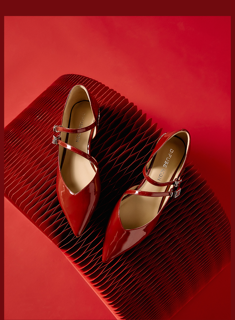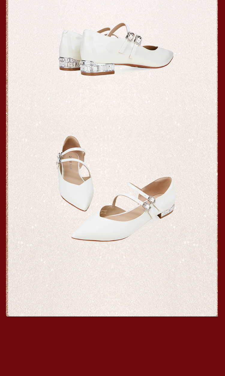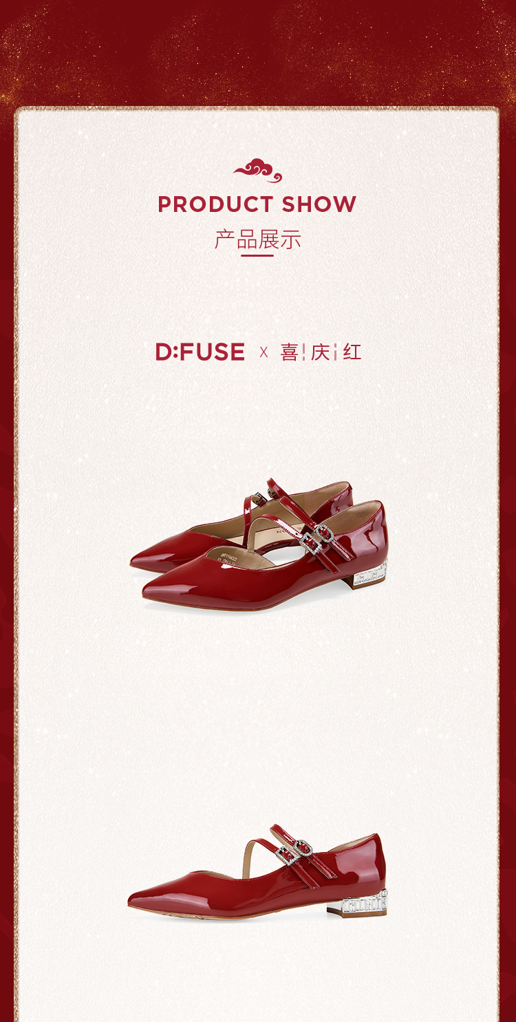 Dfuse迪芙斯2026春季新款尖头双条带钻口亮面漆皮单鞋平跟鞋DFE1114022