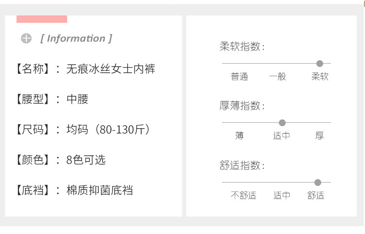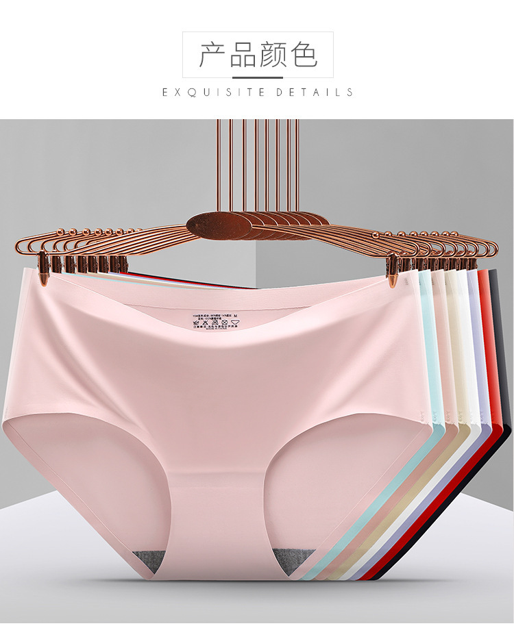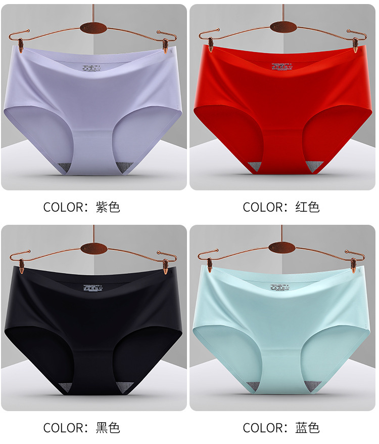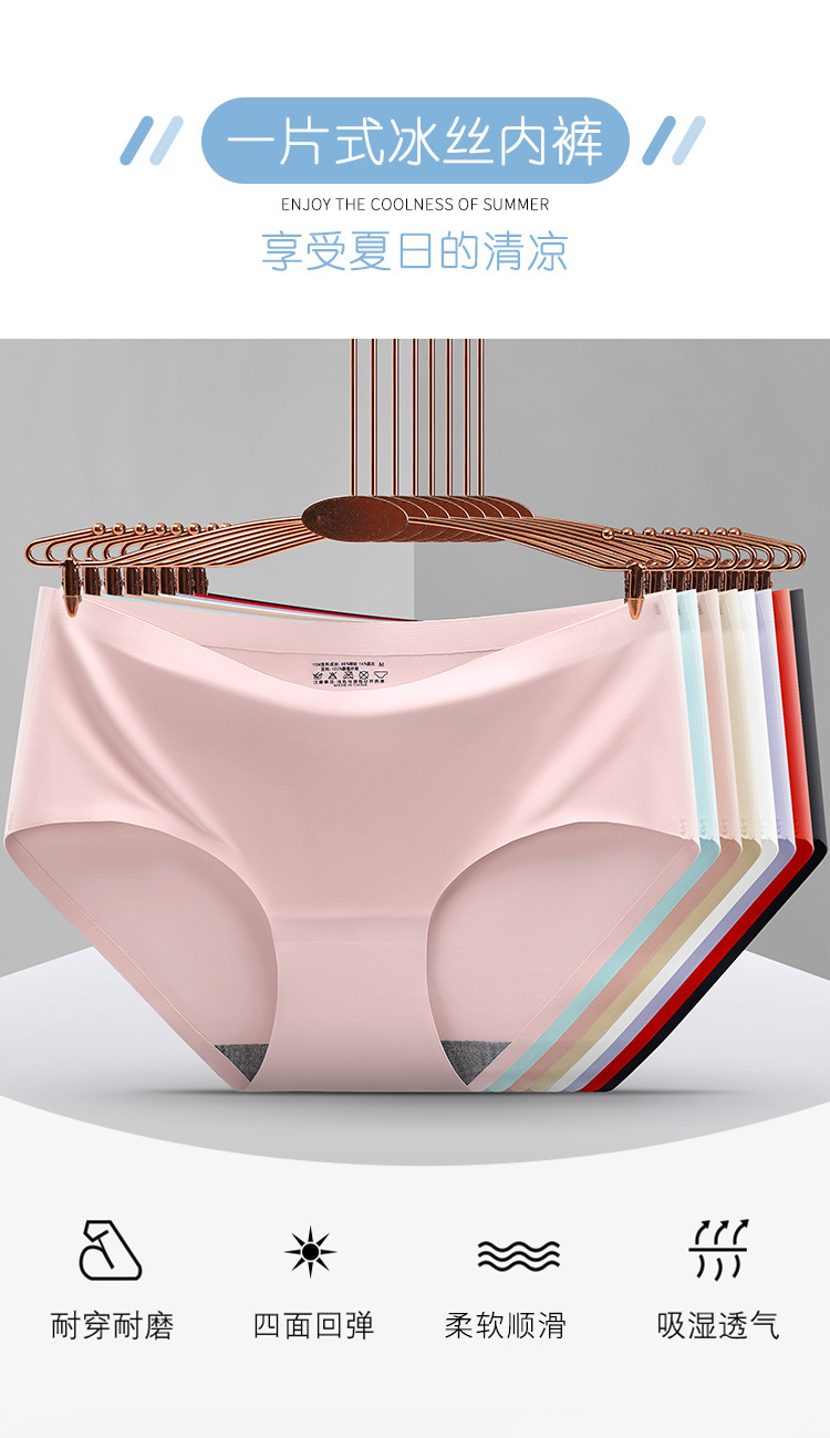 爆款无痕 冰丝内裤 一片式女士纯色中腰棉质底裆少女三角裤