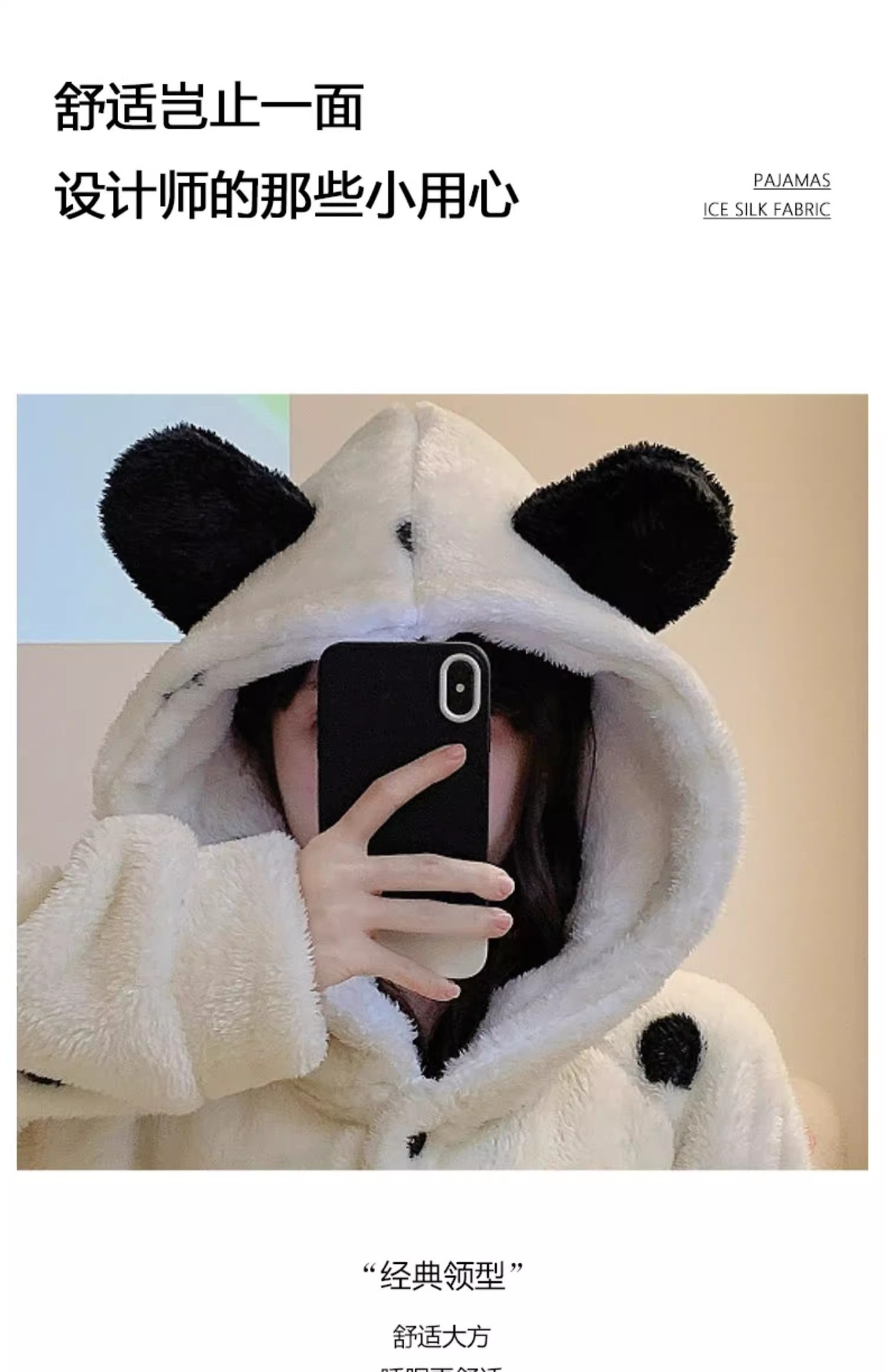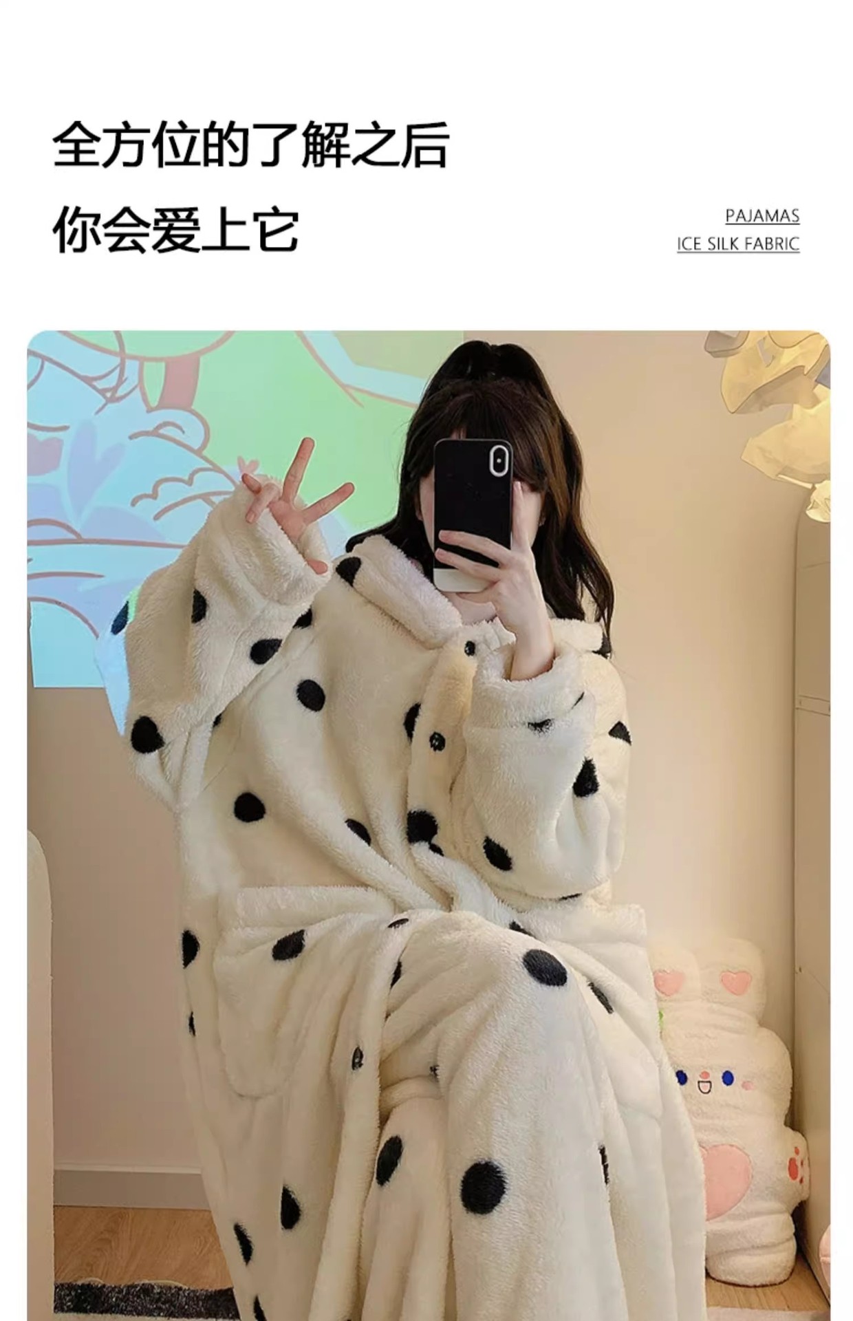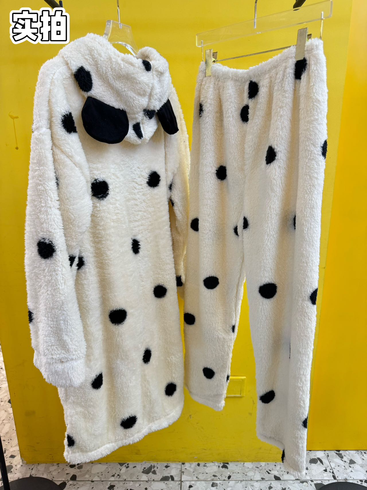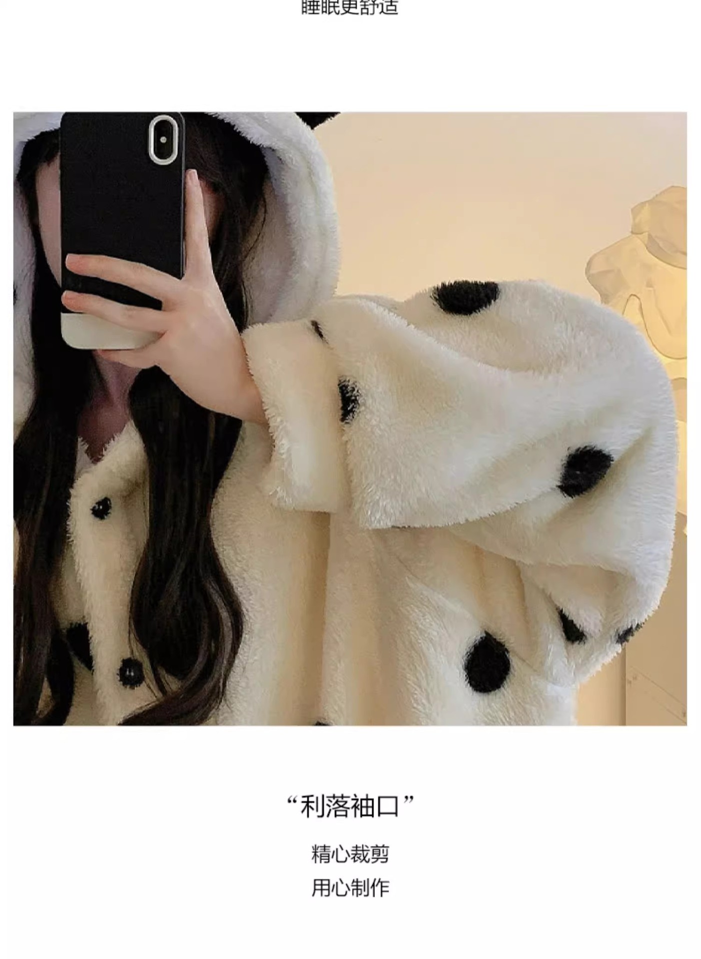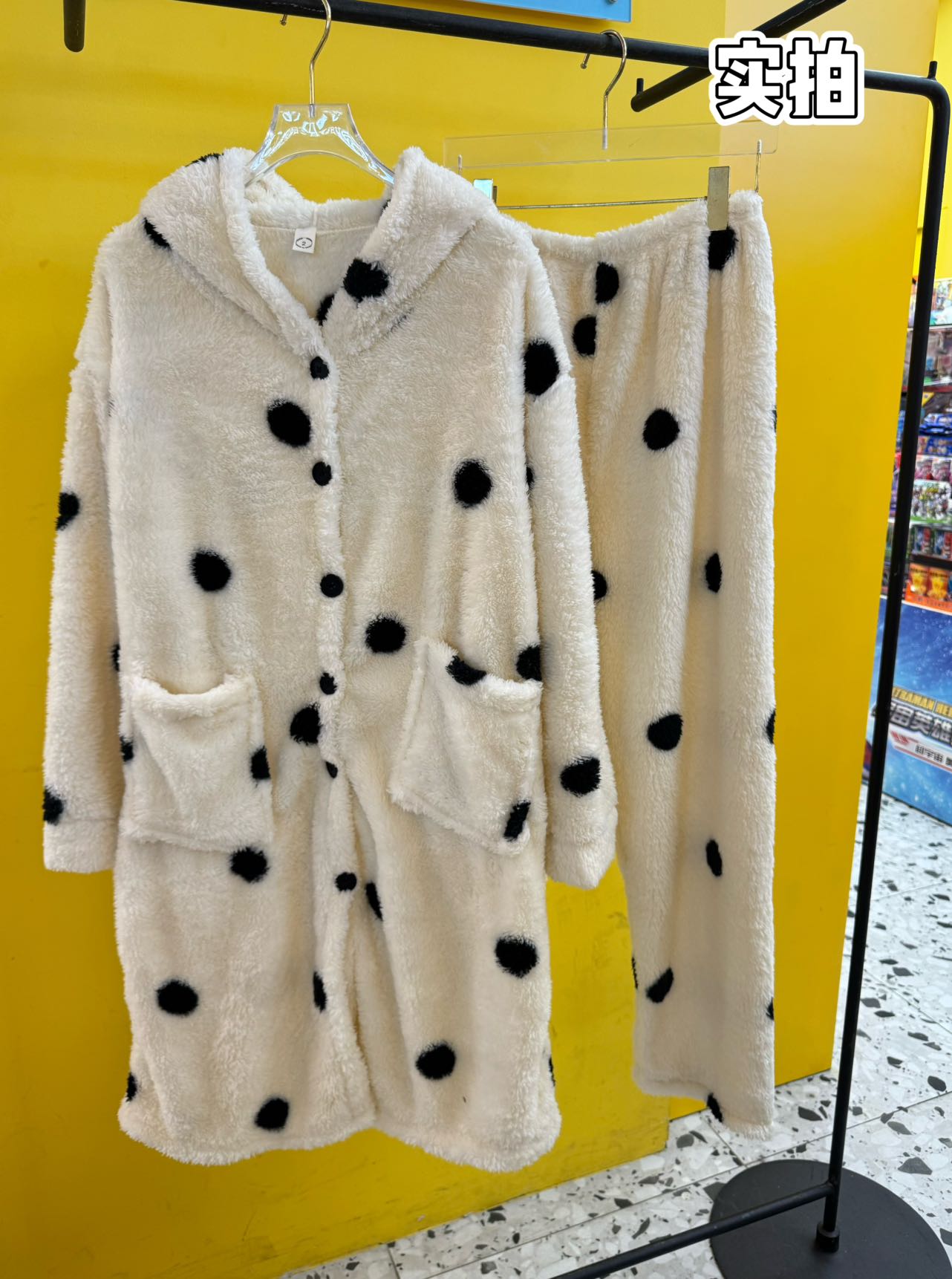 【GZ】无忧购圆点小耳朵珊瑚绒睡袍裤子套装家居服888(截单后3-5天发货)