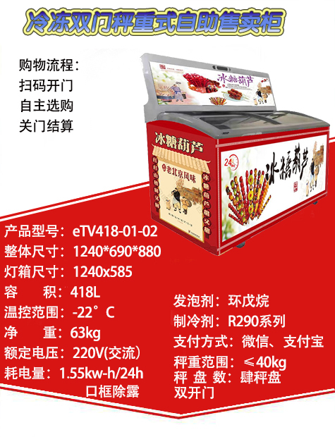 重力模式识别,手机扫码开门-自由挑选-关门结算,零下20度冷冻保鲜特别适合售卖雪糕、冰淇淋、预制菜、生鲜等,为店铺赋能,实现24小时自助售货,服务小区最后100米。
