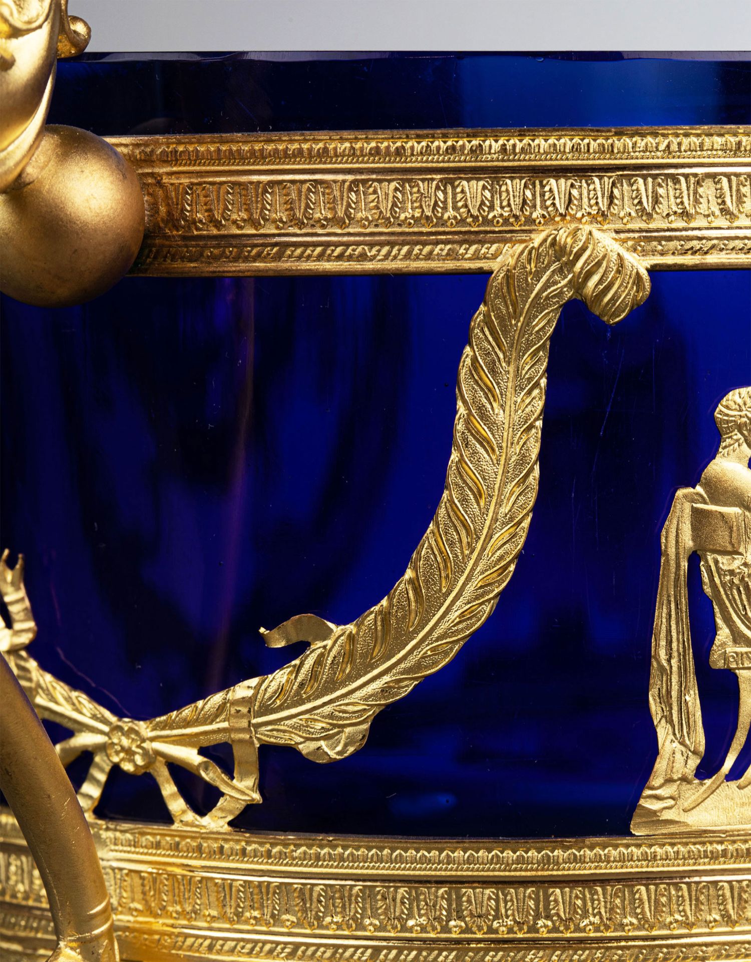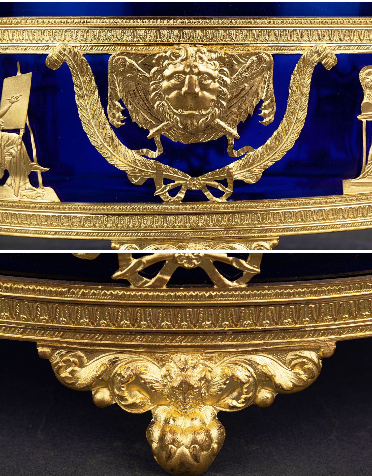 独角鹿西洋古董法国帝政风格铜鎏金缪斯女神帝王蓝水晶碗家居摆件