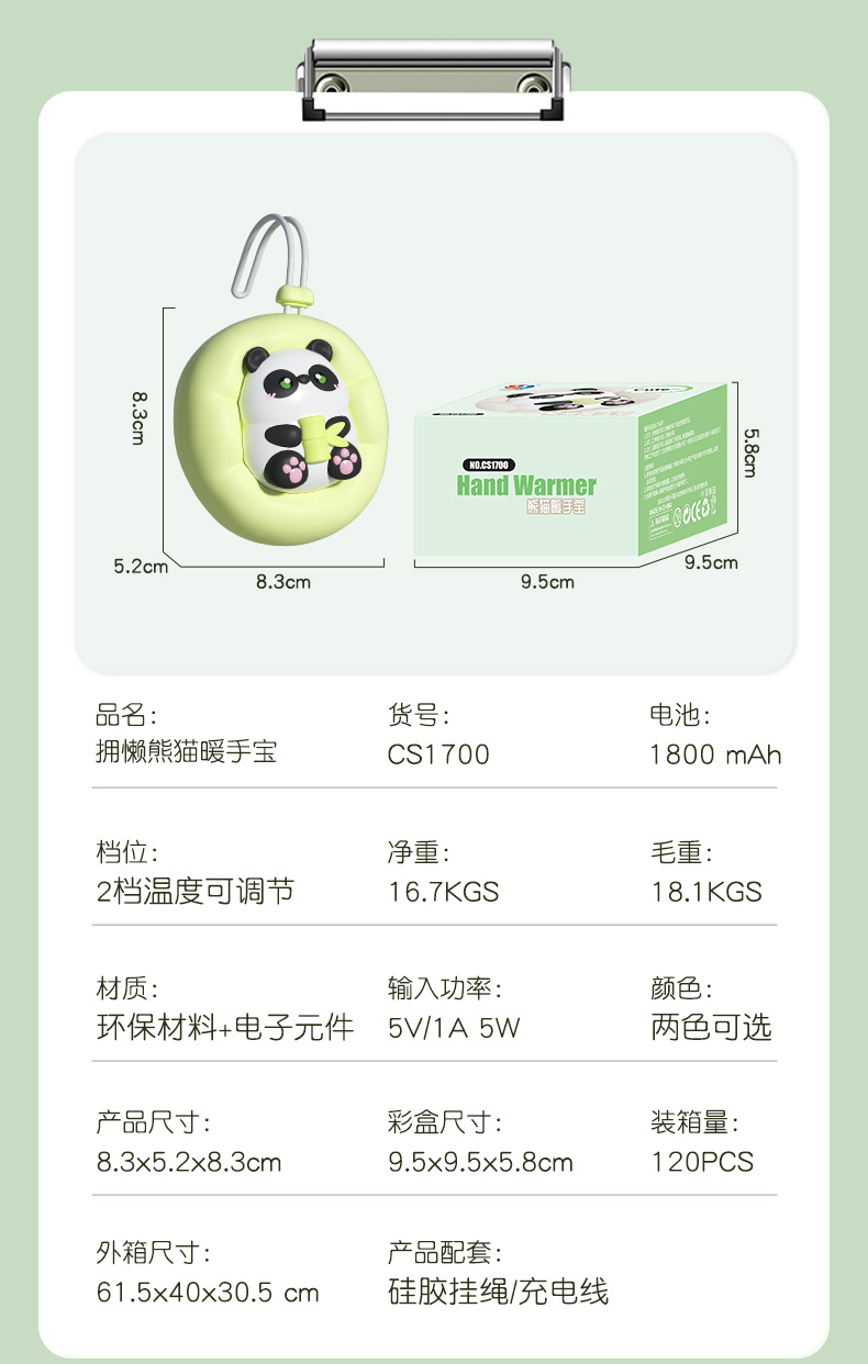 【新品熊猫潮玩暖手宝】USB可充电式迷你随身暖宝宝 学生取暖小巧不占空间 冬天礼品