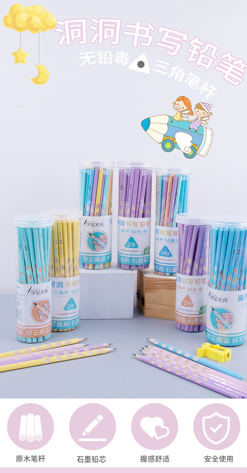 【矫正握姿洞洞铅笔 买一送一】洞洞笔铅笔削笔器小学生幼儿园加粗矫正握姿2BHB儿童初学者套装一年级练写字文具练字用品装组合