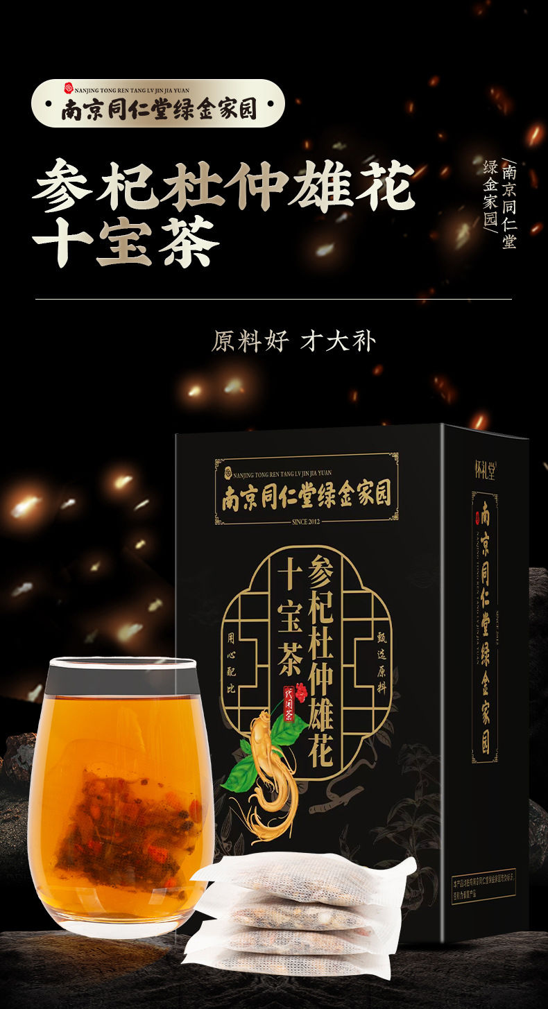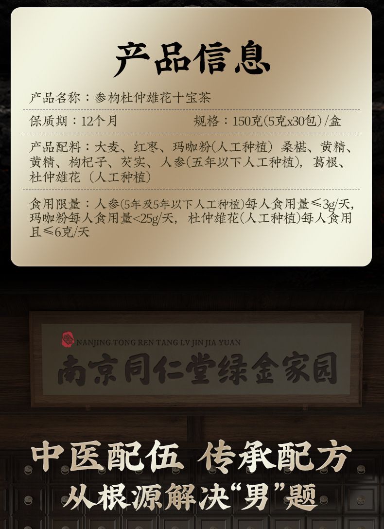 【买二送一!南京同仁堂人参十宝茶】每天一杯,能量满满!桑椹黄精枸杞子大麦红枣玛咖粉芡实葛根杜仲雄花茶叶茶,比五宝茶更好男人茶夏日中式好物健康