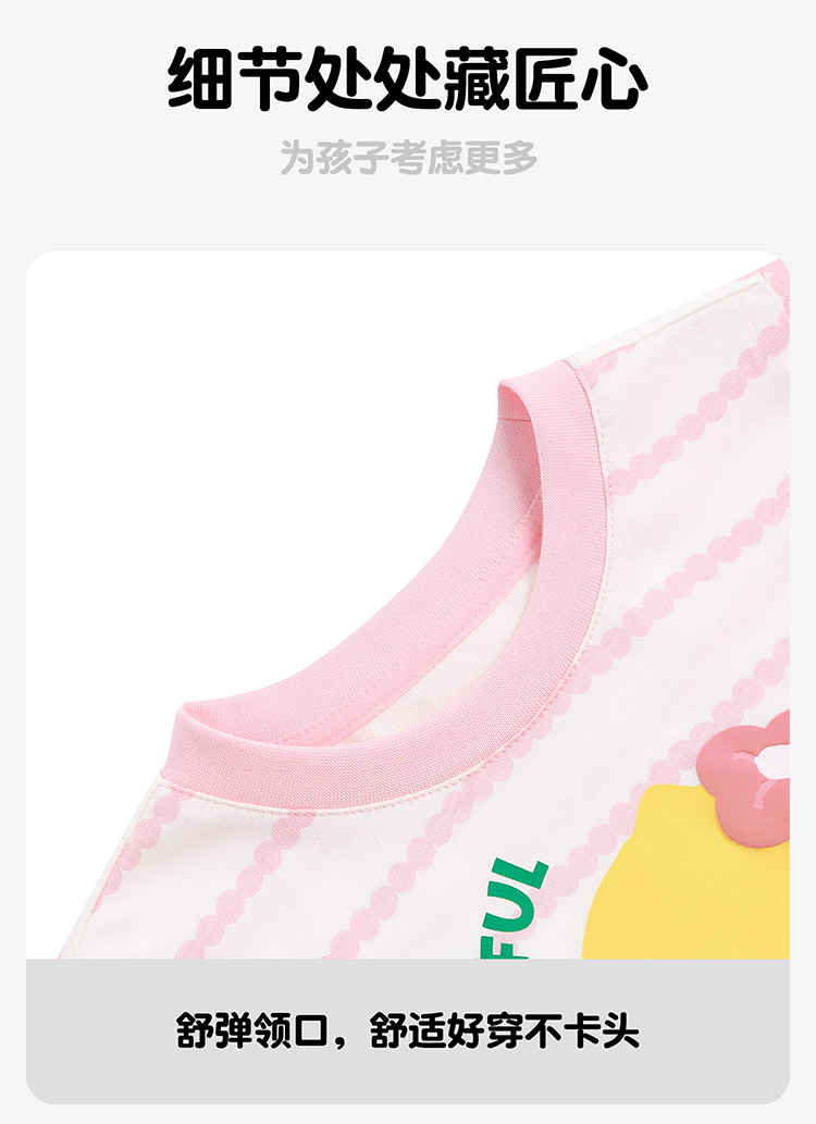 [驱蚊抗菌]bduck小黄鸭童装女童短袖t恤夏季儿童半袖中小童上衣薄105-150 FF2701066