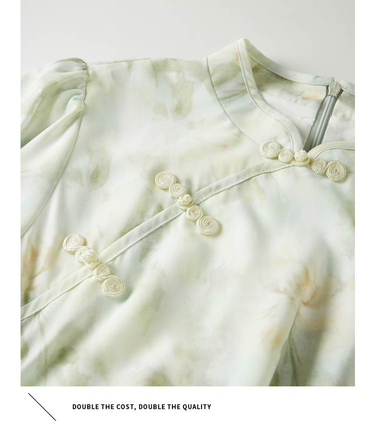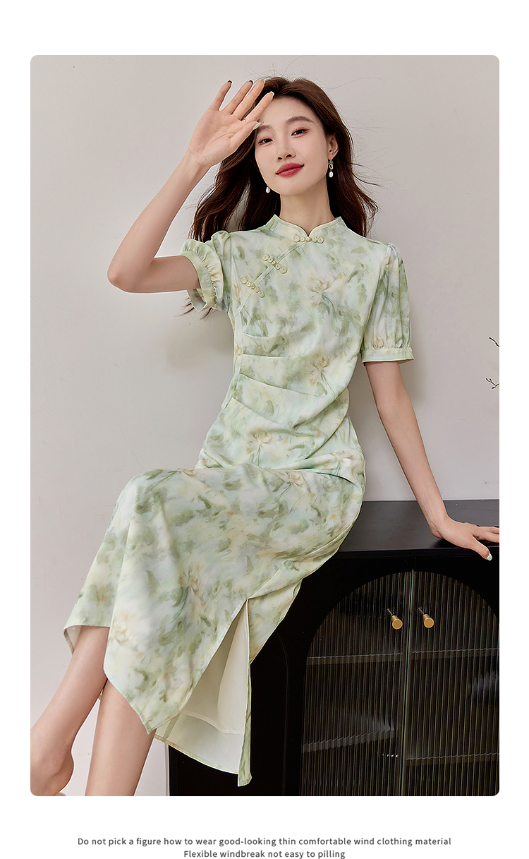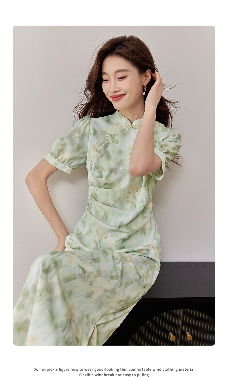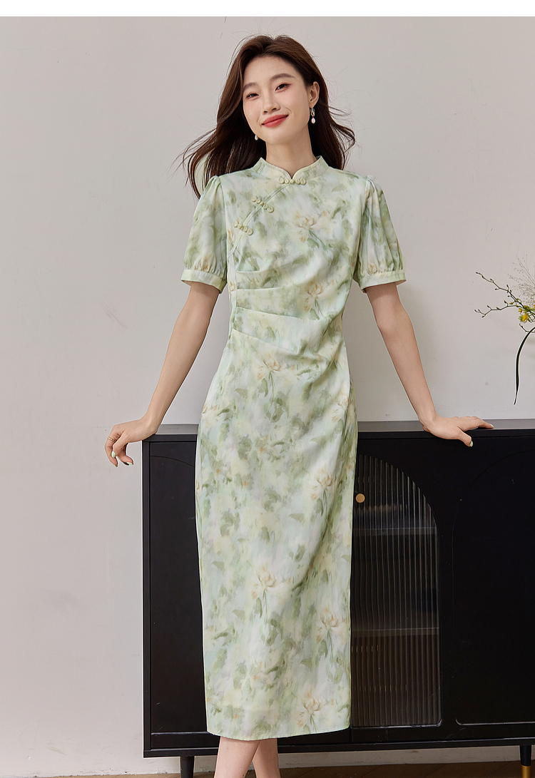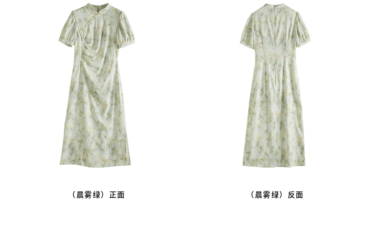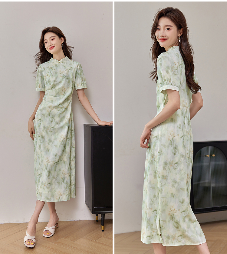 【专属特价】熙世界新中式改良旗袍裙夏季国风盘扣立领印花连衣裙开叉长裙子
